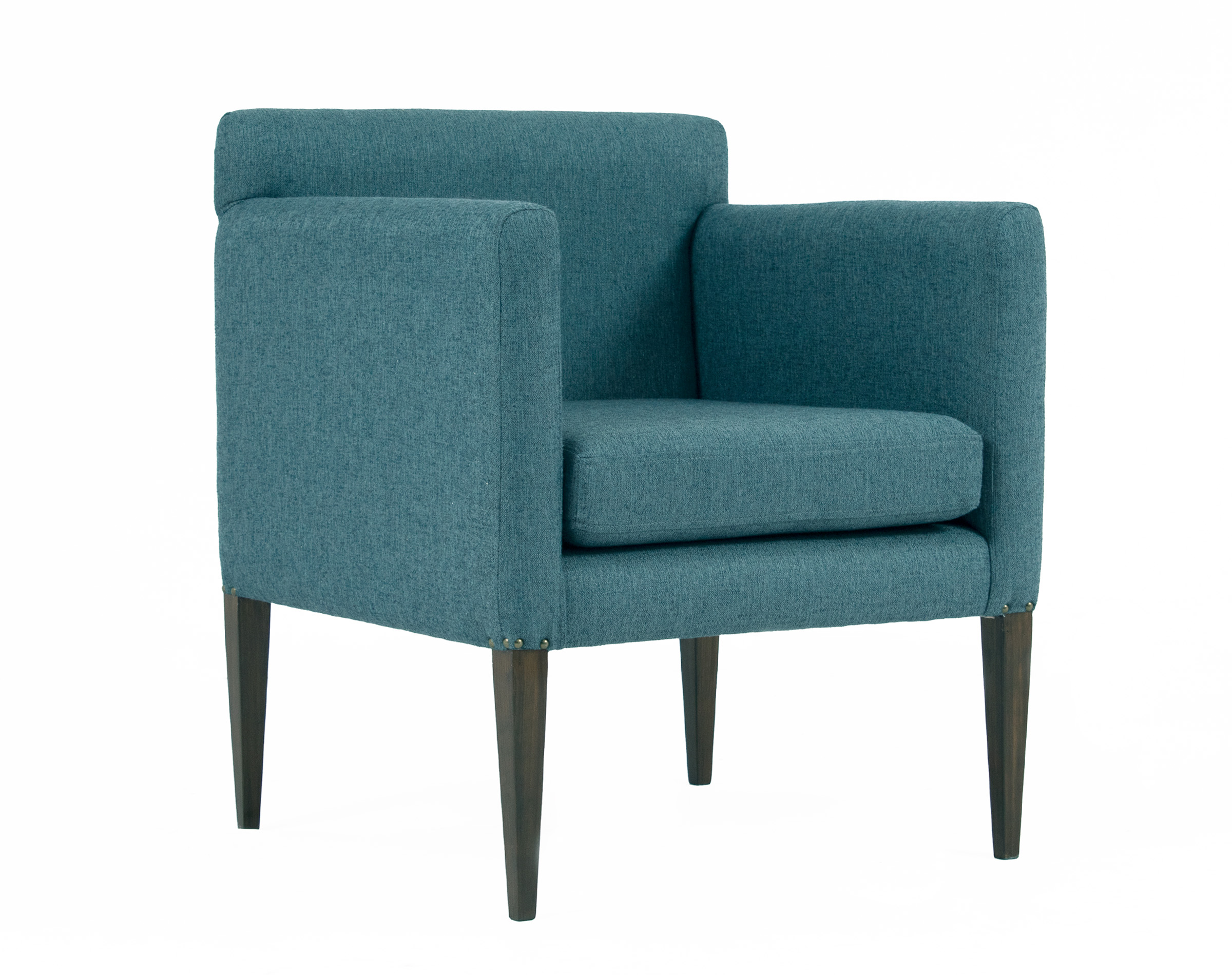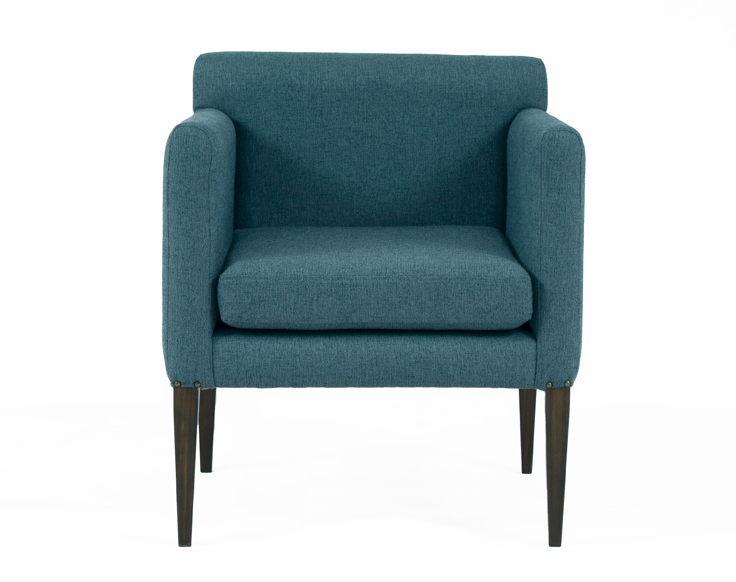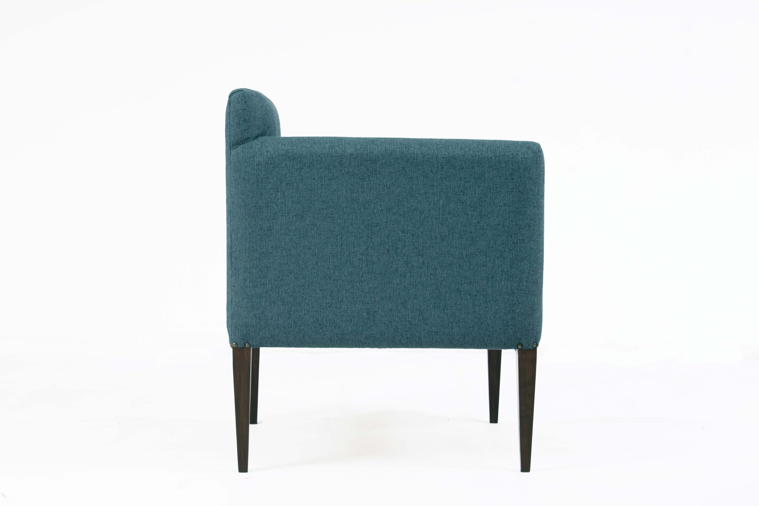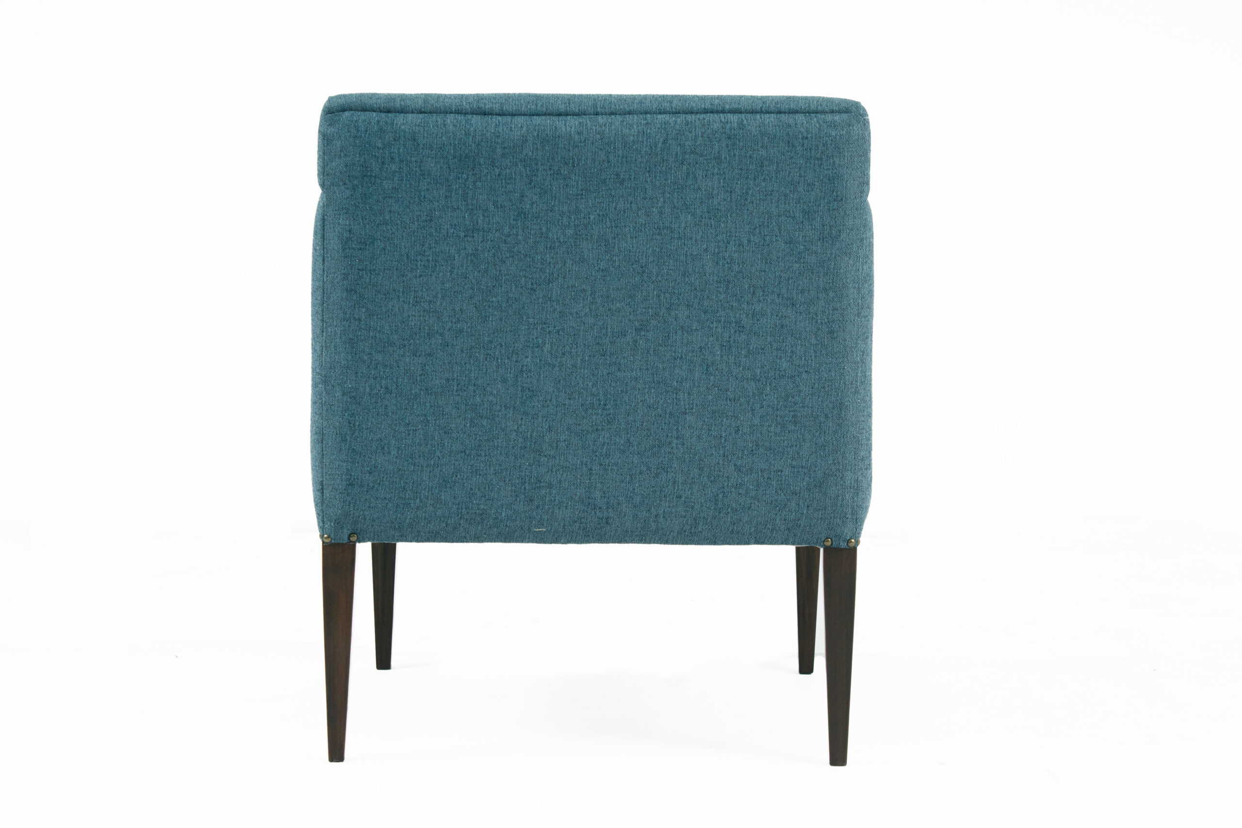 Imagen principal corresponde a poltrona Vita tapiz Sidelli color petróleo y patas de madera 27 cm color ciprés.