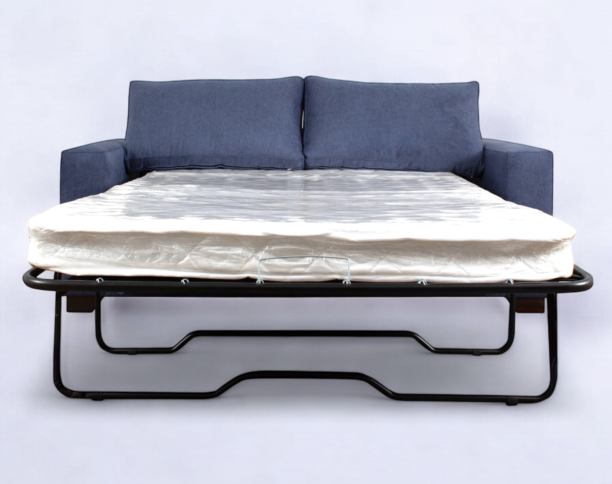 El sistema de suspensión del Sofá Cama Urban Full Size está compuesto por una estructura metálica plegable de dos posiciones que se encarga de sostener la cama y proporcionar soporte a los cojines del Sofá.