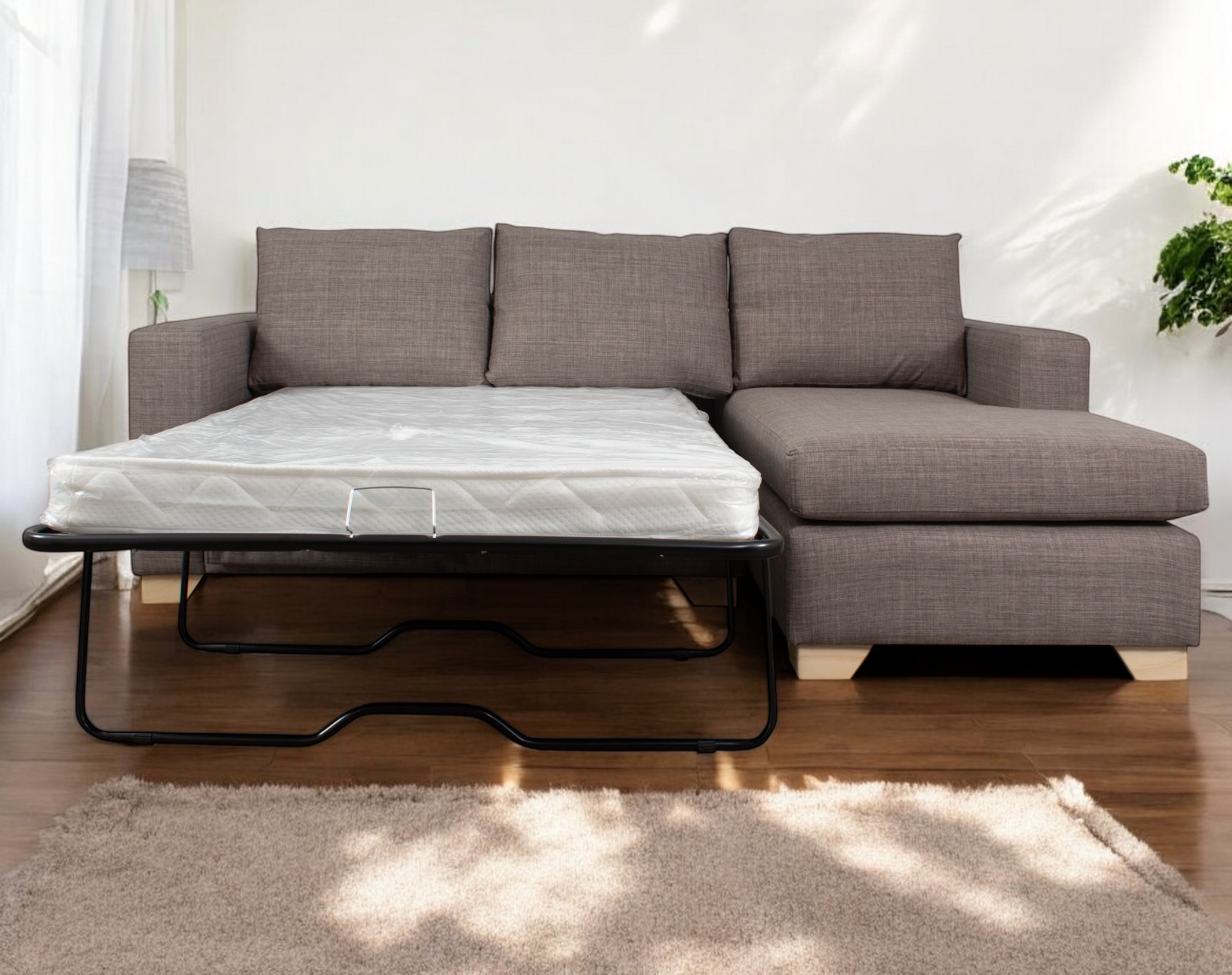 Con un tamaño de 231 cm, el sofá cama seccional Urban Full Size ofrece un espacio interior suficiente para relajarse o acoger a tus invitados. El chaise longue del lado izquierdo es perfecto para estirarse y relajarse, y la cama de 102 x 180 x 9 cm es ideal para invitados o para pasar la noche.
