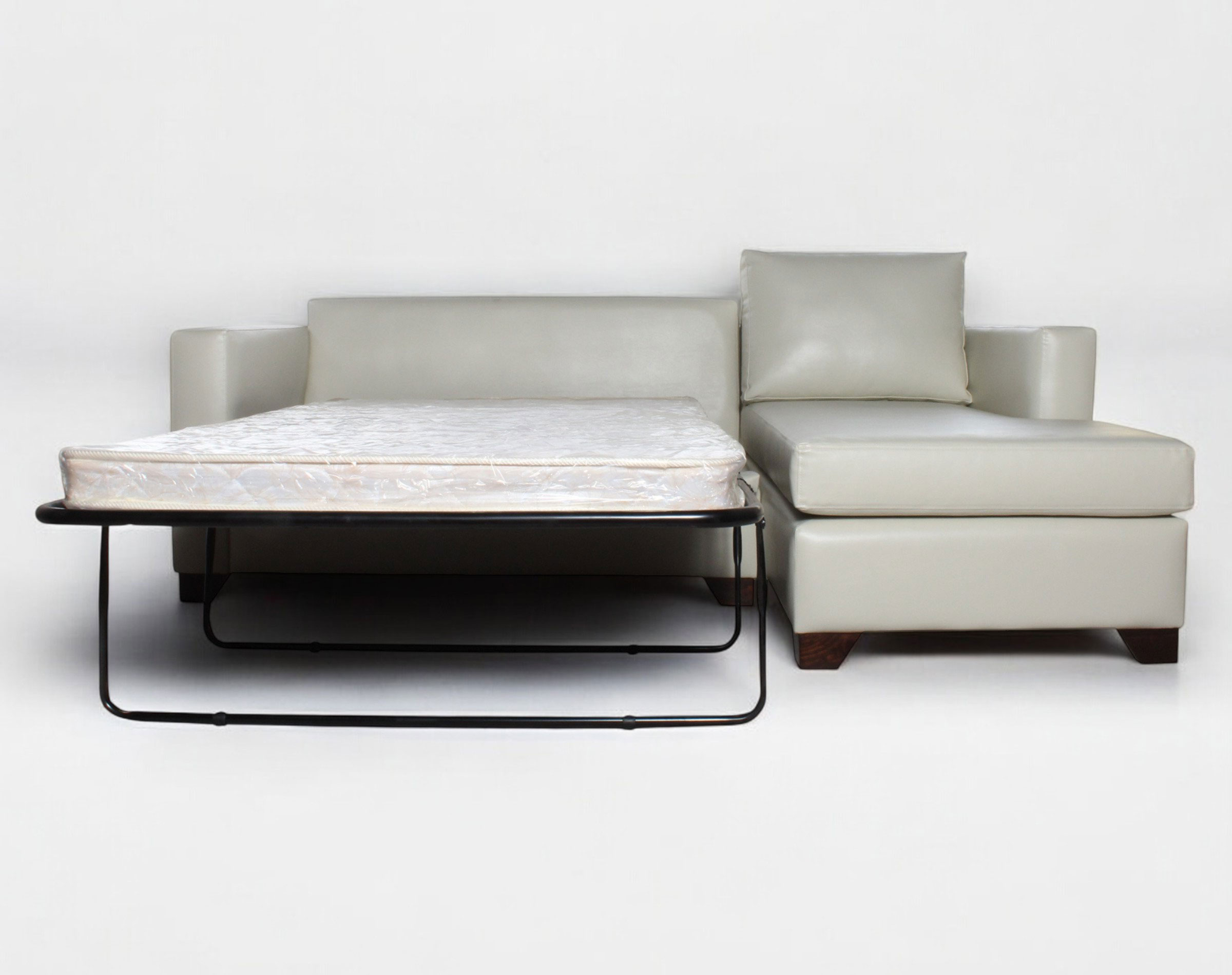 El Sofá Cama Seccional 1.5 Plazas Urban incluye 2 piezas: un chaise longue y un sofá, ambos unidos por un doble anclaje metálico que se maneja fácilmente entre dos personas.