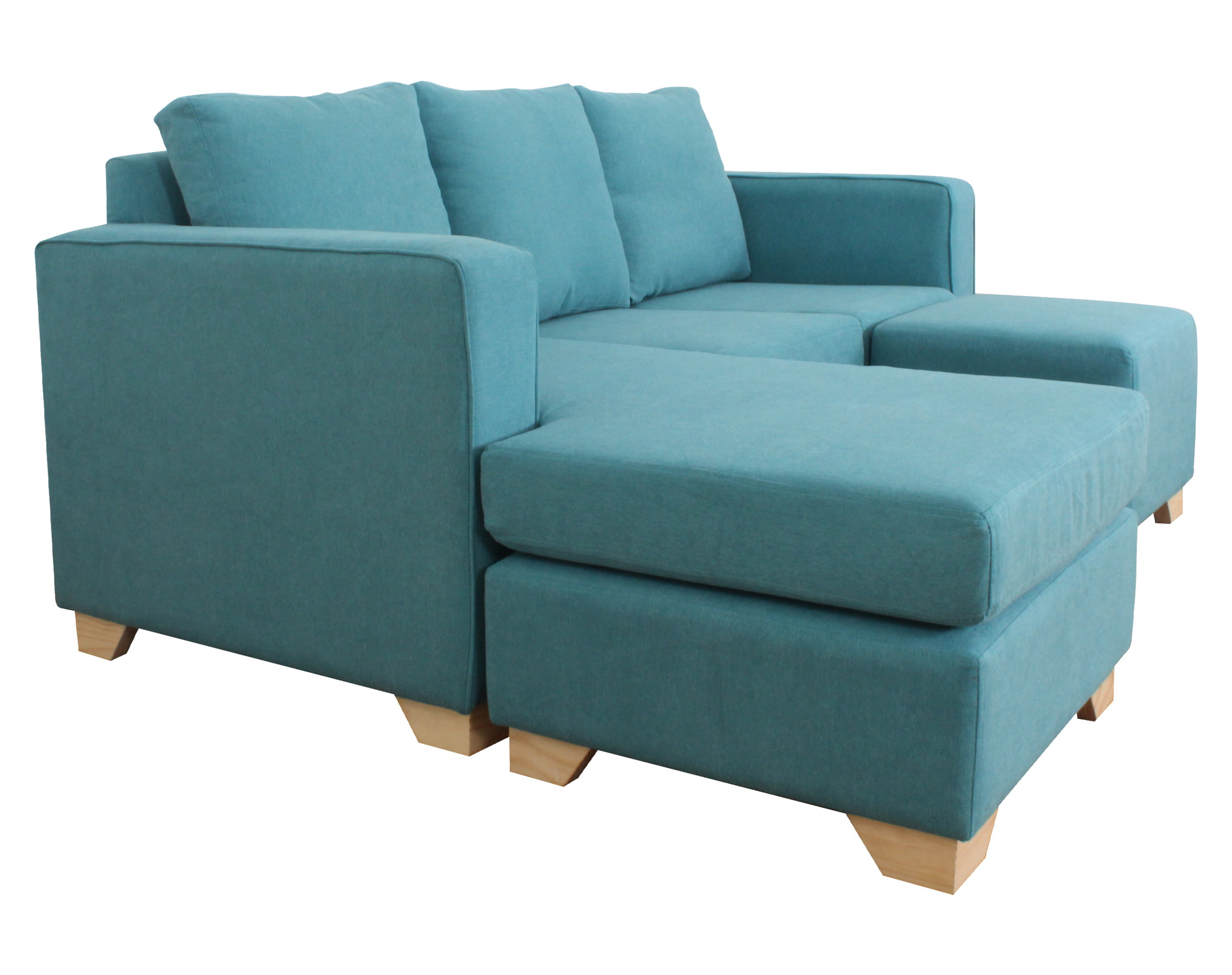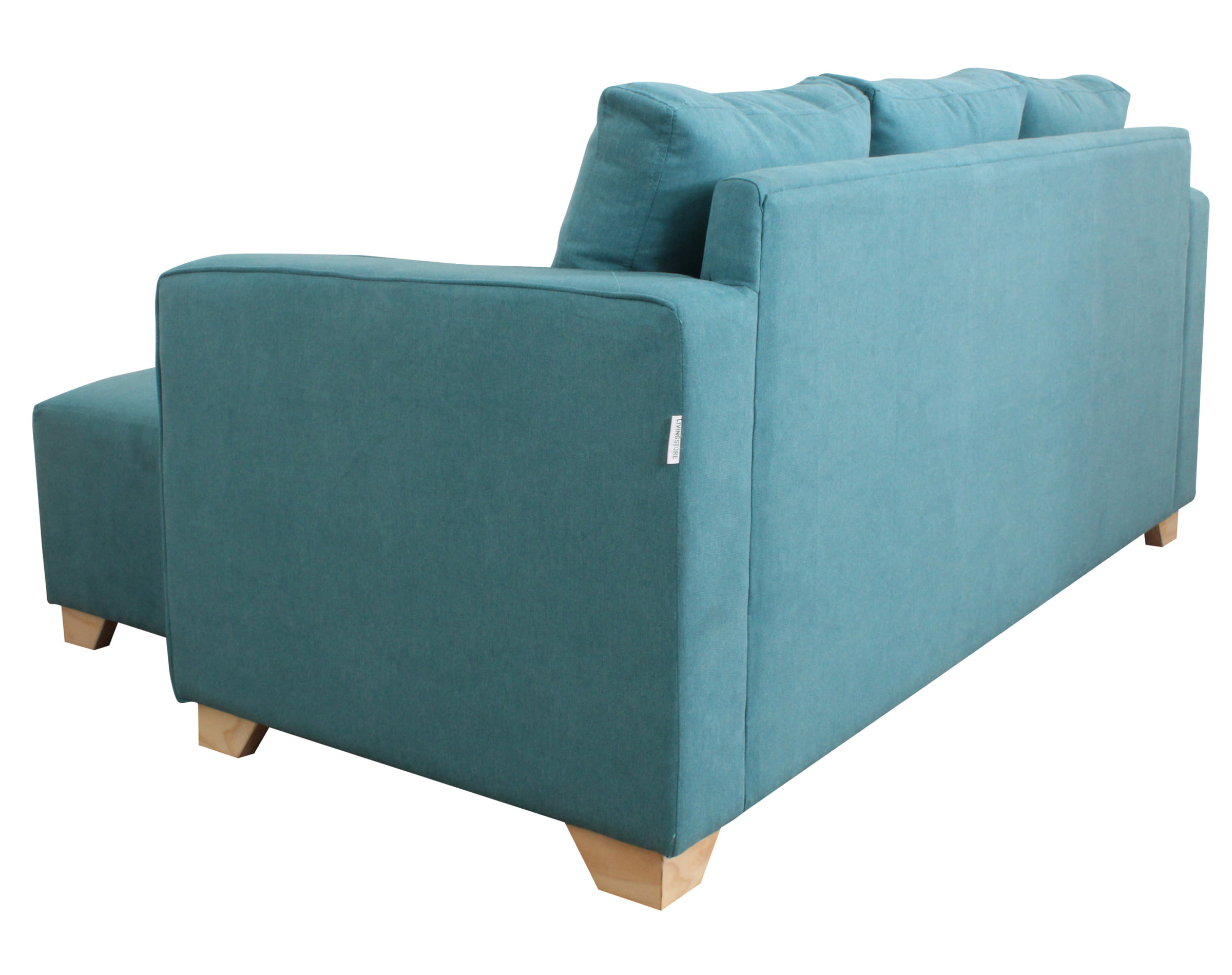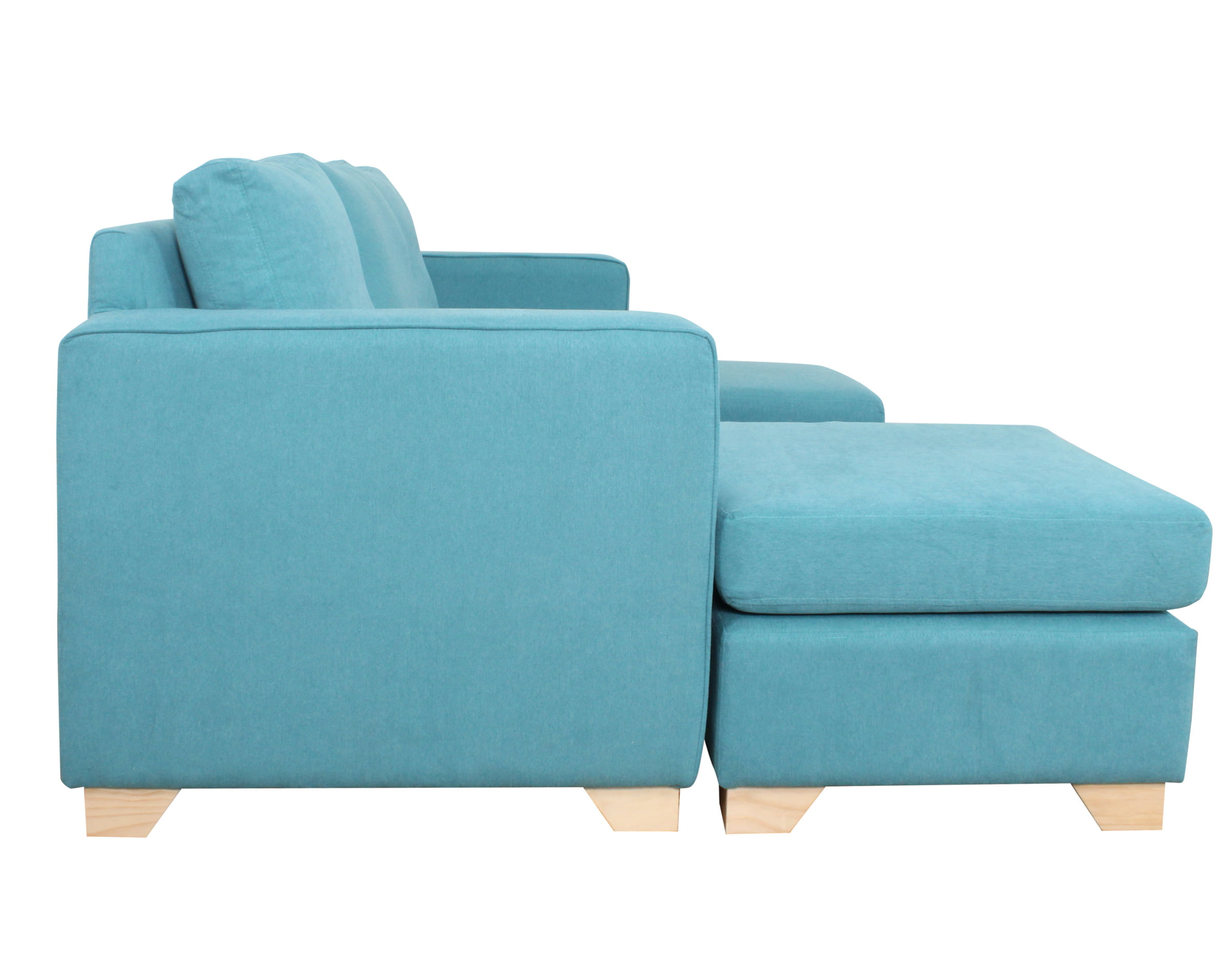 Imagen principal corresponde a Sofá 3 Cuerpos Roma Intercambiable + Pouf Calafate Turquesa pata madera natural ángulo 7 cm.