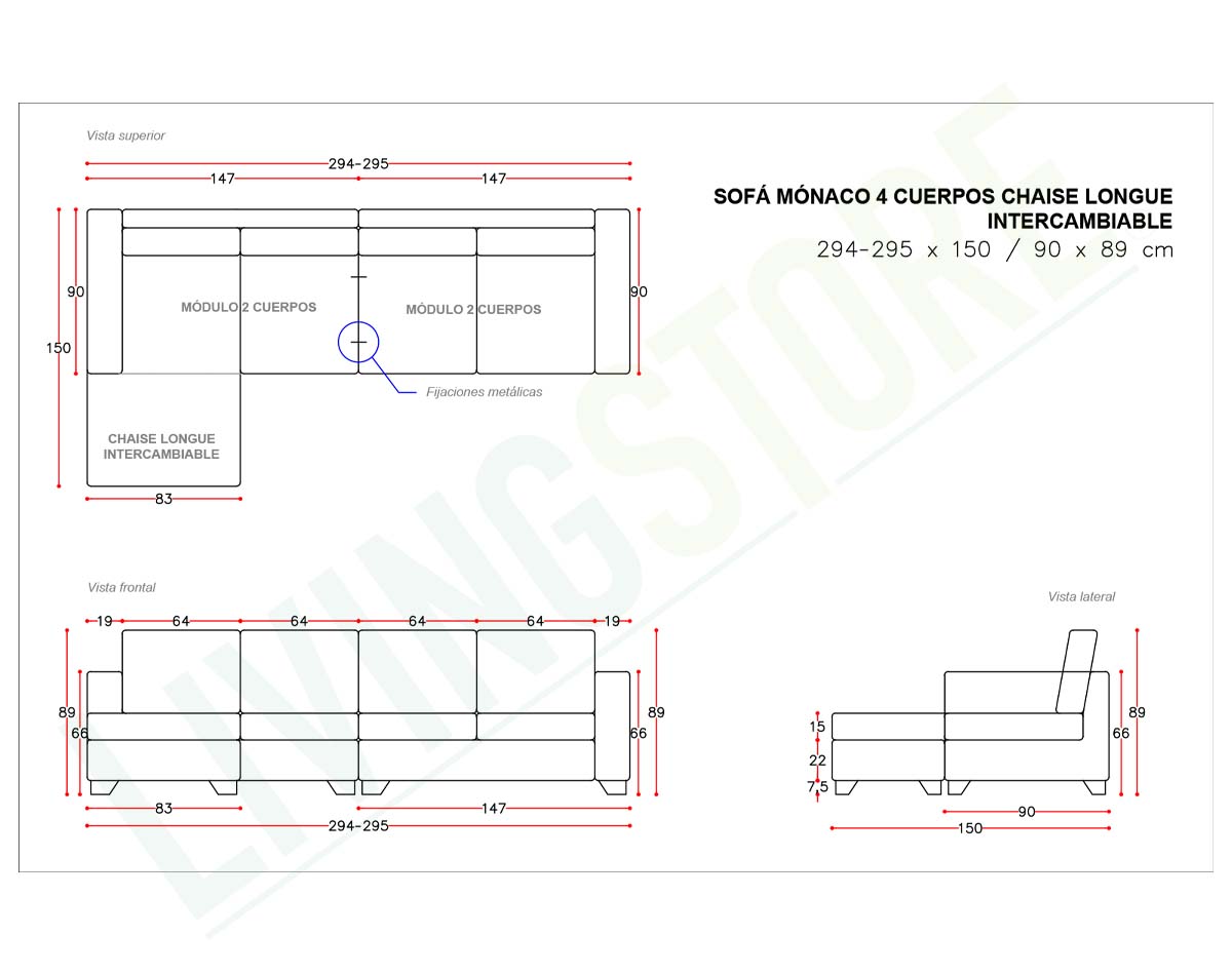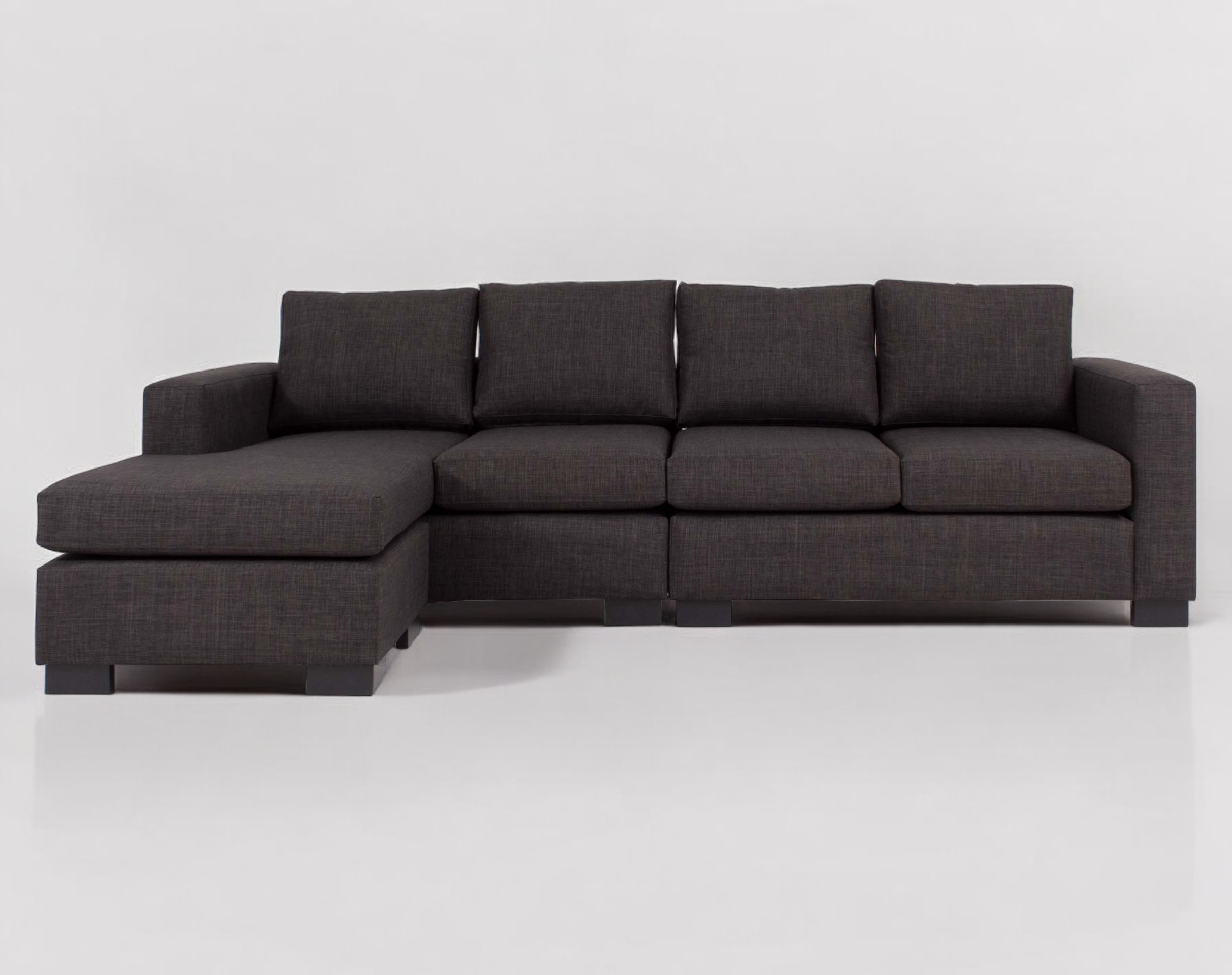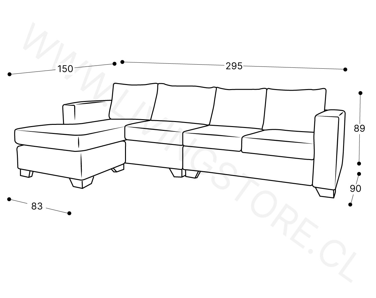 Sofá 4 cuerpos con chaise longue intercambiable, combinación de comodidad, diseño y flexibilidad de uso, puedes disponer su chaise longue a la izquierda o derecha de acuerdo a tu espacio. El tapiz, Bariloche de alto tráfico, es muy recomendable para espacios con alta afluencia de personas e incluso puede ser utilizado para mascotas.