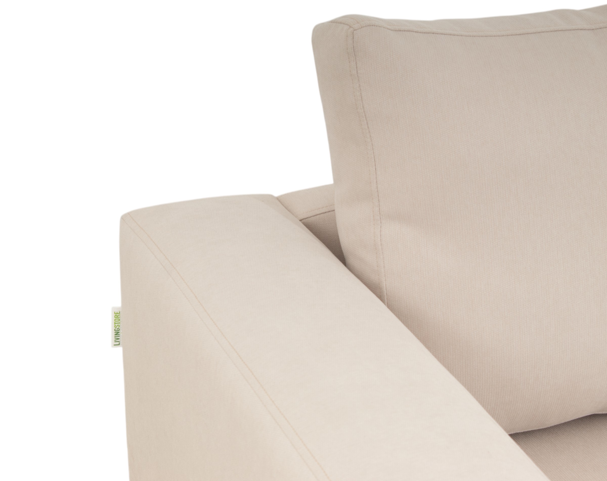 Los cojines de asiento están rellenos con espuma de alta densidad (30–35 kg/m³), lo que garantiza mayor soporte, durabilidad y confort prolongado, manteniendo la forma del sofá con el paso del tiempo.