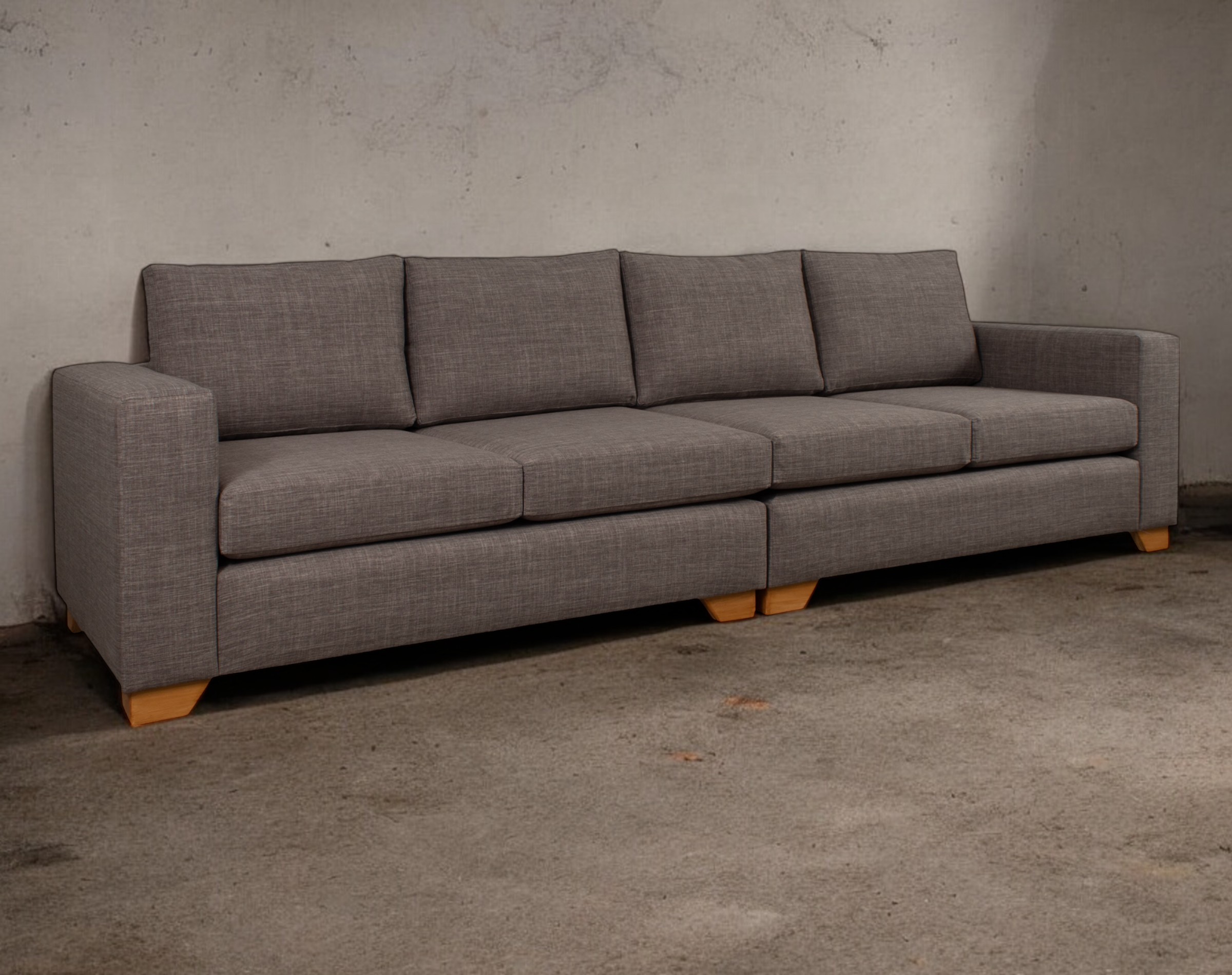 Sofá de 4 cuerpos, dividido en 2 módulos anclados con fijaciones metálicas laterales. Este sofá combina funcionalidad y resistencia, con su tapizado en tela Bariloche de alto tráfico, especialmente diseñada para resistir el roce y el desgaste, lo que lo hace ideal para hogares con mascotas, niños o para uso en oficinas y salas de recepciones. Disfruta de la comodidad y durabilidad que ofrece este sofá, sin preocuparte por posibles daños o desgaste prematuro.