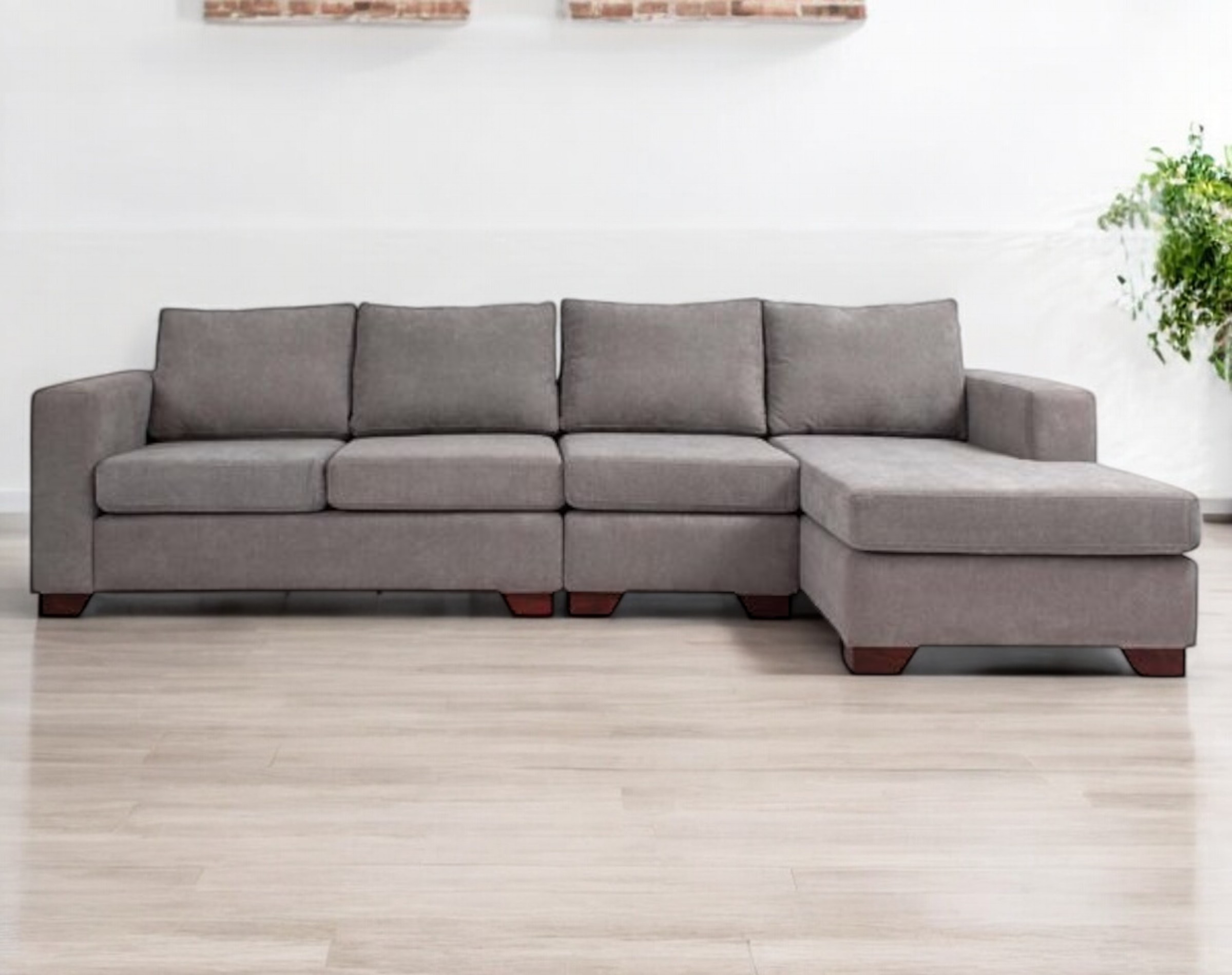 Con una longitud de 295 cm, el Sofá Seccional Mónaco ofrece un espacio interior amplio para relajarse o recibir invitados. Esta compuesto por tres piezas; Sofá, Butaca, y Chaise Longue derecho todo unido por un anclaje metálico.