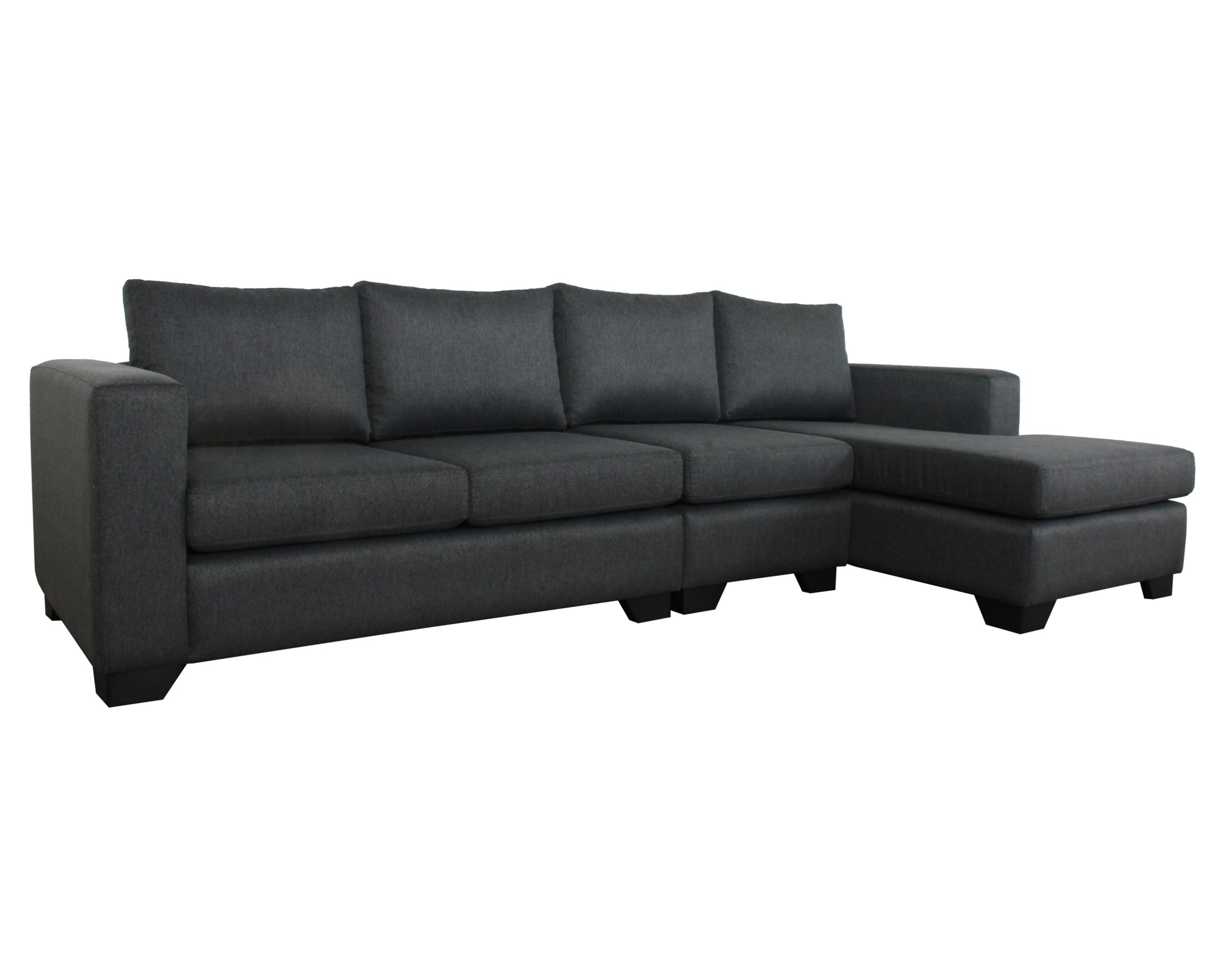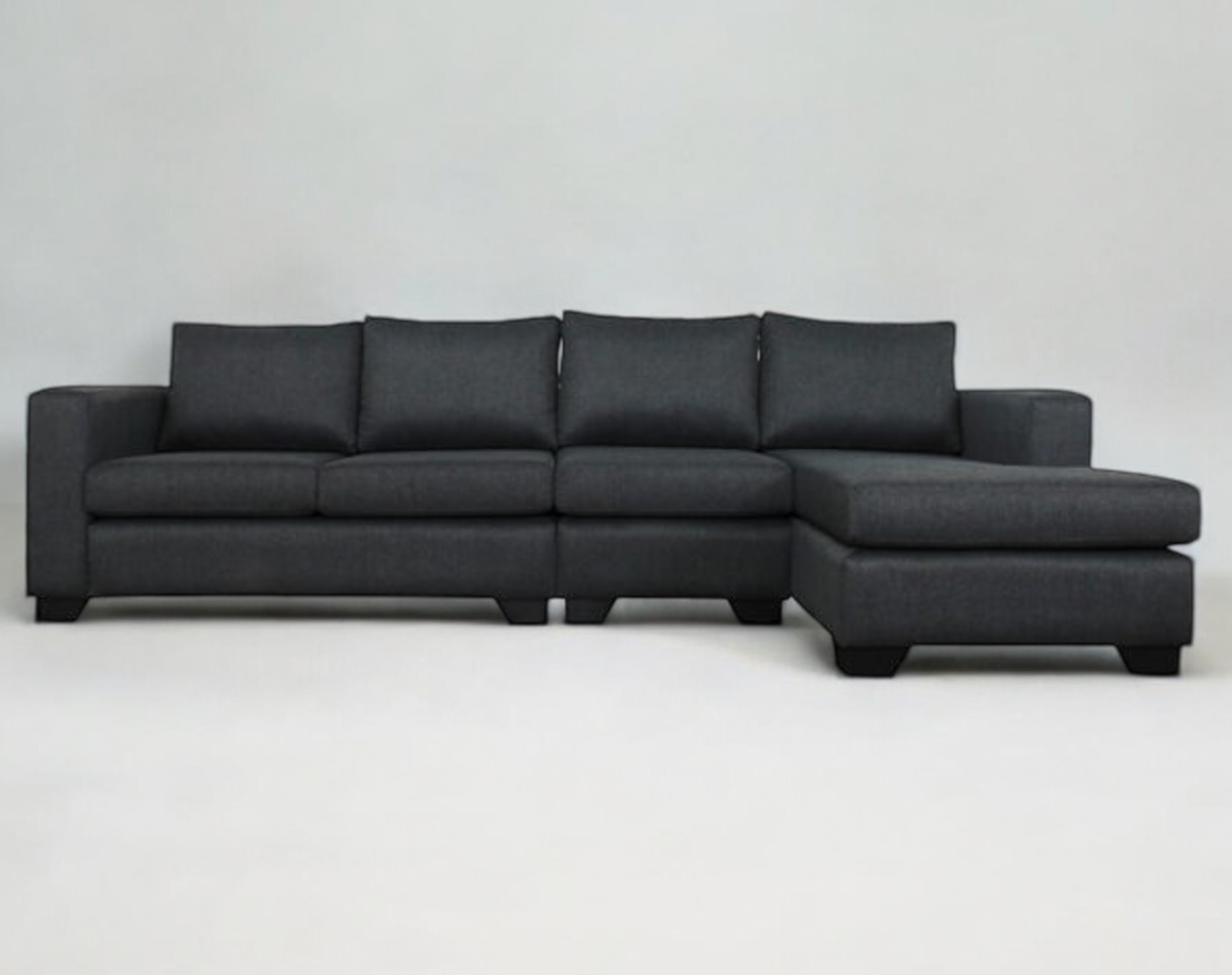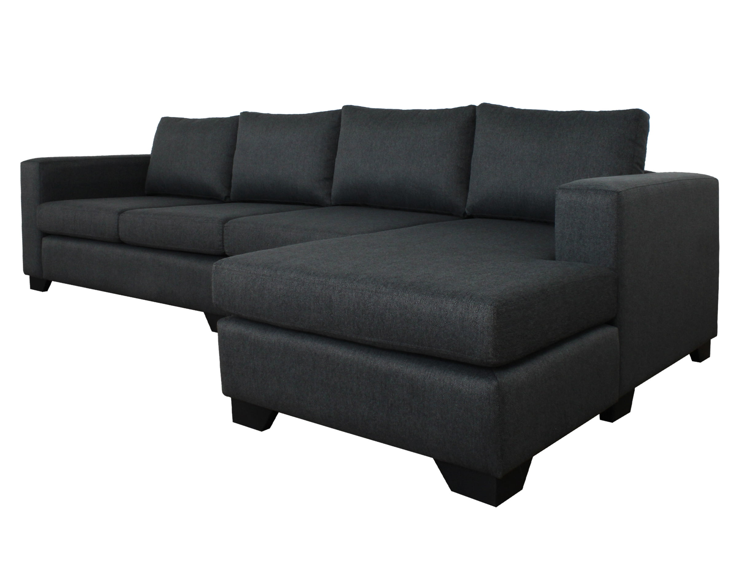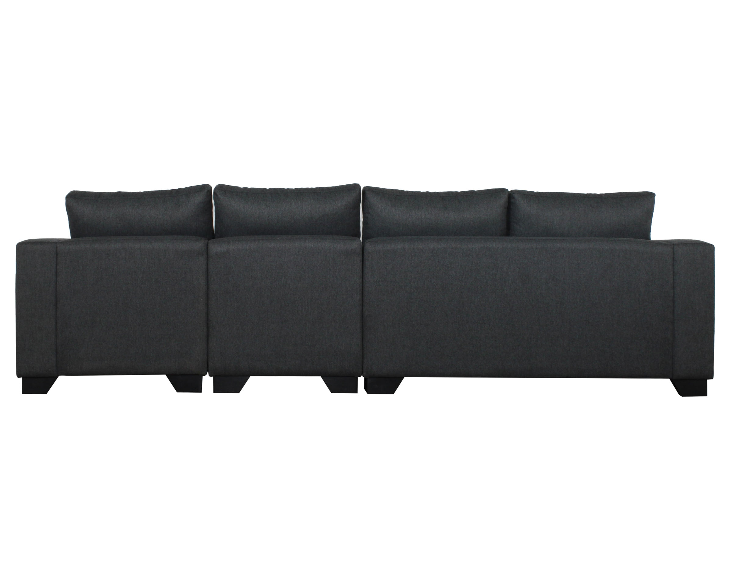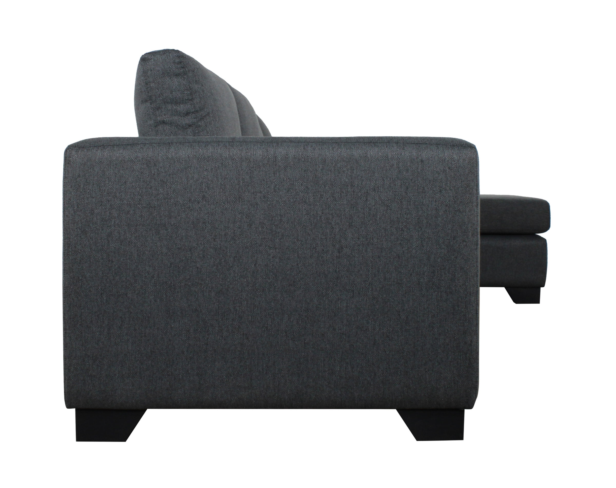 El Sofá Seccional Chaise Longue Mónaco Living Store incluye 3 piezas: Sofá Chaise, butaca y sofá, todo unido por un anclaje metálico.