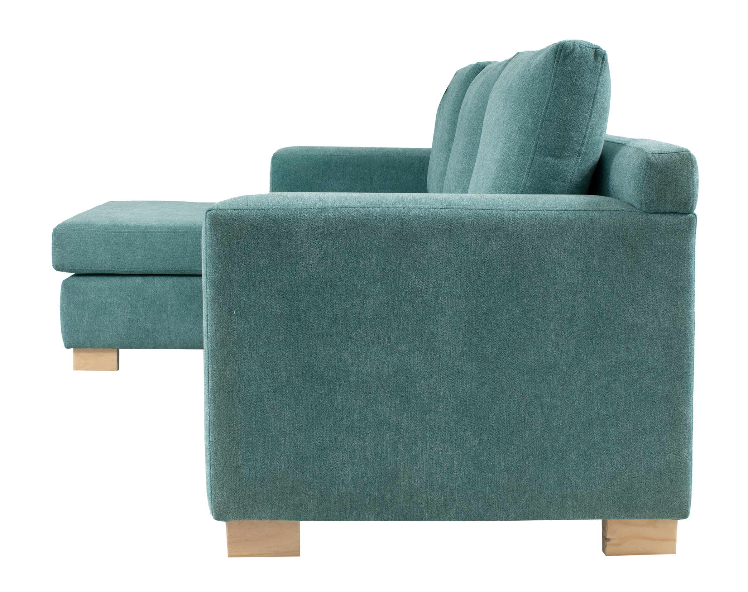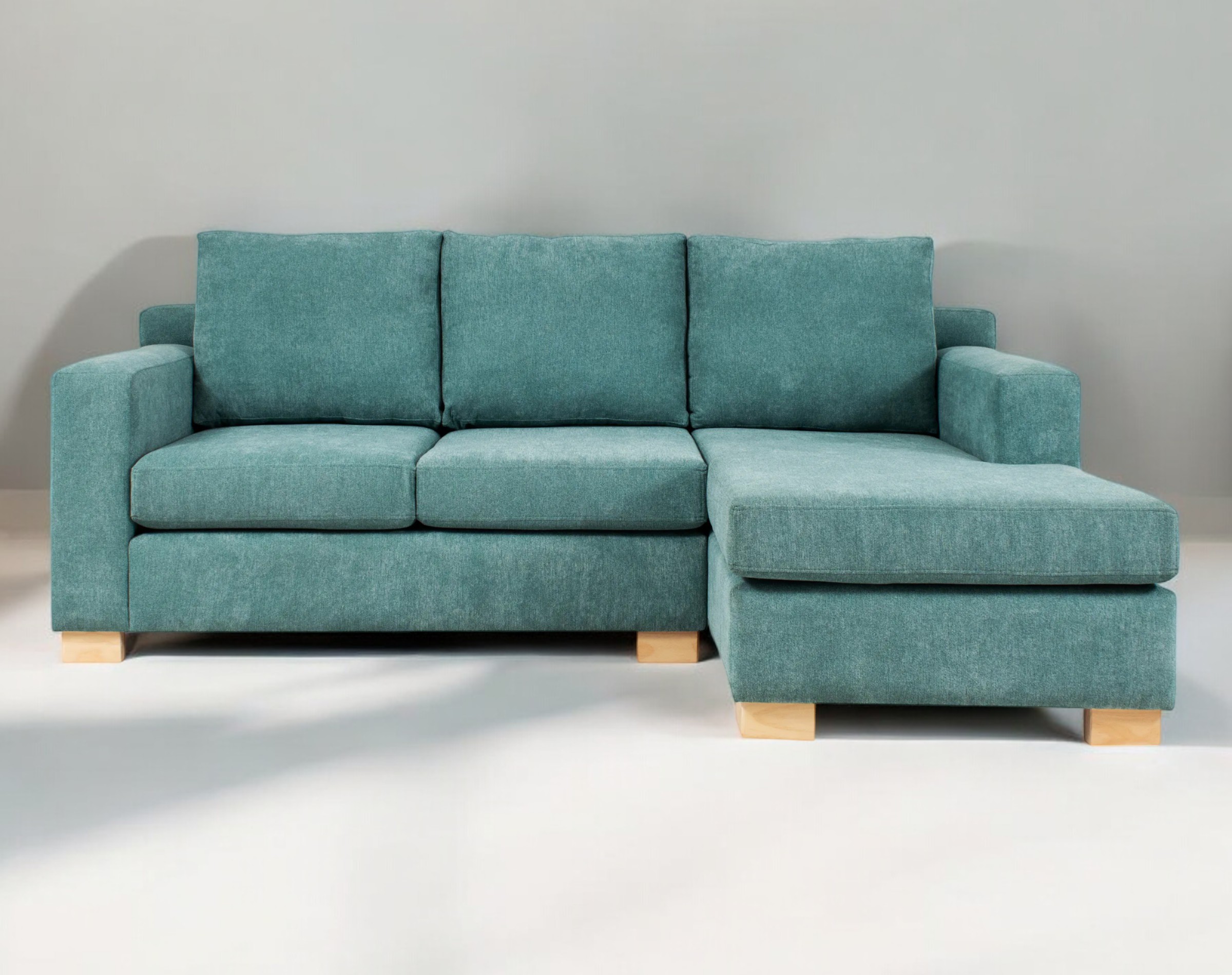 El seccional Isabella está compuesto por dos módulos independientes: un sofá de dos cuerpos y una chaise longue derecho perfecto para estirarse, leer o relajarse. Esta configuración modular no solo aporta versatilidad al diseño, sino que facilita su transporte e instalación, especialmente en departamentos o espacios con accesos reducidos.