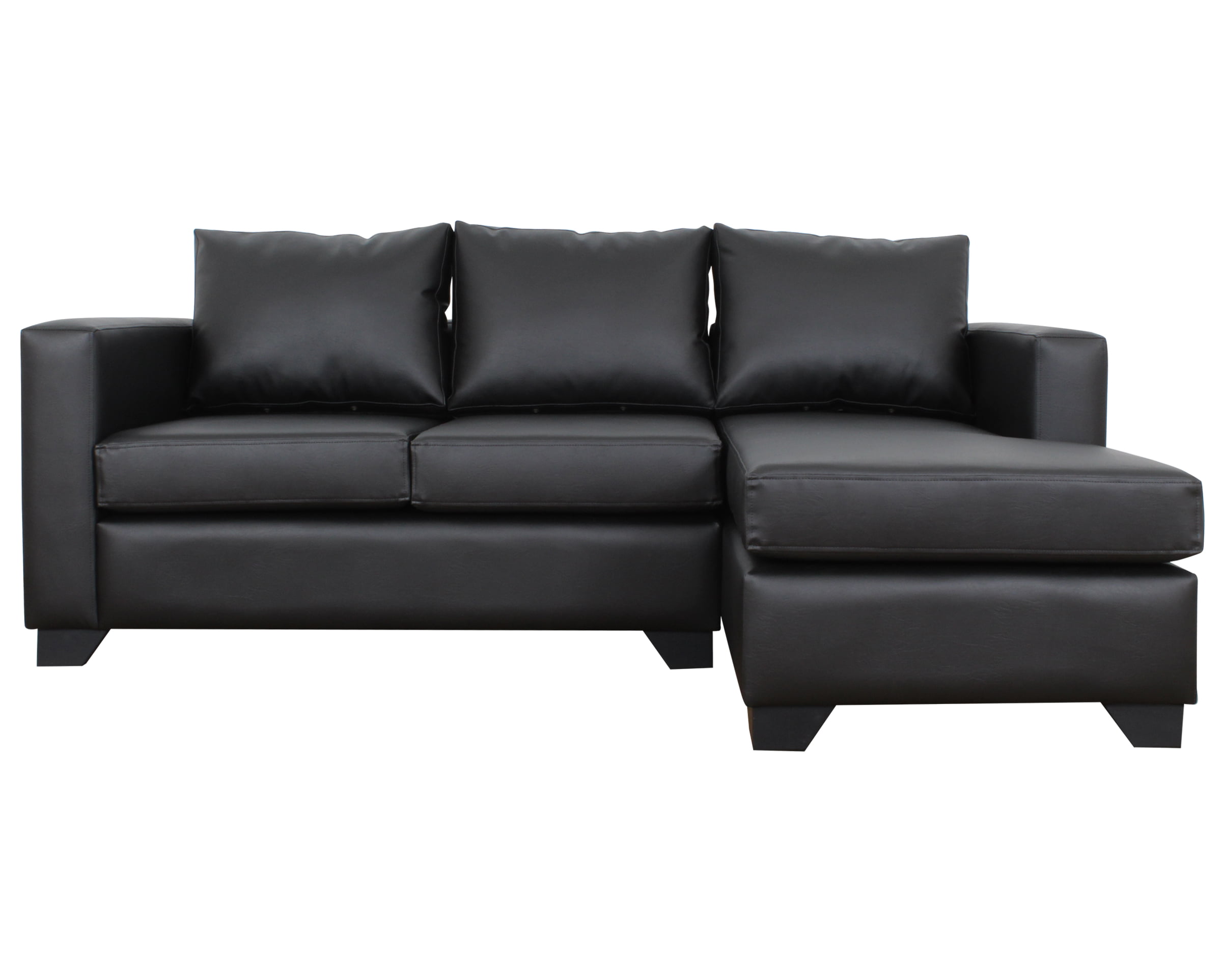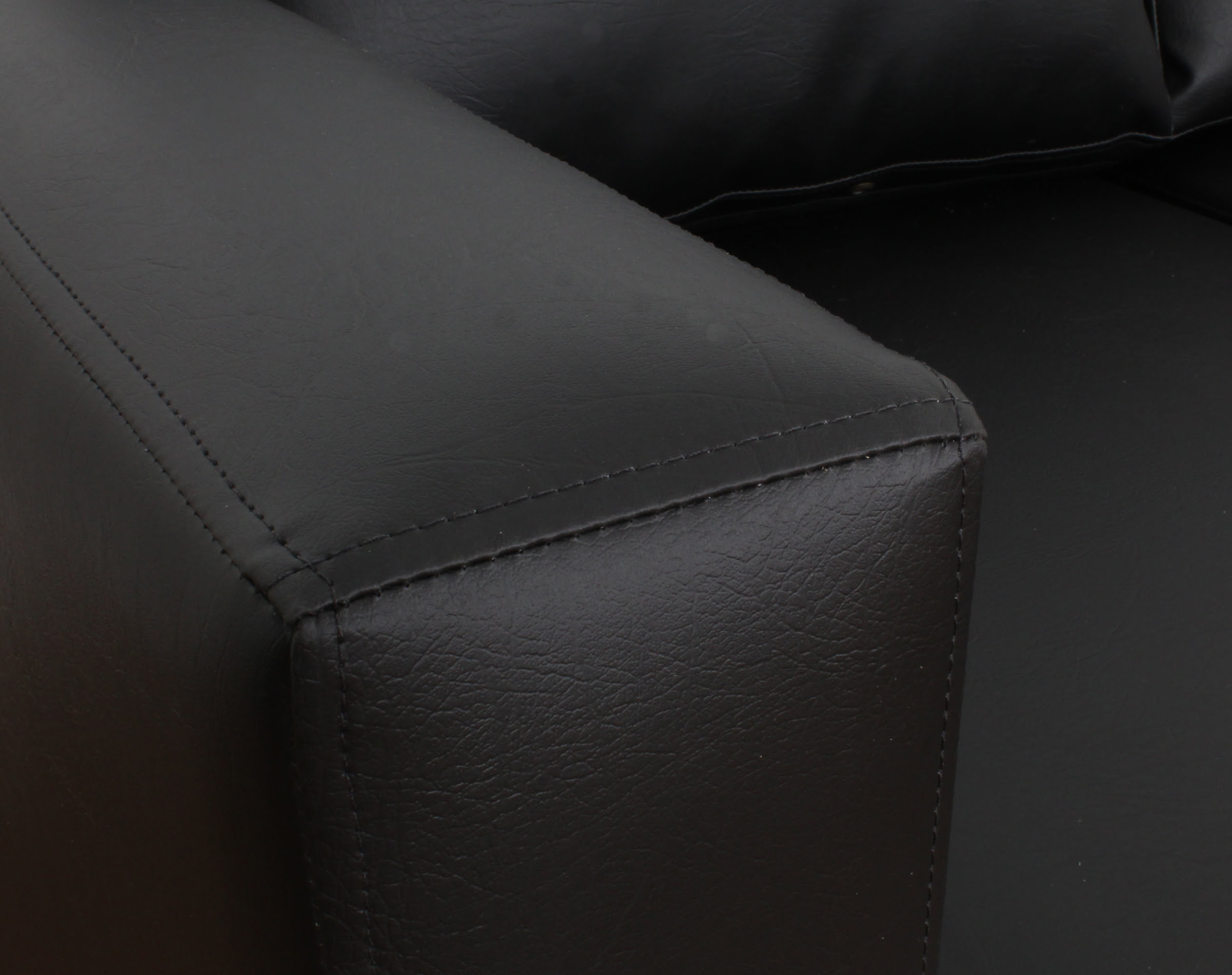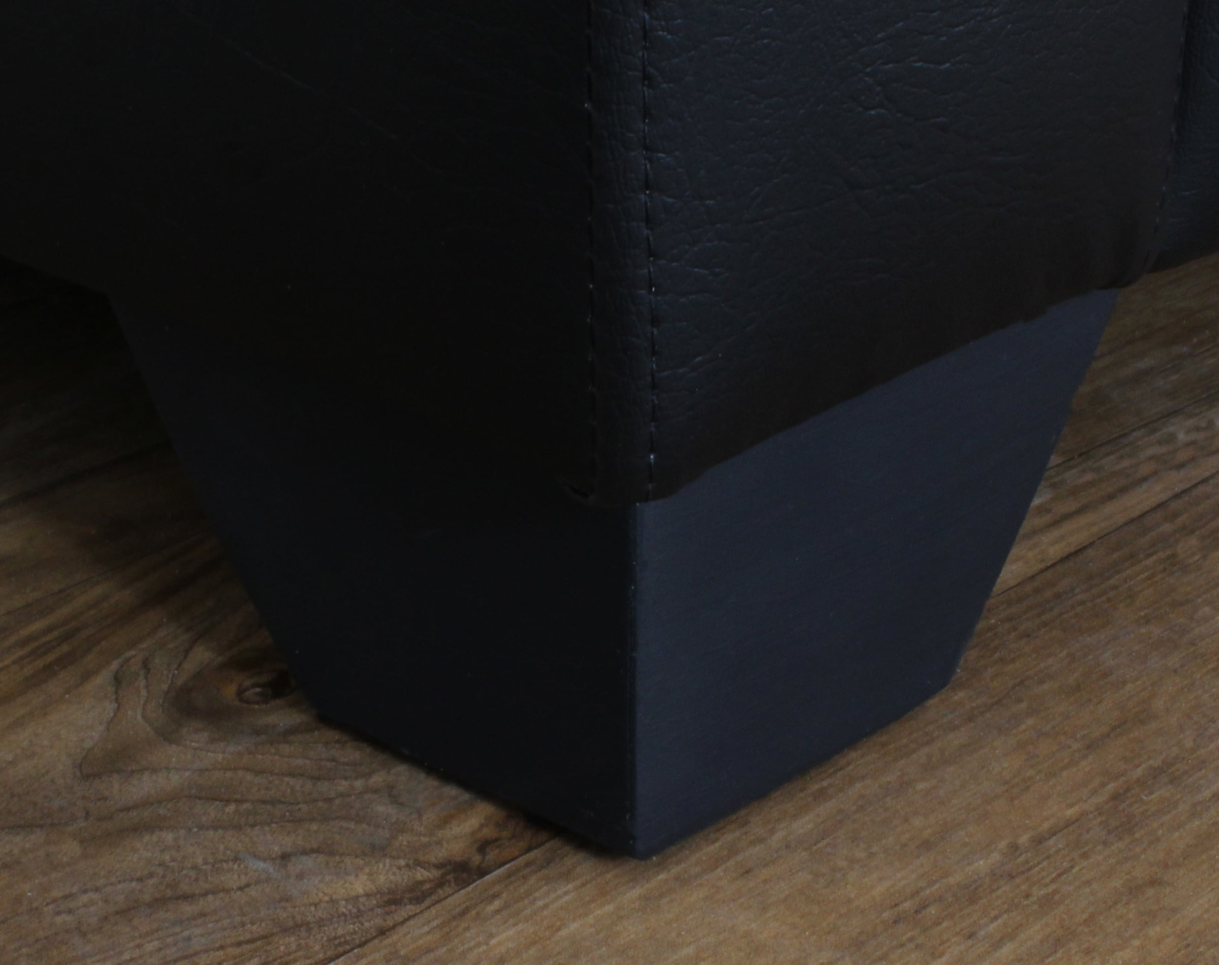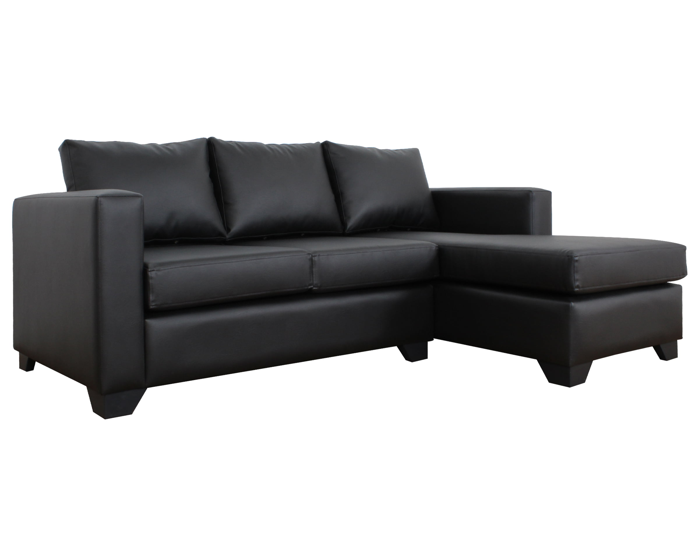 Sofá seccional modelo Mónaco chaise longue derecho tapiz Cuero sintético Praga color negro con Pata madera 7 cm color grafito corte ángulo.