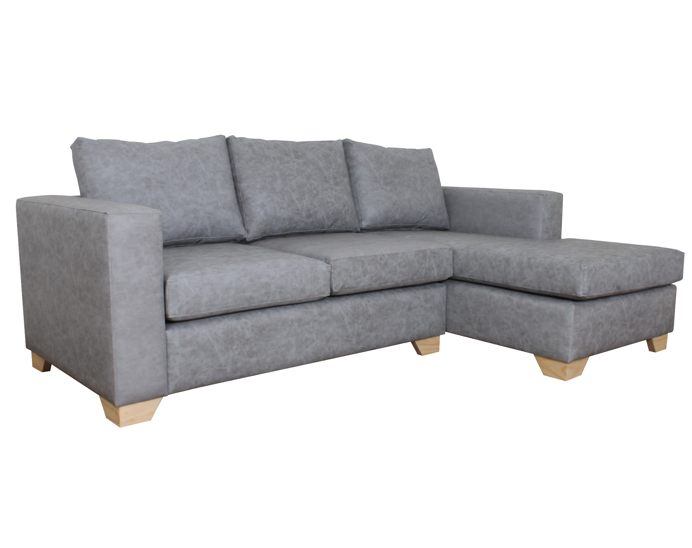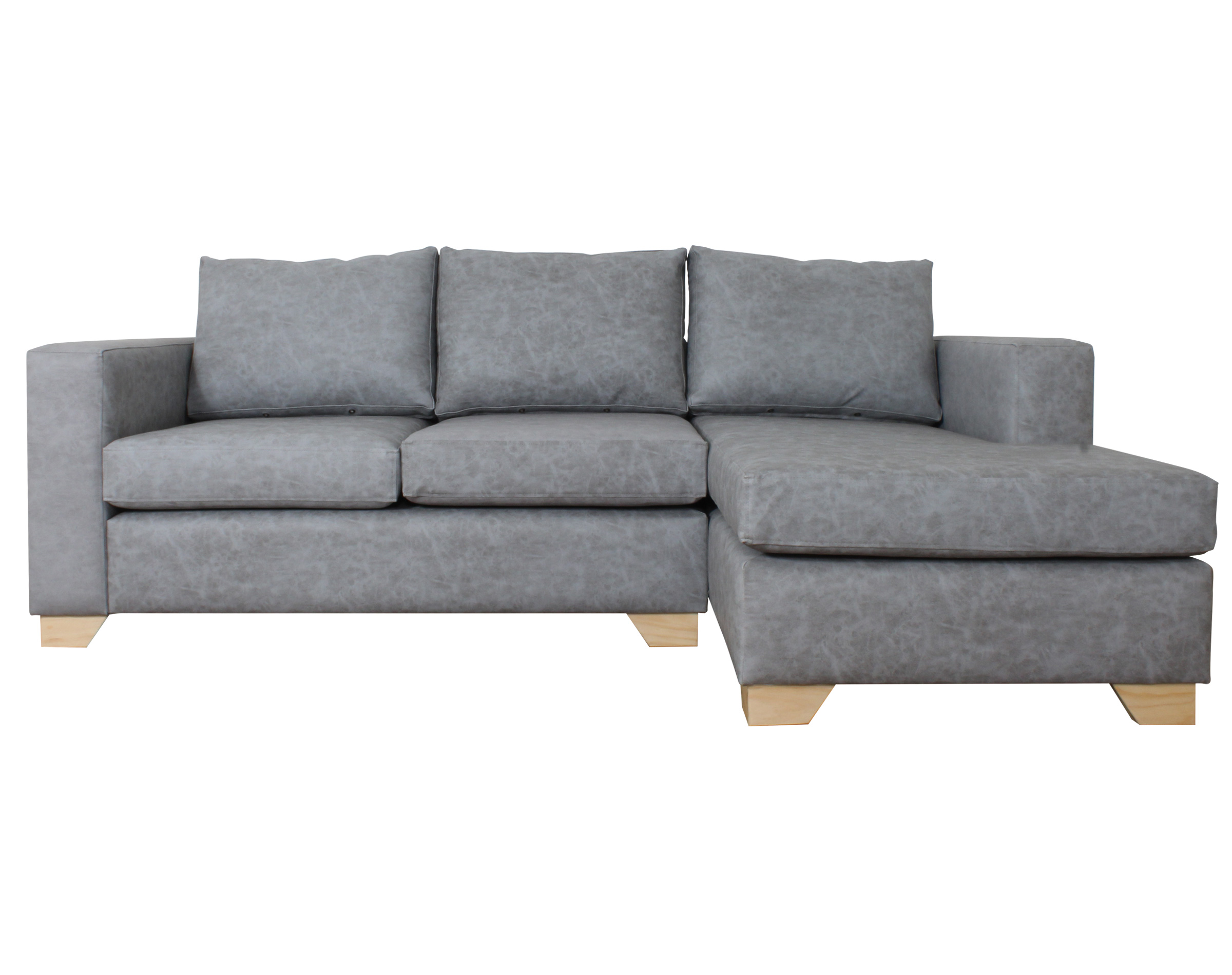 Imagen principal corresponde a Sofá Seccional Mónaco Derecho Terra Pro Gris pata madera 7 cm natural corte ángulo.