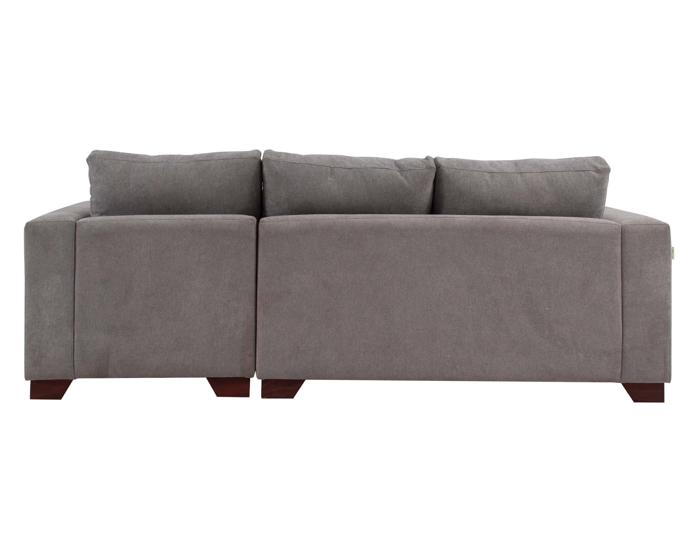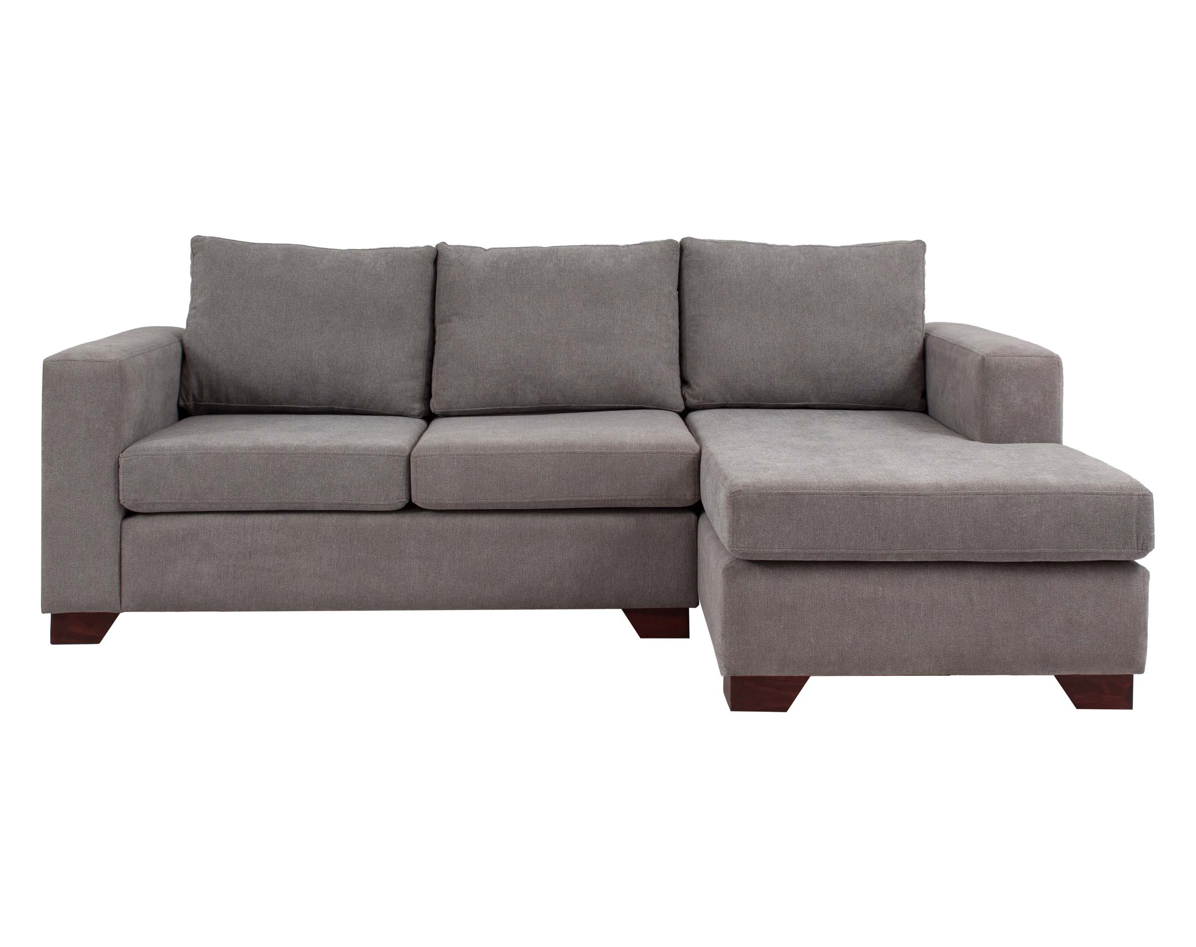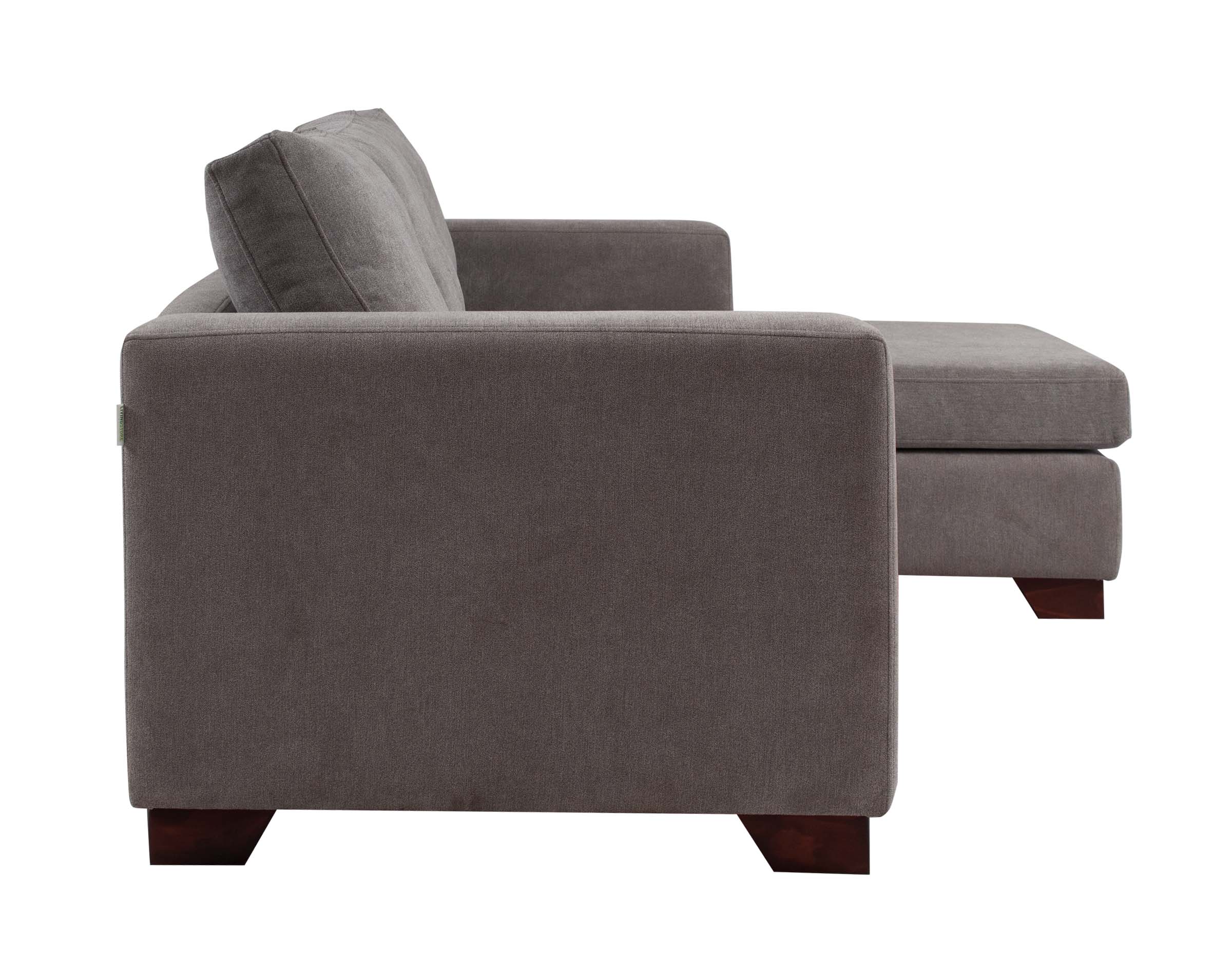 Imagen principal corresponde a Seccional Mónaco chaise longue derecho tapiz Finesse color gris medio con patas de madera color ciprés corte ángulo.