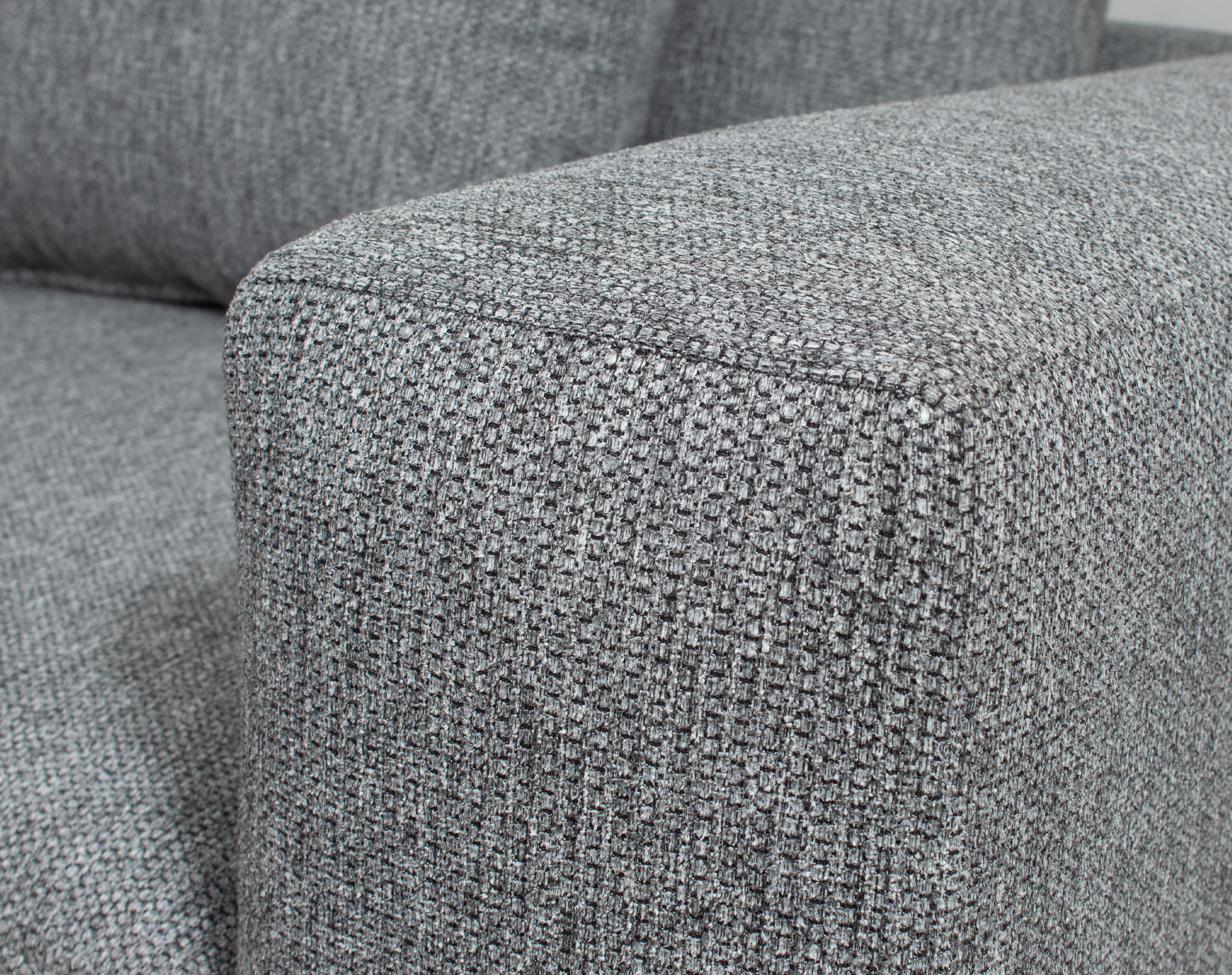 El sistema de suspensión del Sofá Seccional New Levante está compuesto por un tejido de cinta elástica de alta resistencia cubierta con tela y una capa de espuma de alta densidad adherida a la base estructural.
