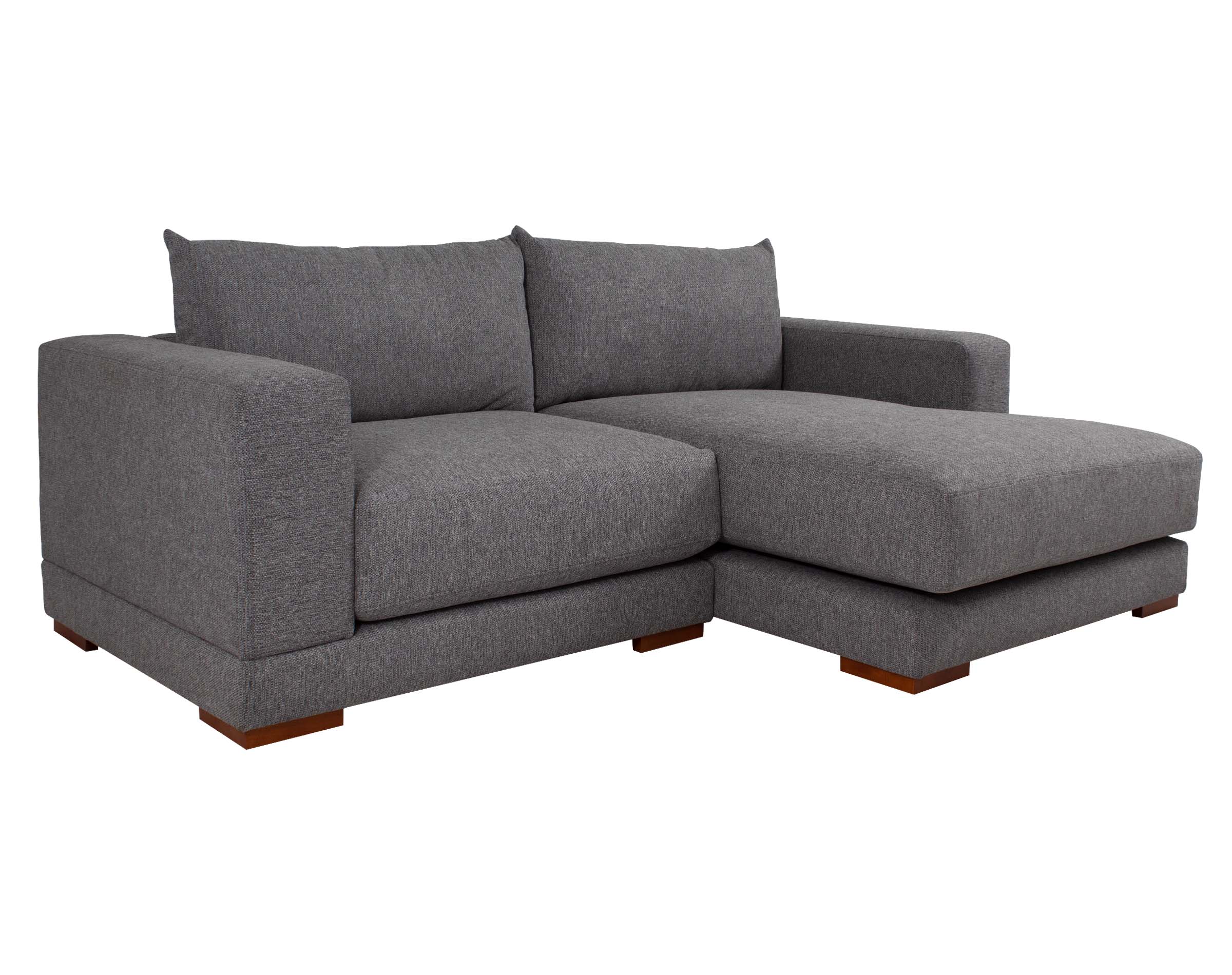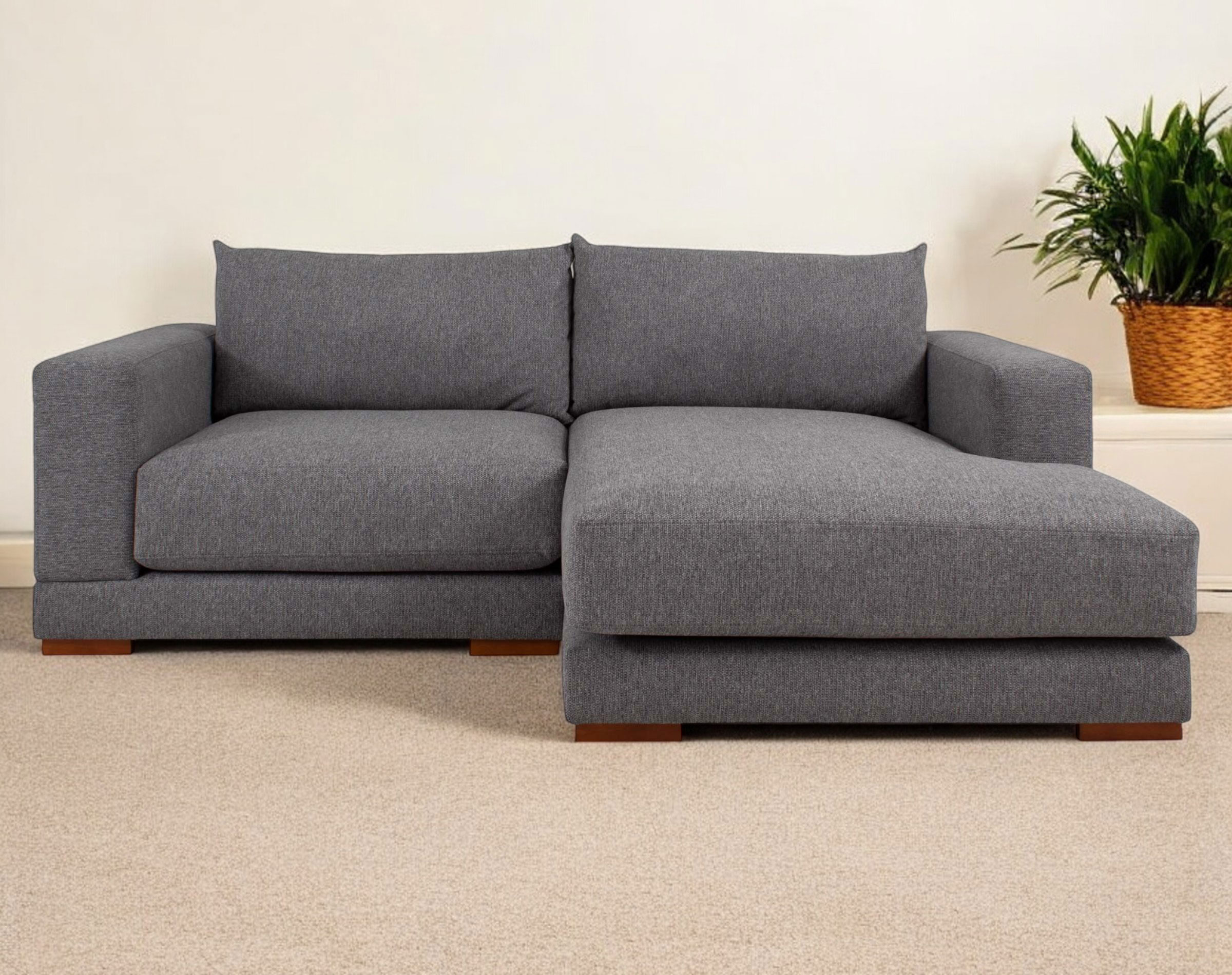 Imagen principal corresponde a Sofá Seccional Nubo chaise longue derecho tapiz YD 230 color gris y patas de madera importada color cedro altura 4 cm.