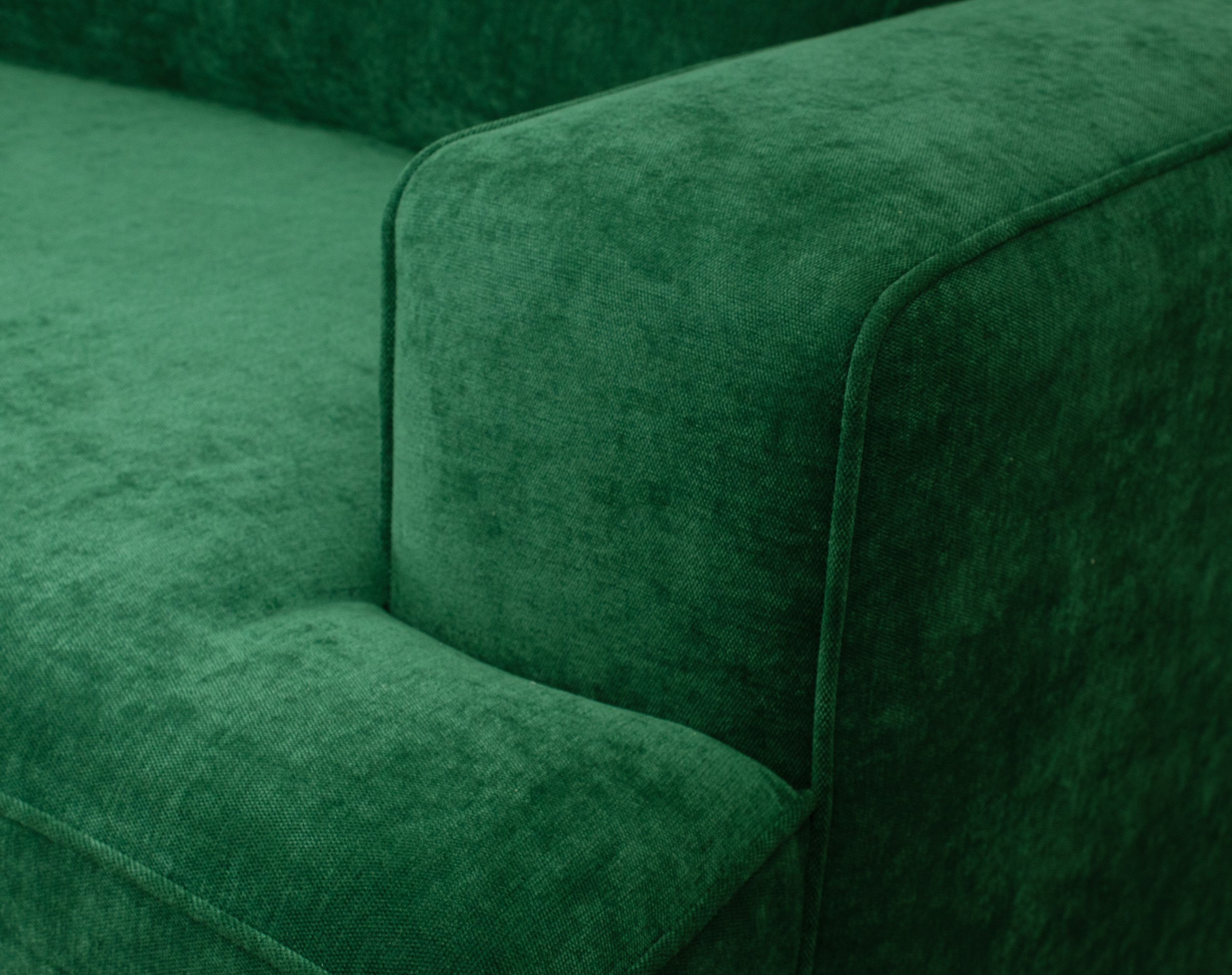 Tapizado en tela Neruda, un textil tipo velvet suave y delicado, está disponible en varios colores para adaptarse a cualquier estilo de decoración. Los cojines de asiento están integrados en la estructura y fabricados en espuma hipersoft, brindando una suavidad excepcional. Los cojines del respaldo son removibles y con cierre, facilitando la limpieza y el mantenimiento diario.