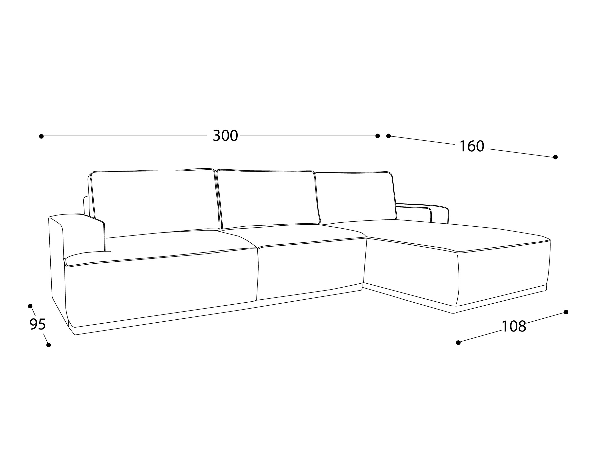 El Sofá Seccional Modelo Paris combina diseño moderno con amplitud y confort para realzar cualquier espacio. Con un generoso largo de 300 cm y una profundidad de 95 cm, ofrece una experiencia de comodidad superior. Su chaise longue de 160 cm invita a estirarse por completo, perfecta para relajarse, leer o tomar una siesta.
