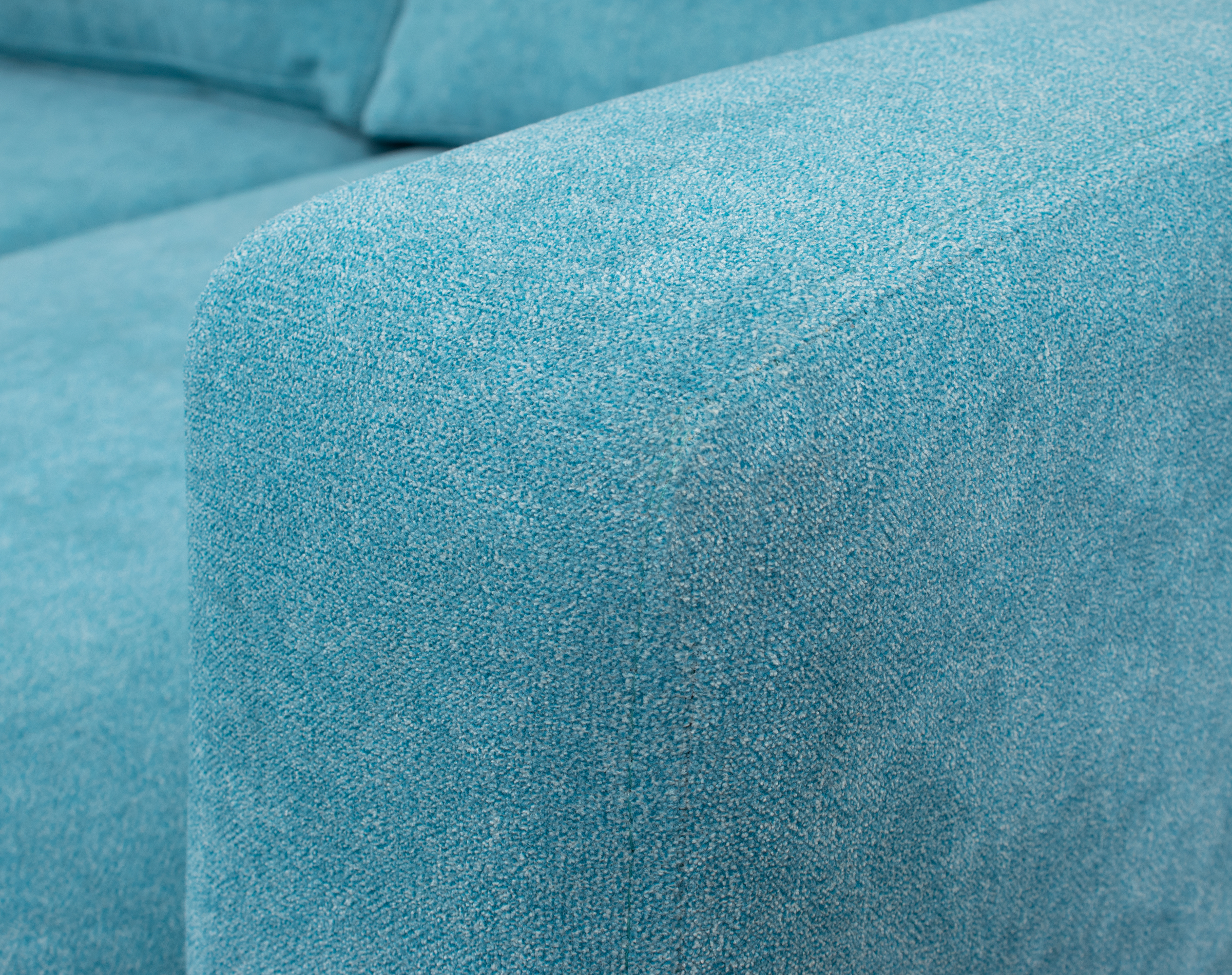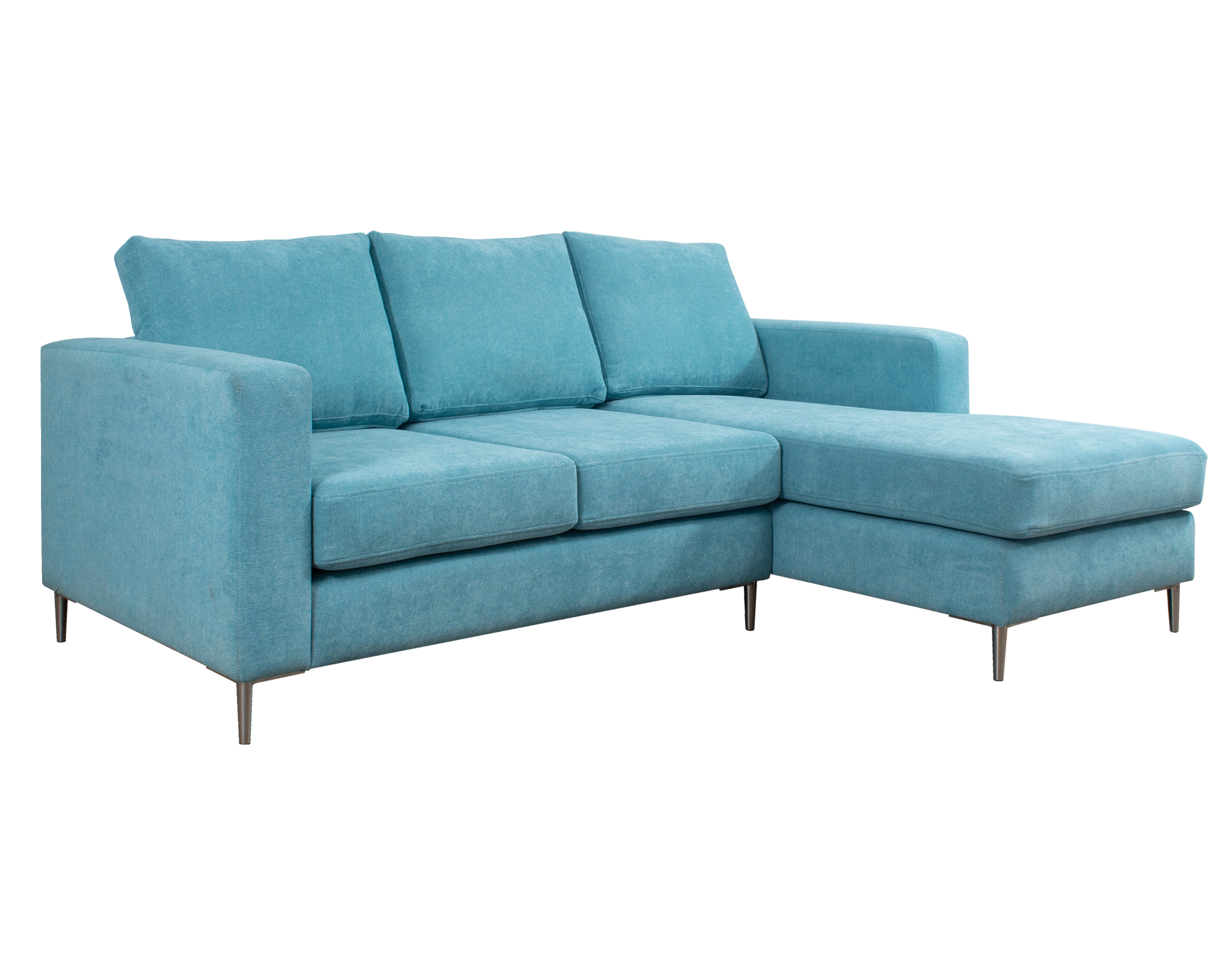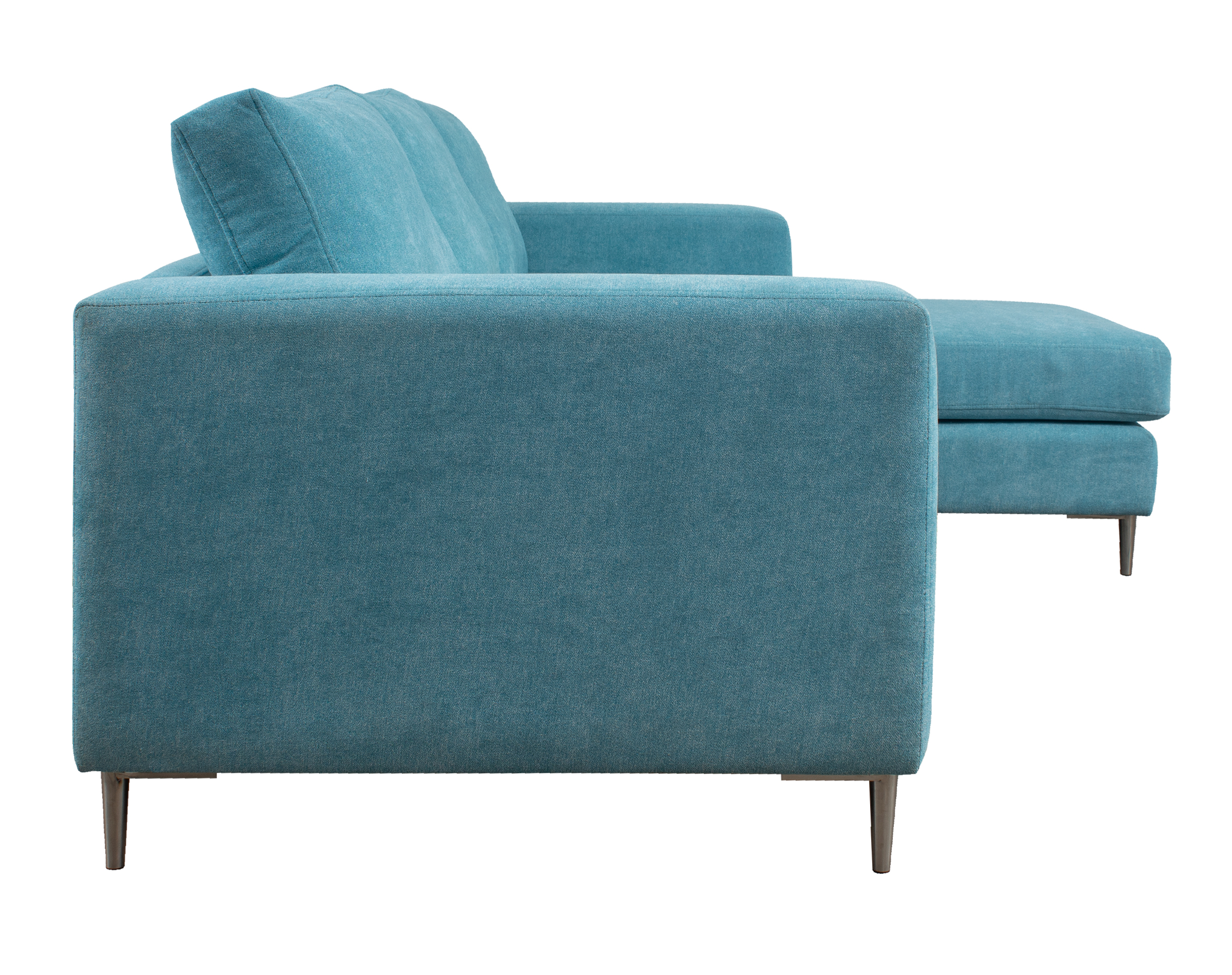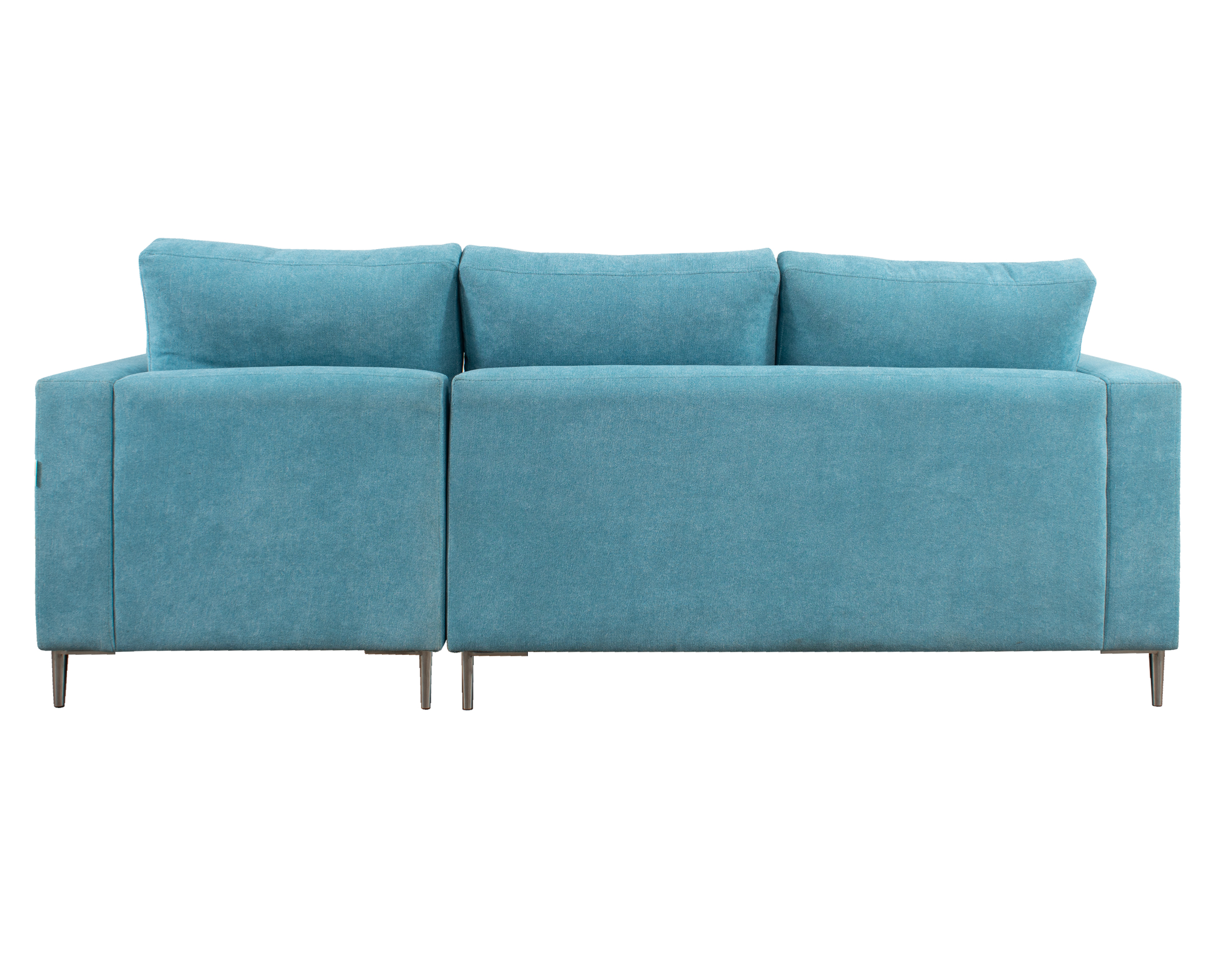 Transforma tu hogar con el Sofá Seccional Modelo Tai, que combina diseño moderno y materiales de alta calidad. Tapizado en tela Finesse hidrorrepelente en color celeste, ofrece una textura suave tipo chenille que aporta calidez y confort. Las patas de metal cónicas de 12 cm en color plata añaden un toque moderno, mientras que los asientos con espuma de densidad 30 garantizan comodidad y durabilidad. El chaise longue amplio y profunda es perfecto para relajarse. Con unas dimensiones de 210 cm de largo, una chaise longue de 150 cm de largo y una profundidad de 90 cm, se adapta a cualquier espacio.