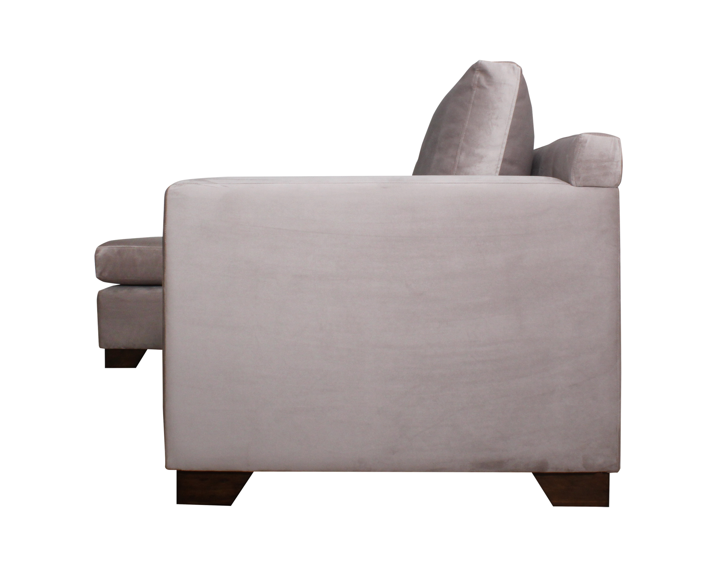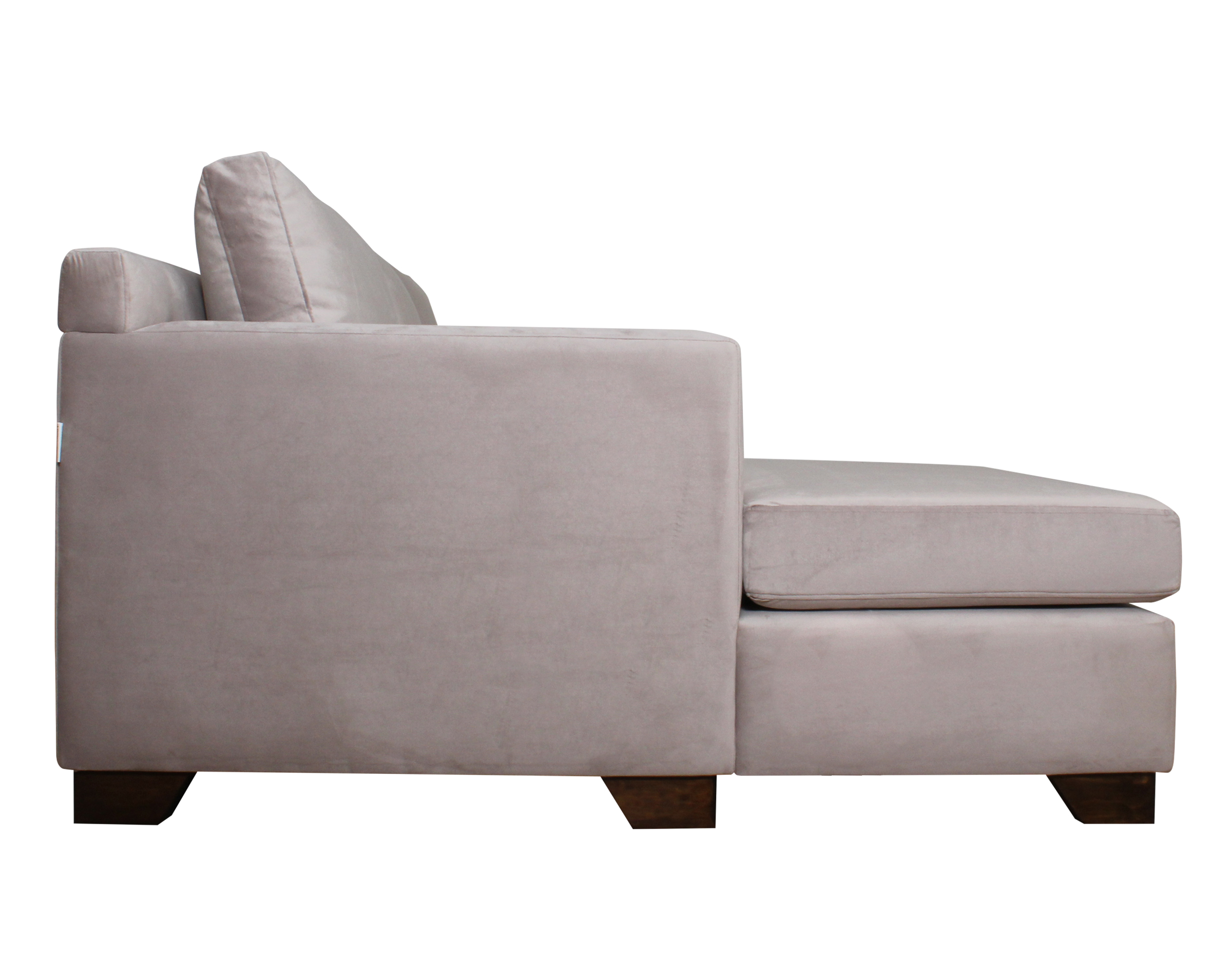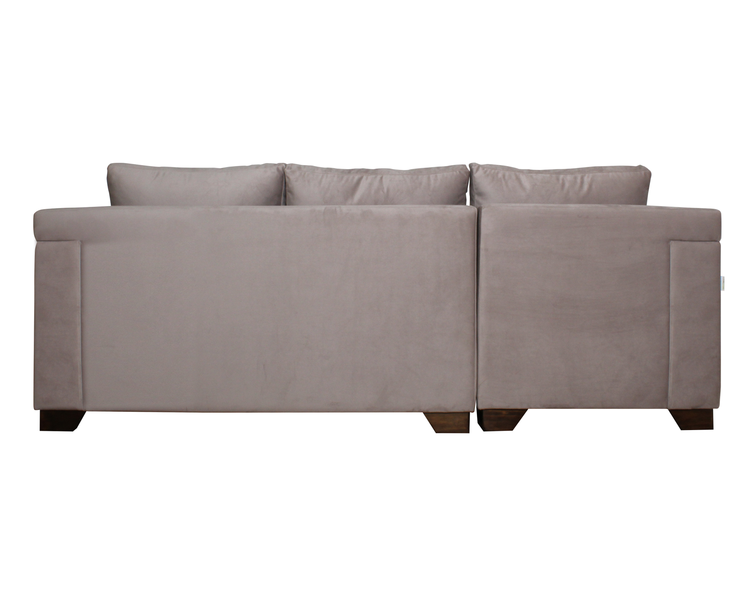El lado izquierdo del seccional está diseñado para permitir una mayor flexibilidad y versatilidad en la disposición del mueble en la habitación. Además, está tapizado en felpa velluti, un tejido suave y aterciopelado al tacto que añade una sensación de calidez a la decoración del hogar. Como tip adicional, te recomendamos escoger felpa si tienes gatos en casa, ya que es un tapiz que no los atrae a rasguñar partes del sofá como los brazos y respaldos.