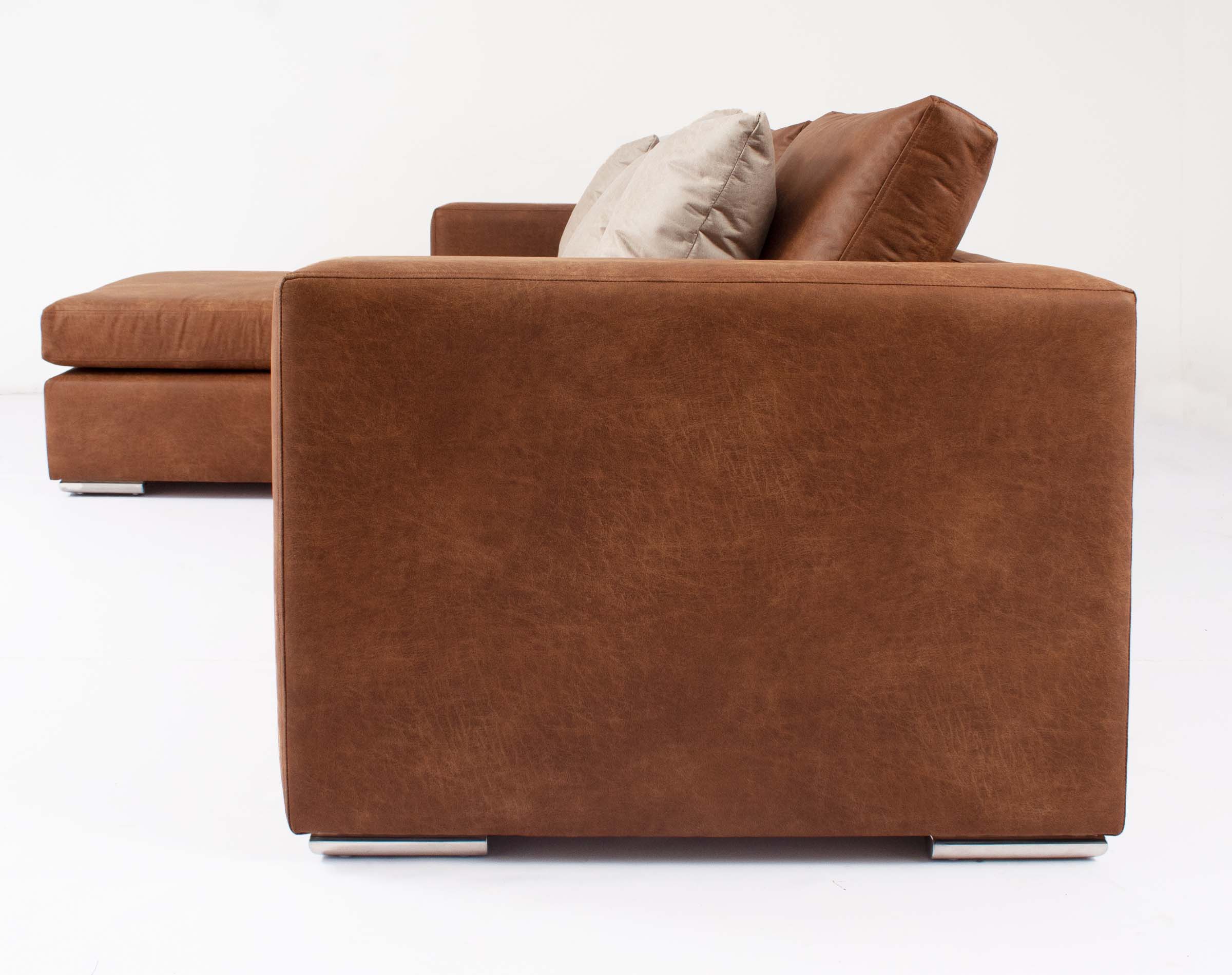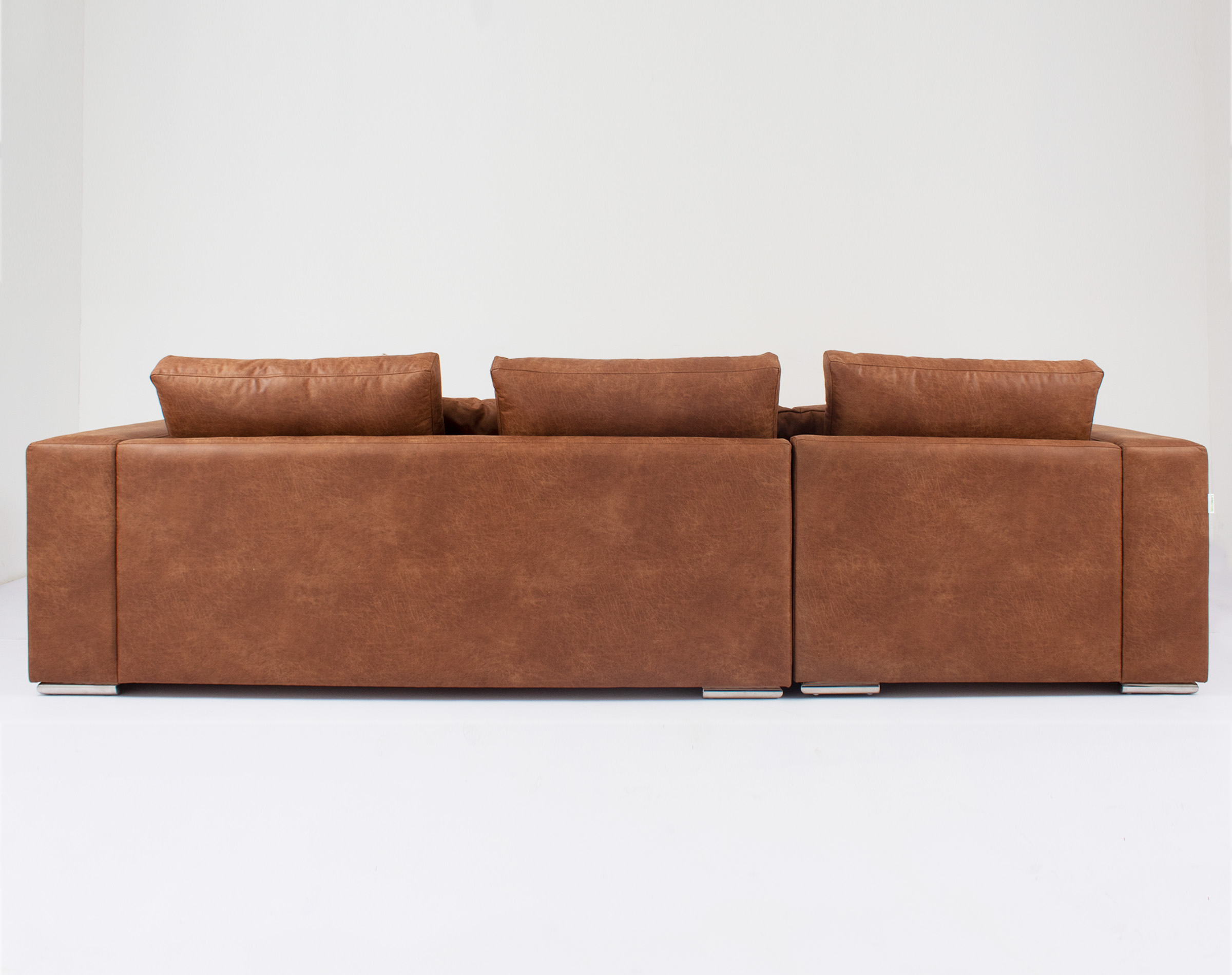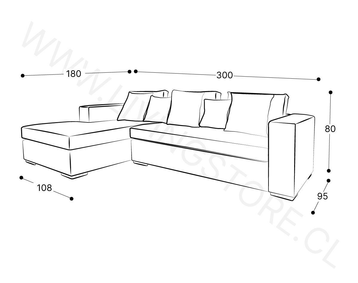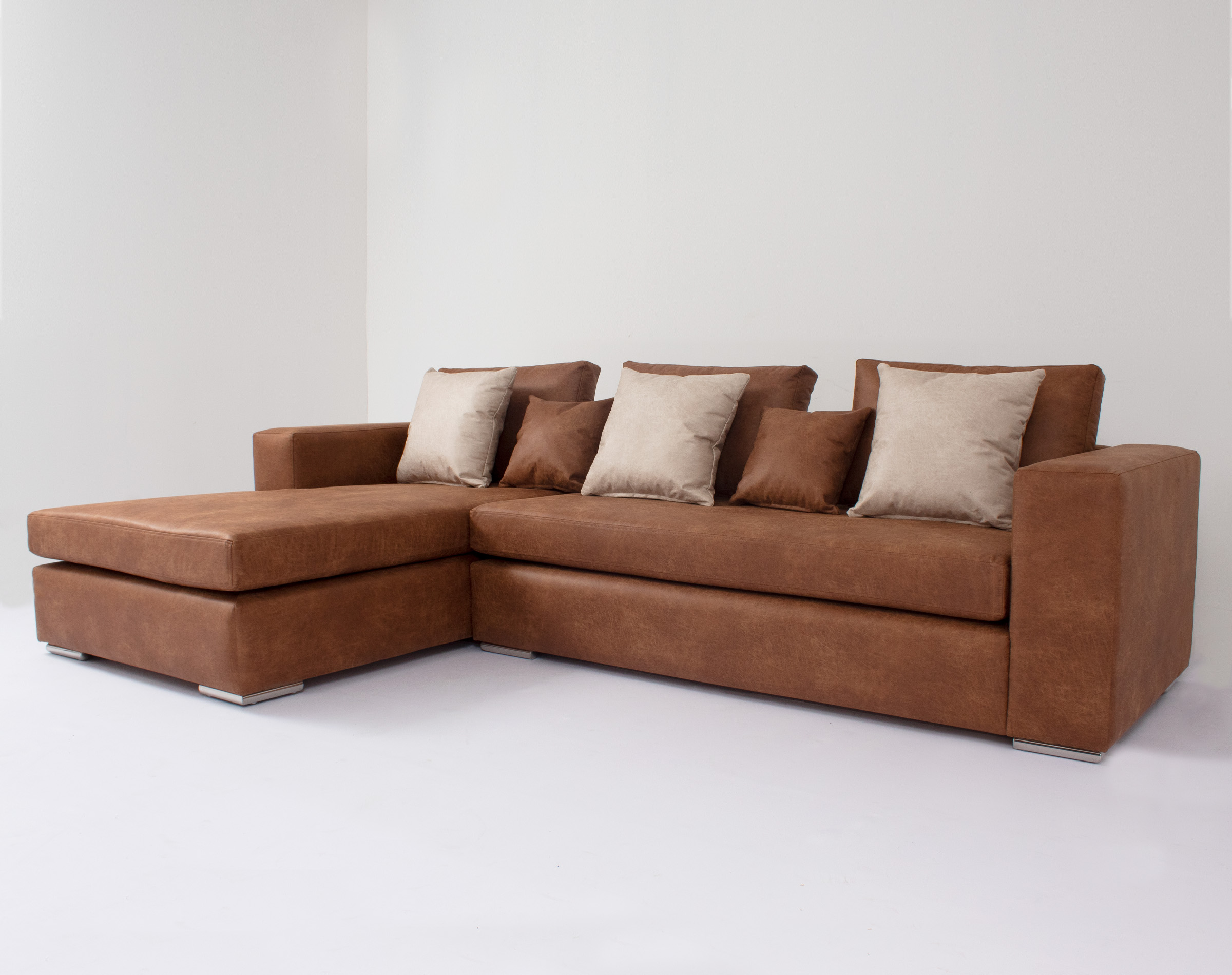 Este sofá seccional cuenta con un diseño moderno y cómodo, con brazos anchos y una profundidad adecuada. Además, incluye un espacioso chaise longue. Sus medidas generales son de 300 x 180 cm, lo que te permite relajarte y disfrutar de tu espacio con comodidad. Está tapizado en Cuero Bonded, un material innovador que combina cuero natural reconstituido y poliuretano, ofreciéndote las ventajas de ambos: un aspecto liso, una textura suave, un grosor adecuado, una gran resistencia, una comodidad óptima y fácil de limpiar.