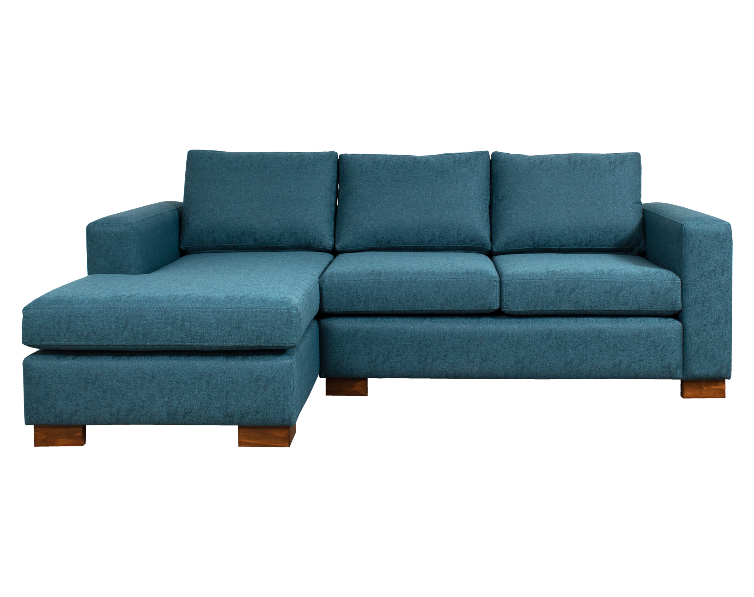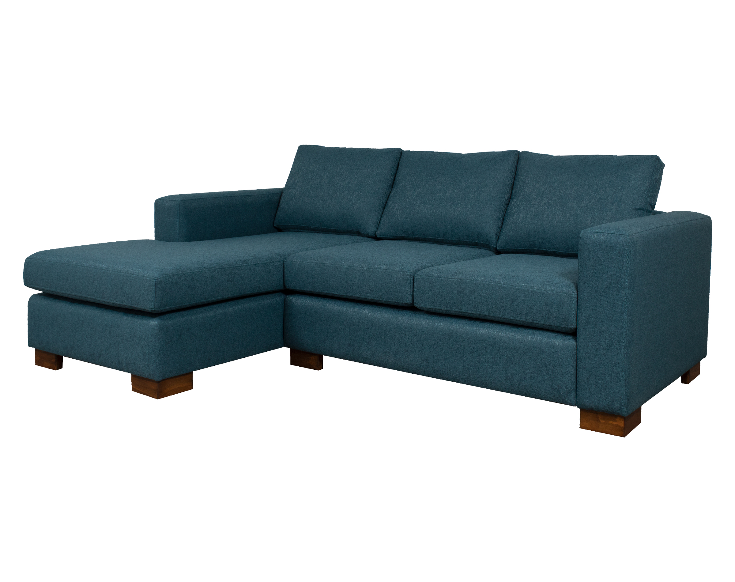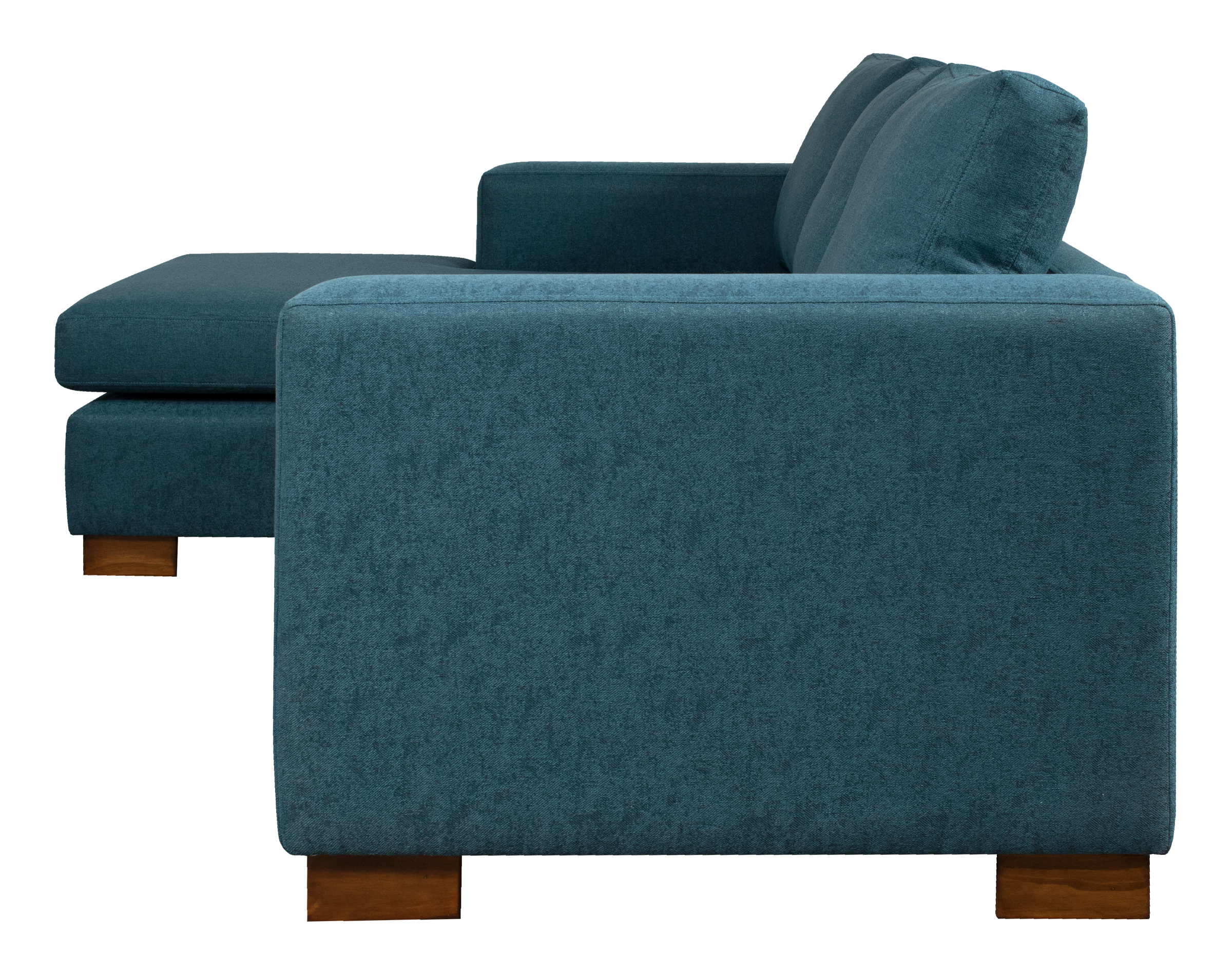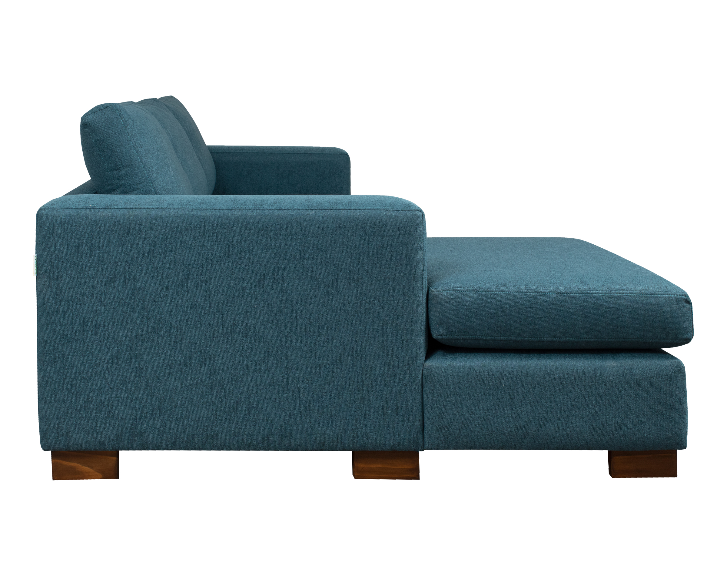 Imagen principal corresponde a Sofá Seccional Mónaco Izquierdo Sidelli color petróleo pata madera ciprés recta 7 cm.