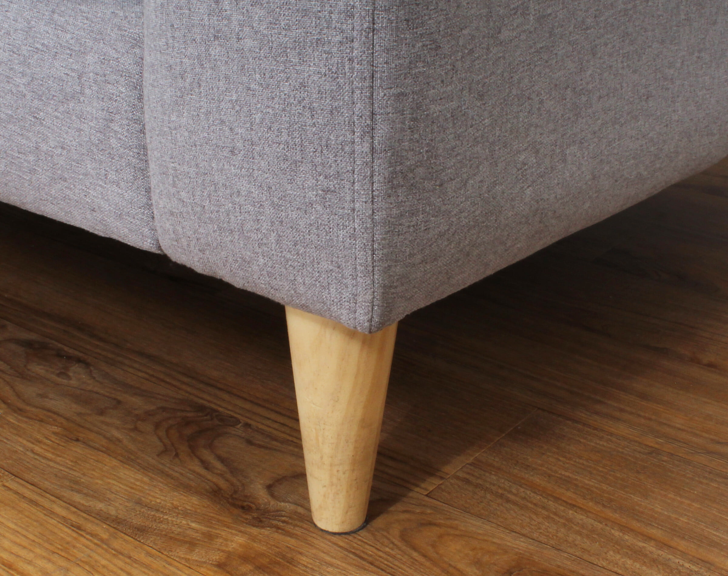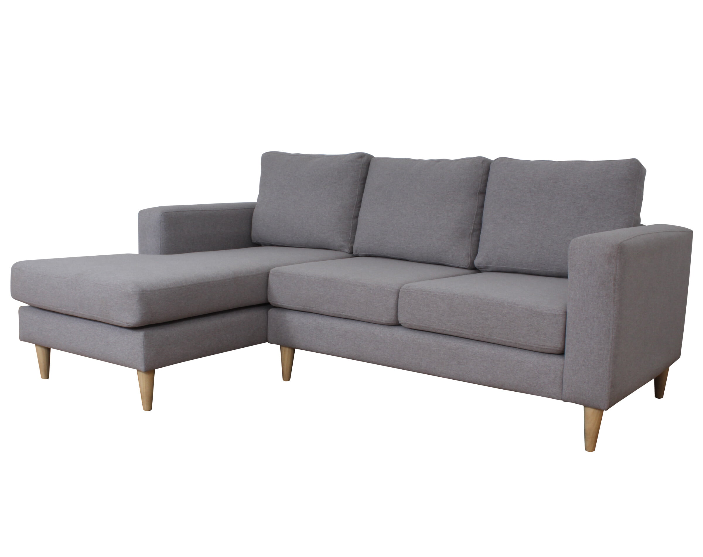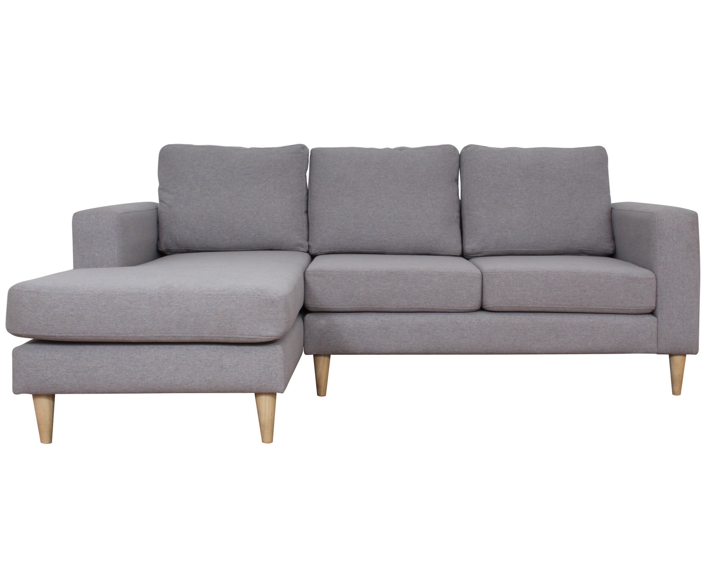 el Sofá Seccional Modelo Tai, que cuenta con un chaise longue en el lado izquierdo para brindar un espacio cómodo y relajante. Su tapizado de chenille Soft en tono LT grey agrega un toque moderno y suave al diseño. Las patas cónicas de madera, con una altura de 15 cm y un tono miel cálido, completan el conjunto con un toque de estilo distintivo. Este sofá seccional ofrece la combinación perfecta de comodidad y estética, creando un rincón acogedor en tu espacio.
