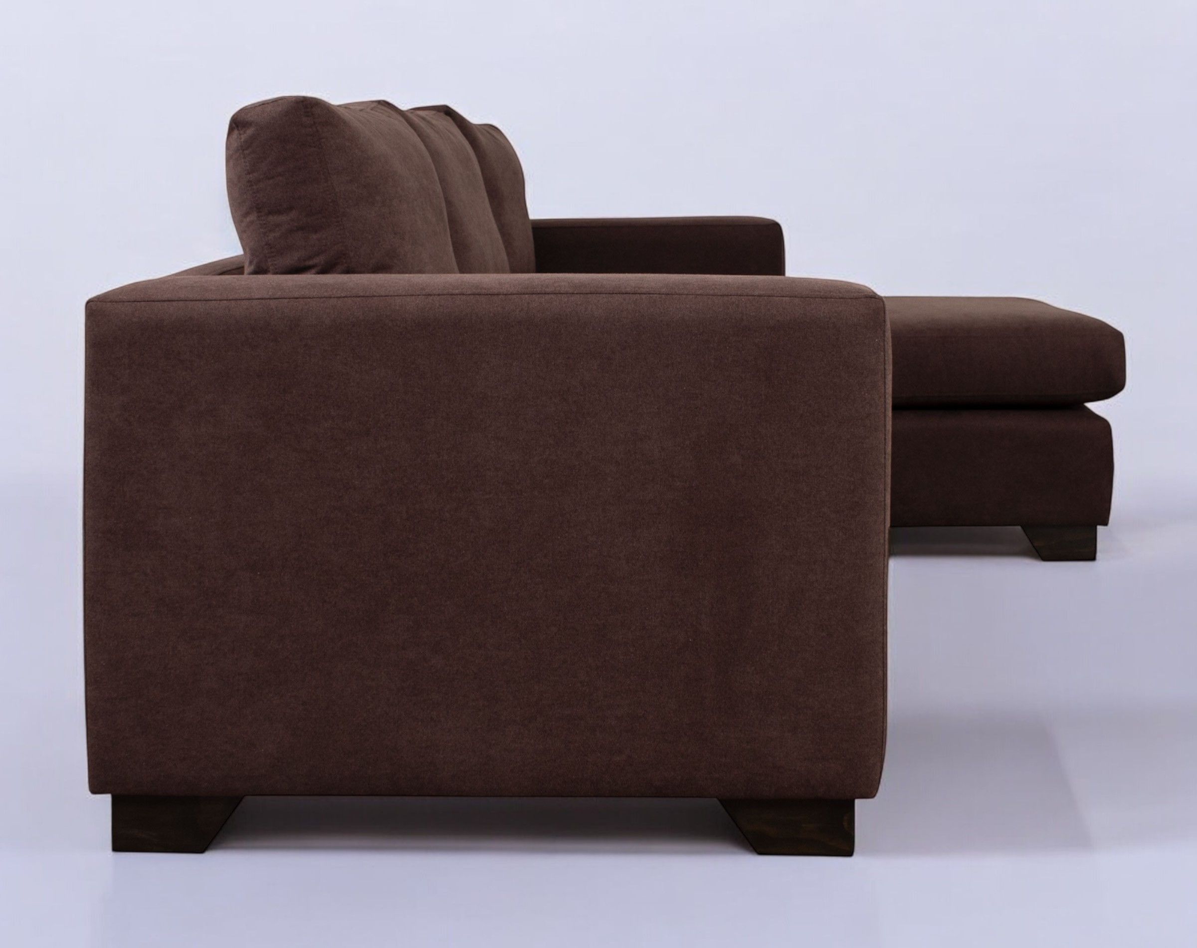 El sofá Seccional Mónaco con chaise longue derecho, combina estilo y versatilidad. Tapizado en tela suave VV27, ofrece comodidad y funcionalidad para todos los espacios. Las patas de madera de 7 cm aportan un toque moderno y cálido. Ideal para relajarte, socializar o leer, este conjunto no solo mejora el diseño de tu sala de estar, sino también optimiza el espacio disponible gracias a su diseño modular.