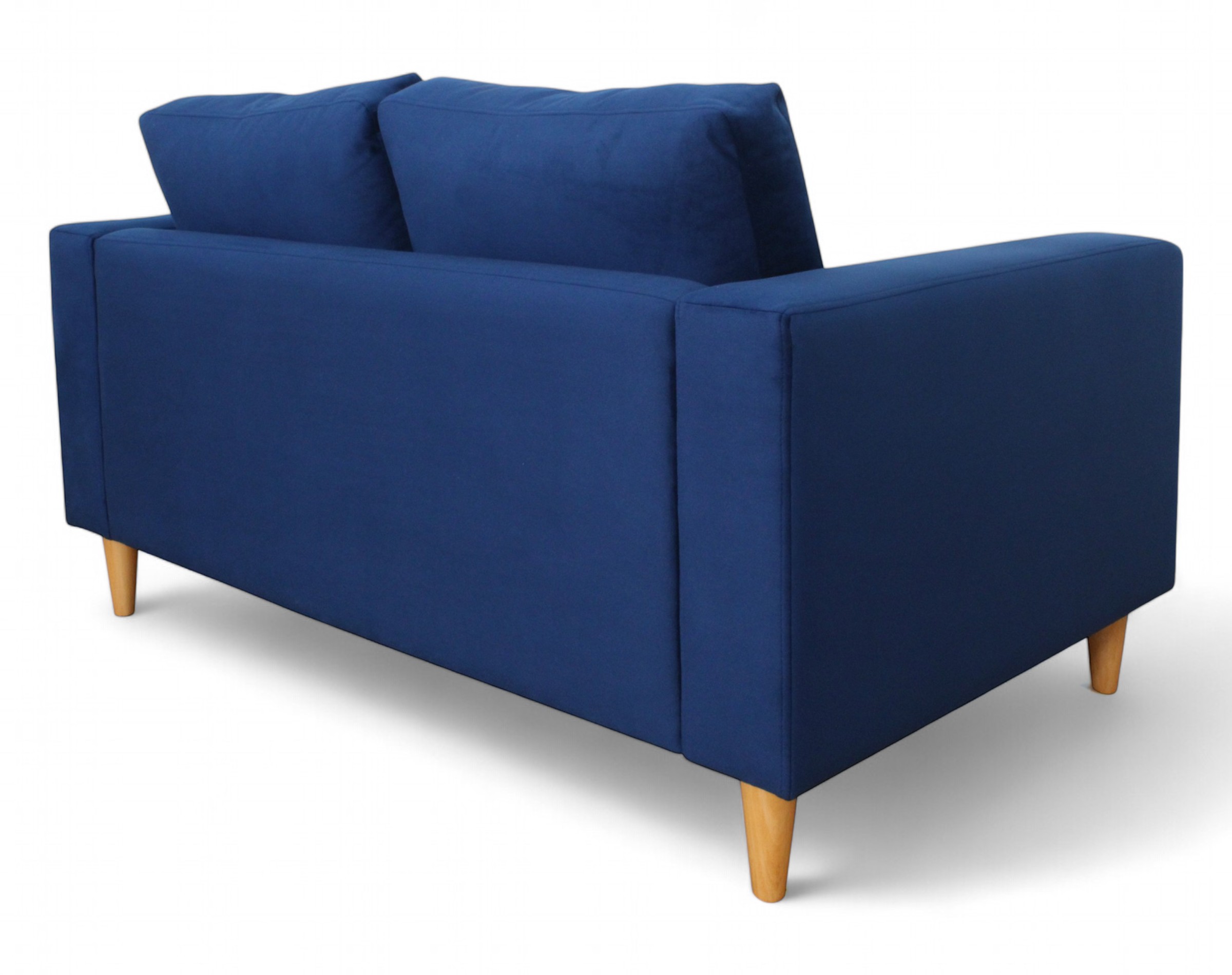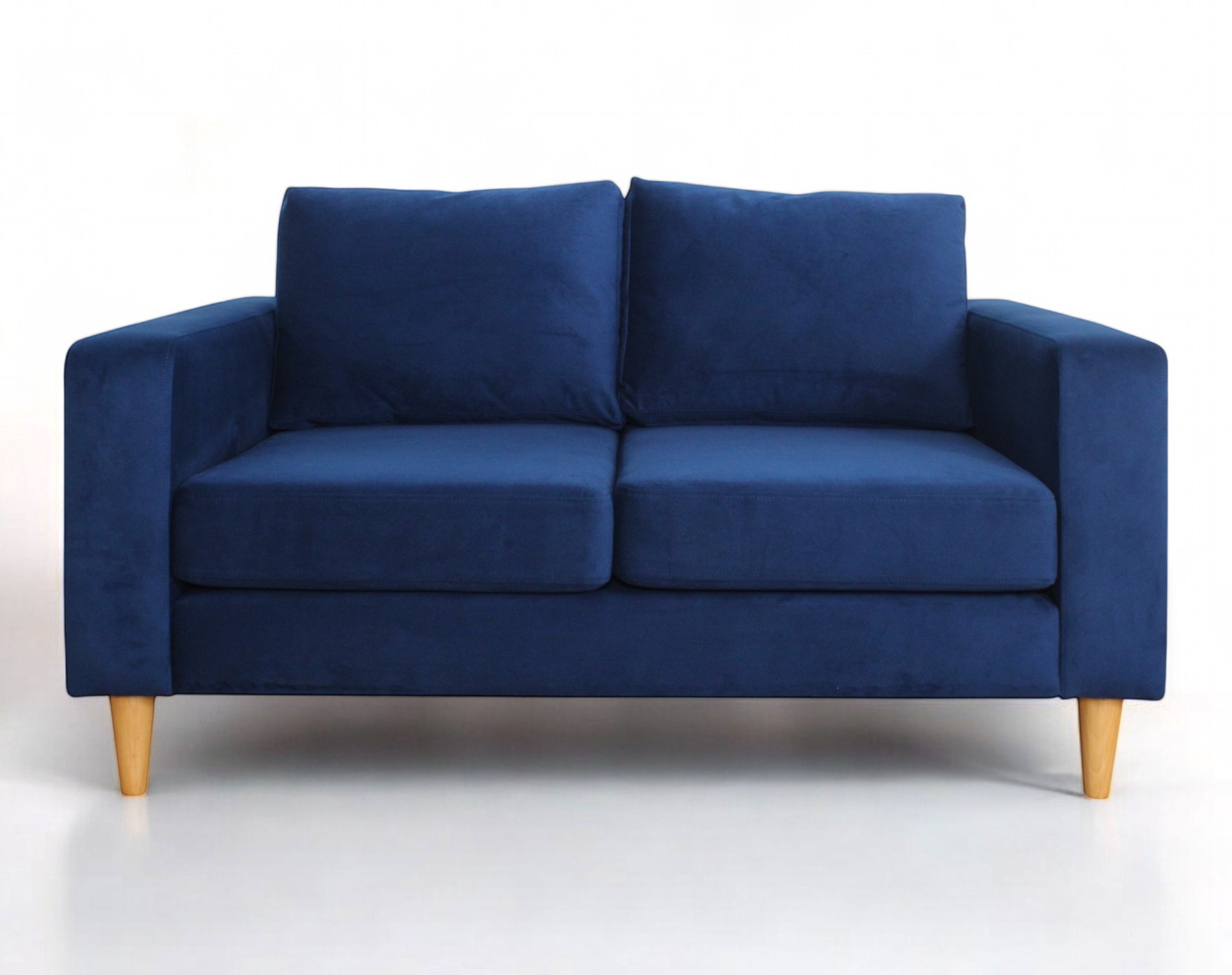 Sofá Tai de 2 cuerpos, diseñado para optimizar espacios reducidos con sus dimensiones compactas de 150 cm de largo y 90 cm de profundidad. Sus patas atornillables de 15 cm de altura facilitan el acceso en espacios estrechos, ideal para casas o departamentos pequeños. Tapizado en suave felpa tipo velvet, un tejido resistente y recomendado para hogares con mascotas, ayudando a prevenir arañazos, especialmente de gatos.