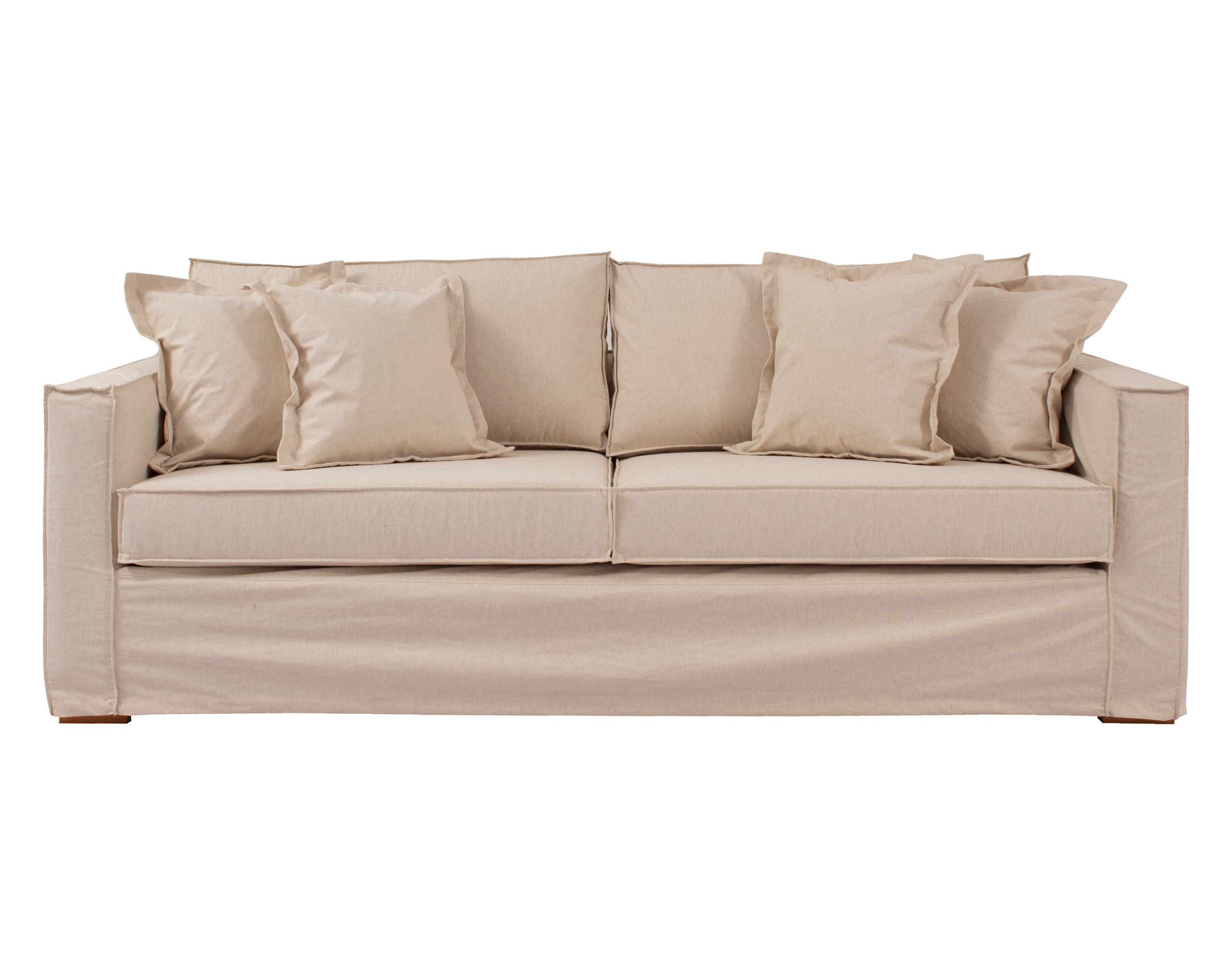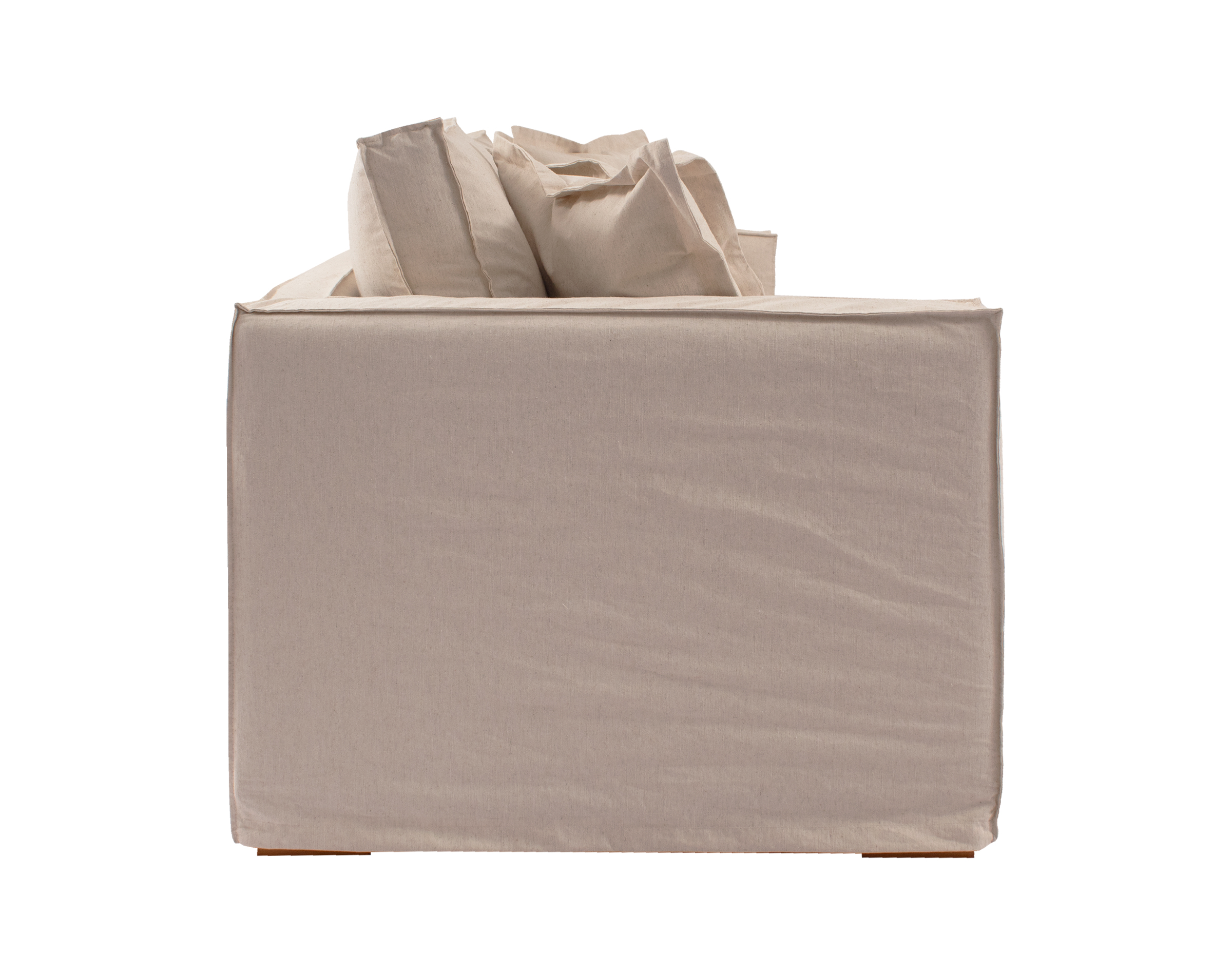 Imagen principal corresponde a Sofá 3 Cuerpos 225 cm con funda de Lino Natural Bruna tapiz base Lino Kal ivory y funda desmontable de Lino Natural G#5 con patas de madera miel recta 7 cm.