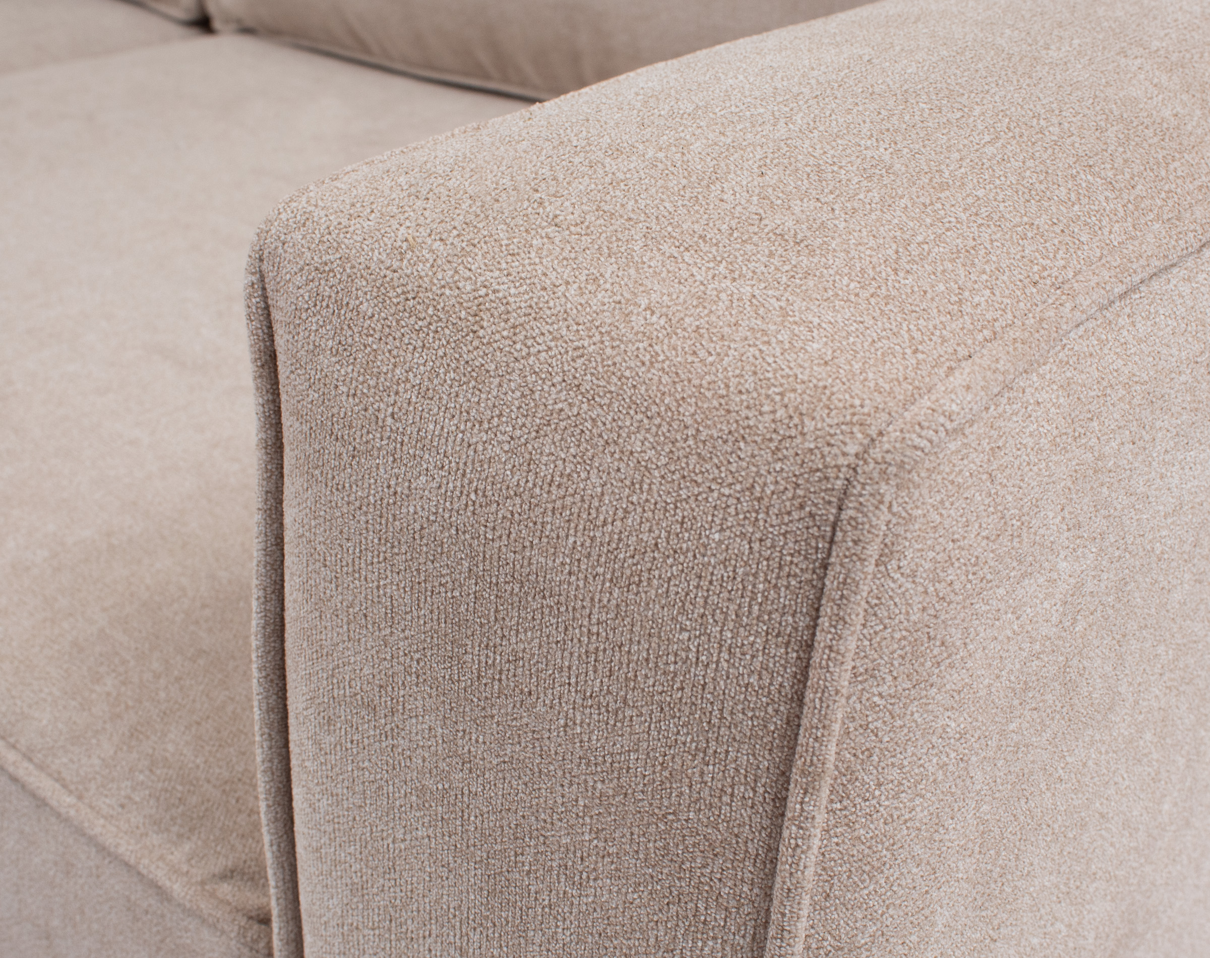 El sofá Henry de 3 cuerpos fusiona elegancia y comodidad. Con tapiz Finesse en tono beige, agrega un toque de sofisticación. Detalles como la costura perimetral en cojines y brazos, realzados con vivo o cordón cosido, añaden distinción.