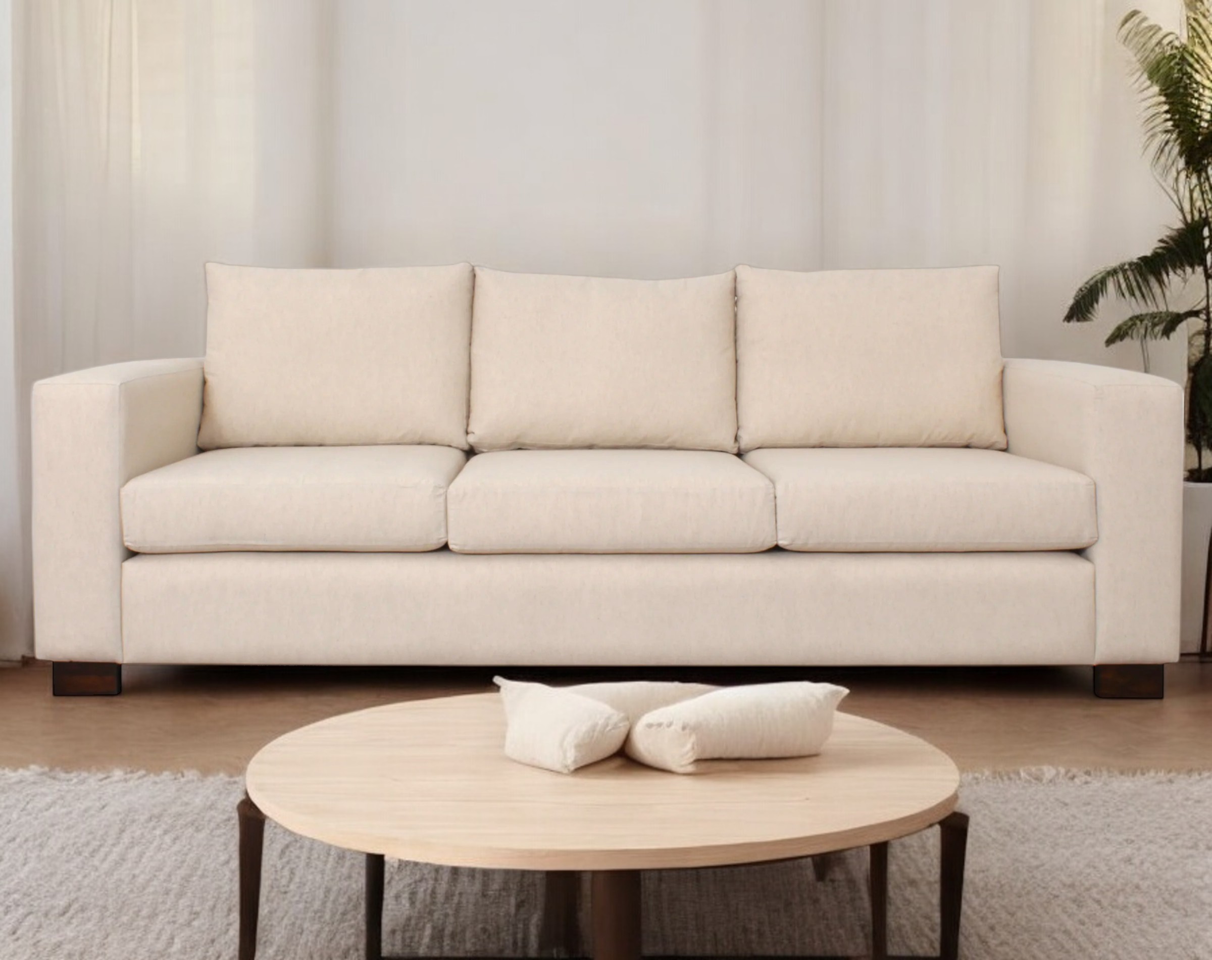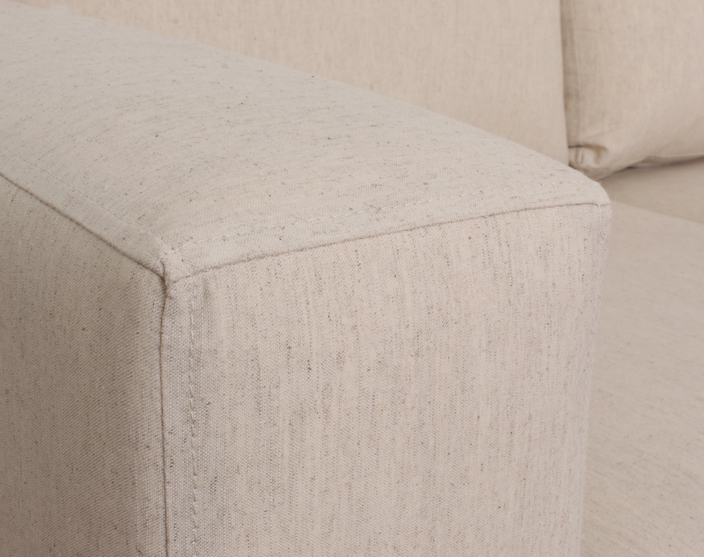 Diseñado con terminaciones rectas, asientos y respaldos con cierre removible. Confeccionado en tapiz tipo lino de aspecto rústico, múltiples tonalidades a elección y patas de madera en 7 cm de alto, configurables en color y forma será una excelente alternativa a considerar para incorporar en tus espacios.