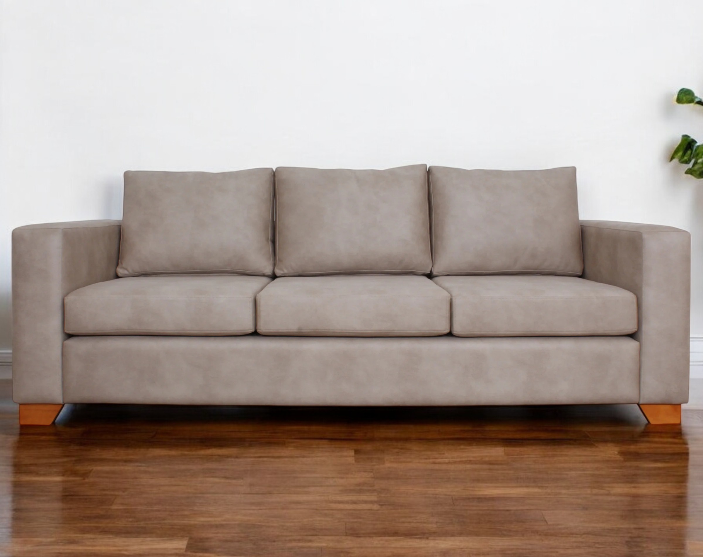 Las patas de madera de 7 cm, en un tono miel con corte angular, añaden un toque moderno y estético al diseño. El contraste entre la suavidad del cuero y la calidez de la madera crea un equilibrio visualmente agradable.