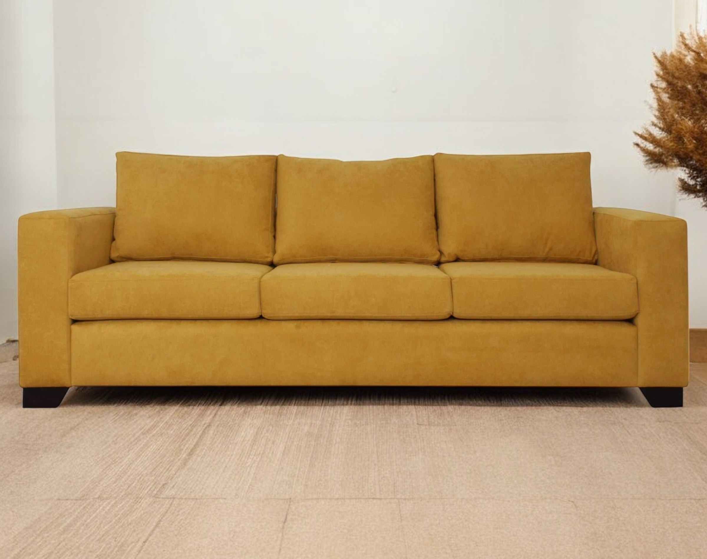 El sofá modelo Mónaco de 3 cuerpos, es una pieza de elegancia y confort incomparables. Este sofá presenta un tapizado de tela suave Dresde en el tono oro, inspirando una sensación de lujo y sofisticación en cualquier espacio. La elección de la tela Dresde no solo aporta un aspecto exquisito, sino también una textura acogedora y agradable al tacto.