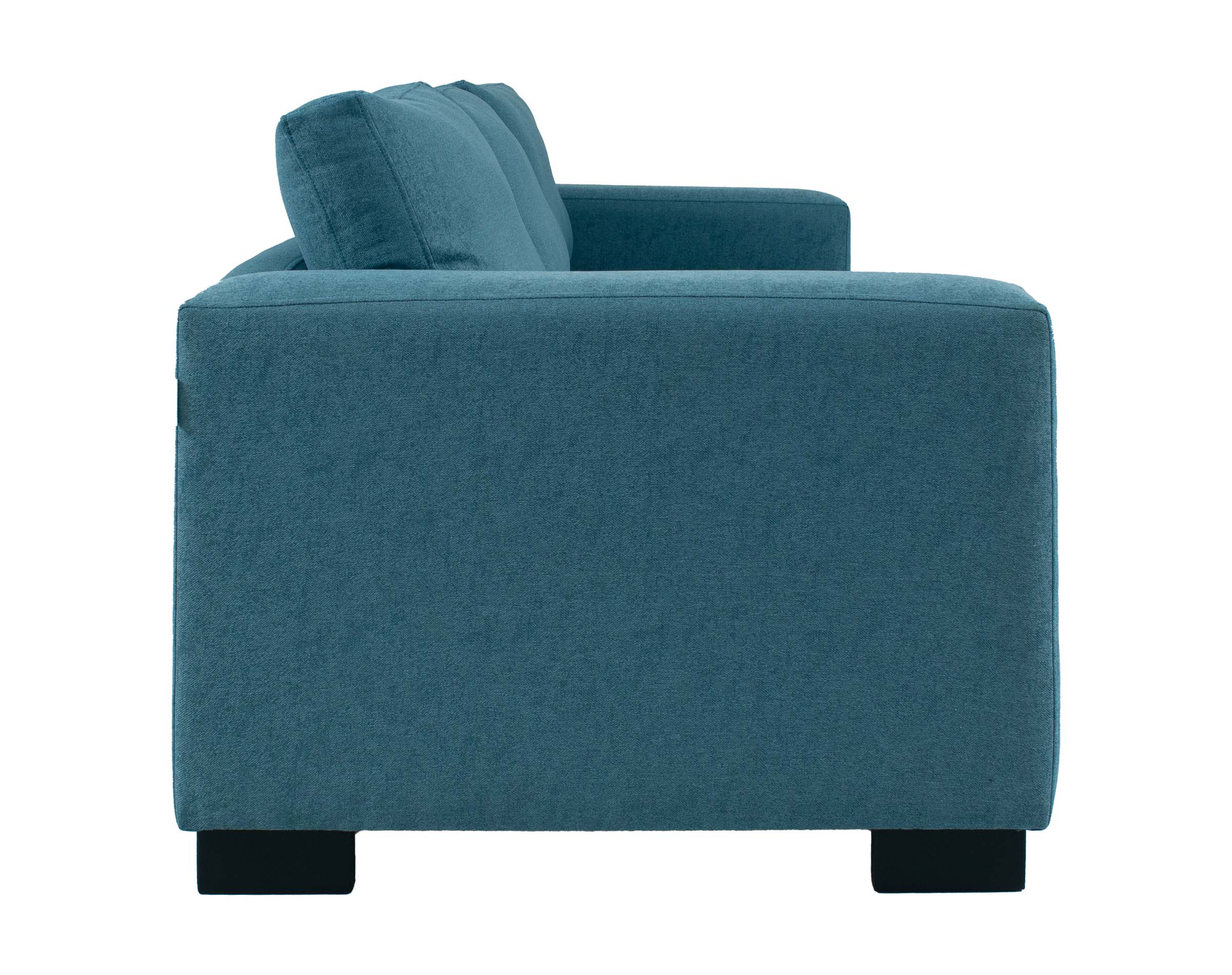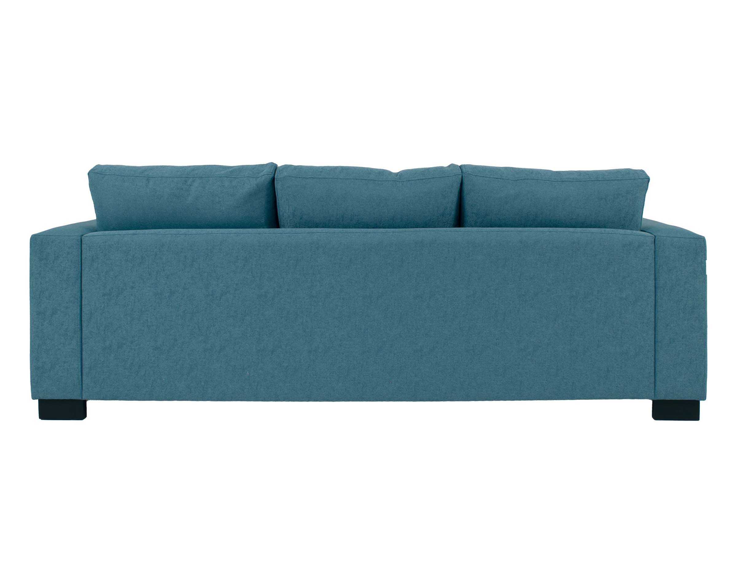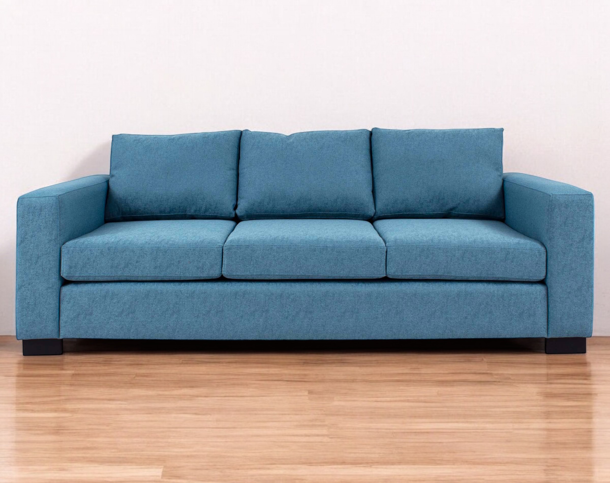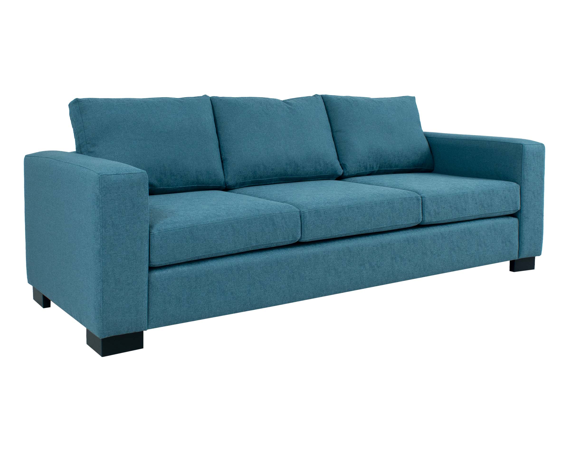 Imagen principal corresponde a Sofá Mónaco 3 Cuerpos tapiz Sidelli color turquesa C/25 con patas de madera color grafito corte recto.