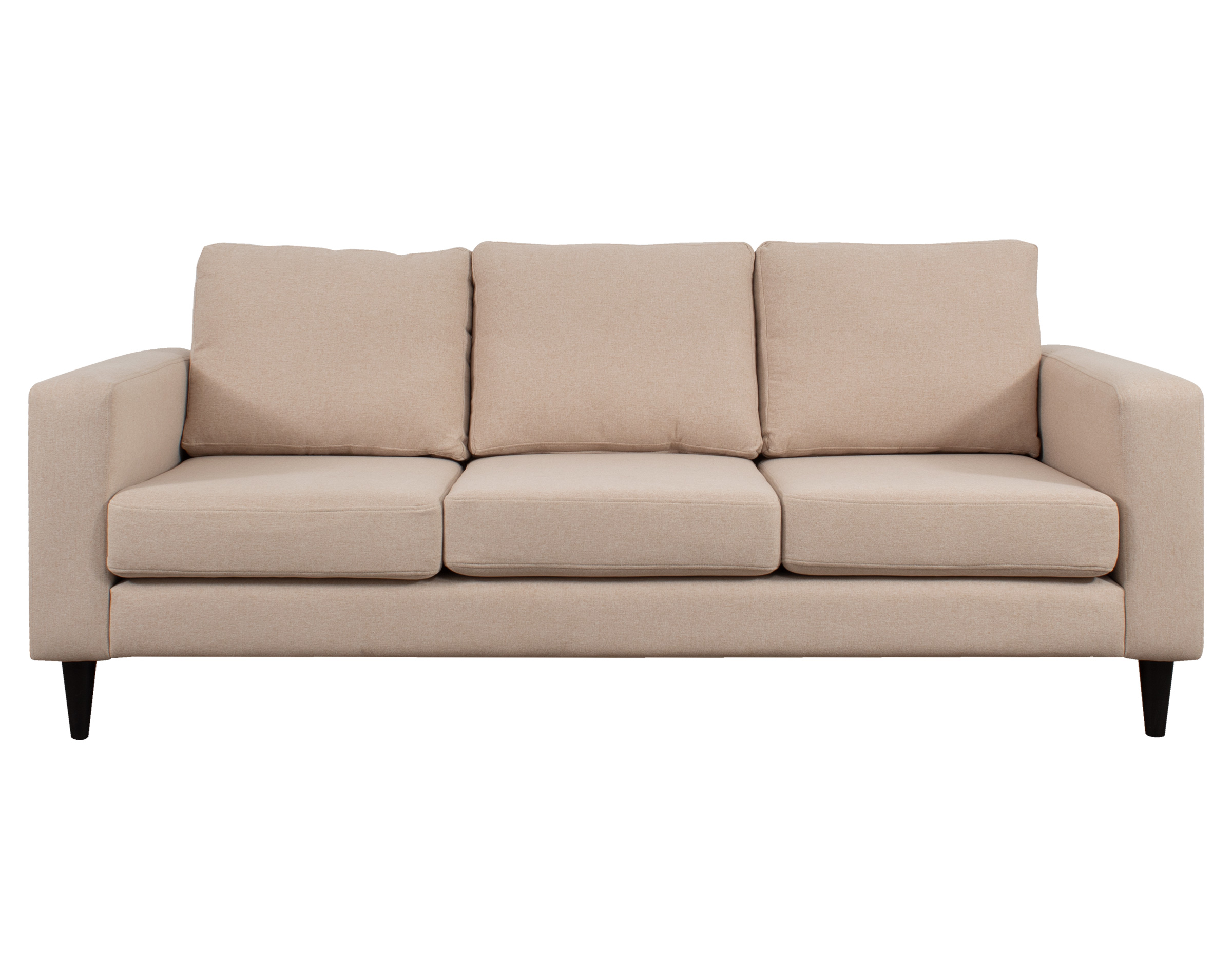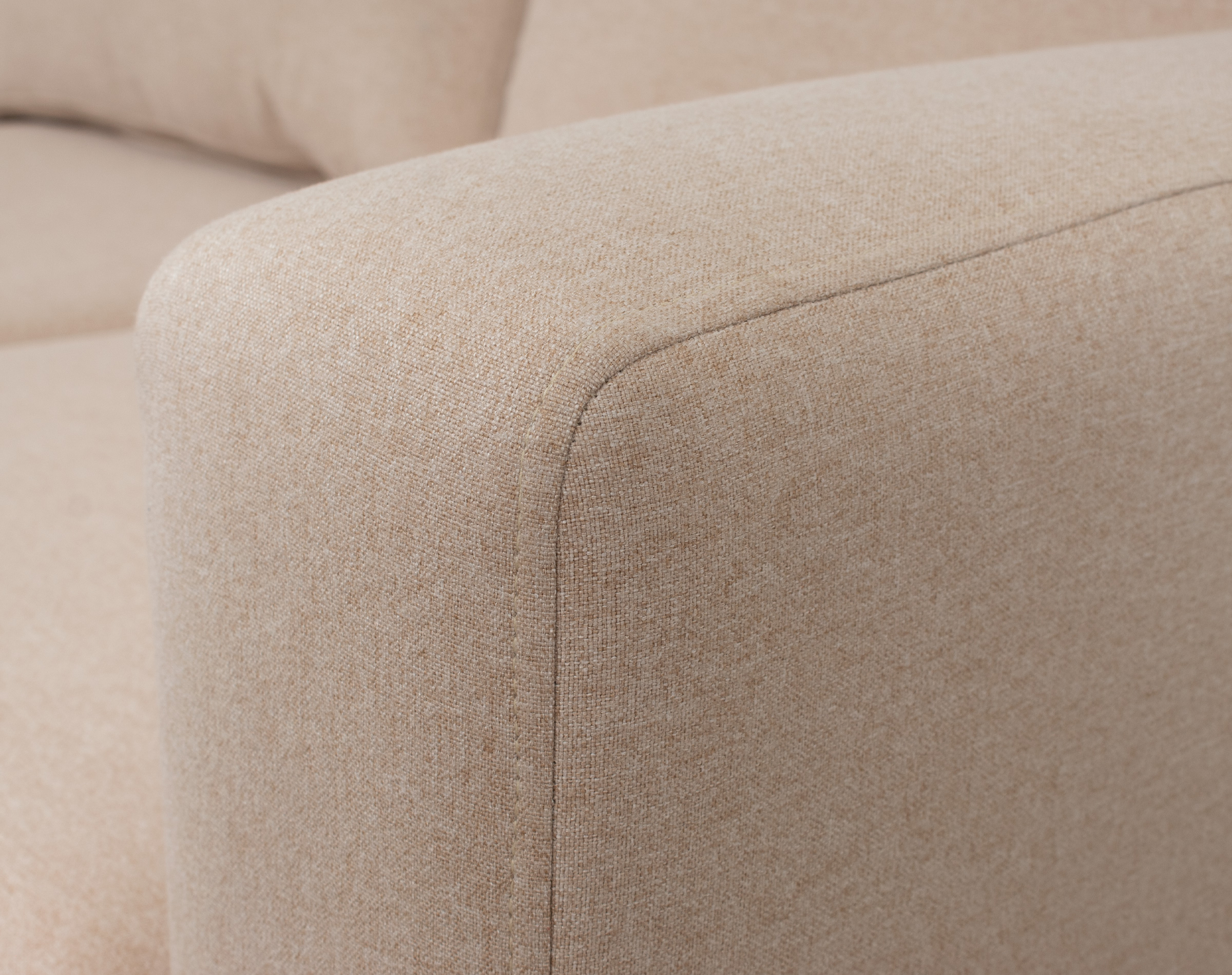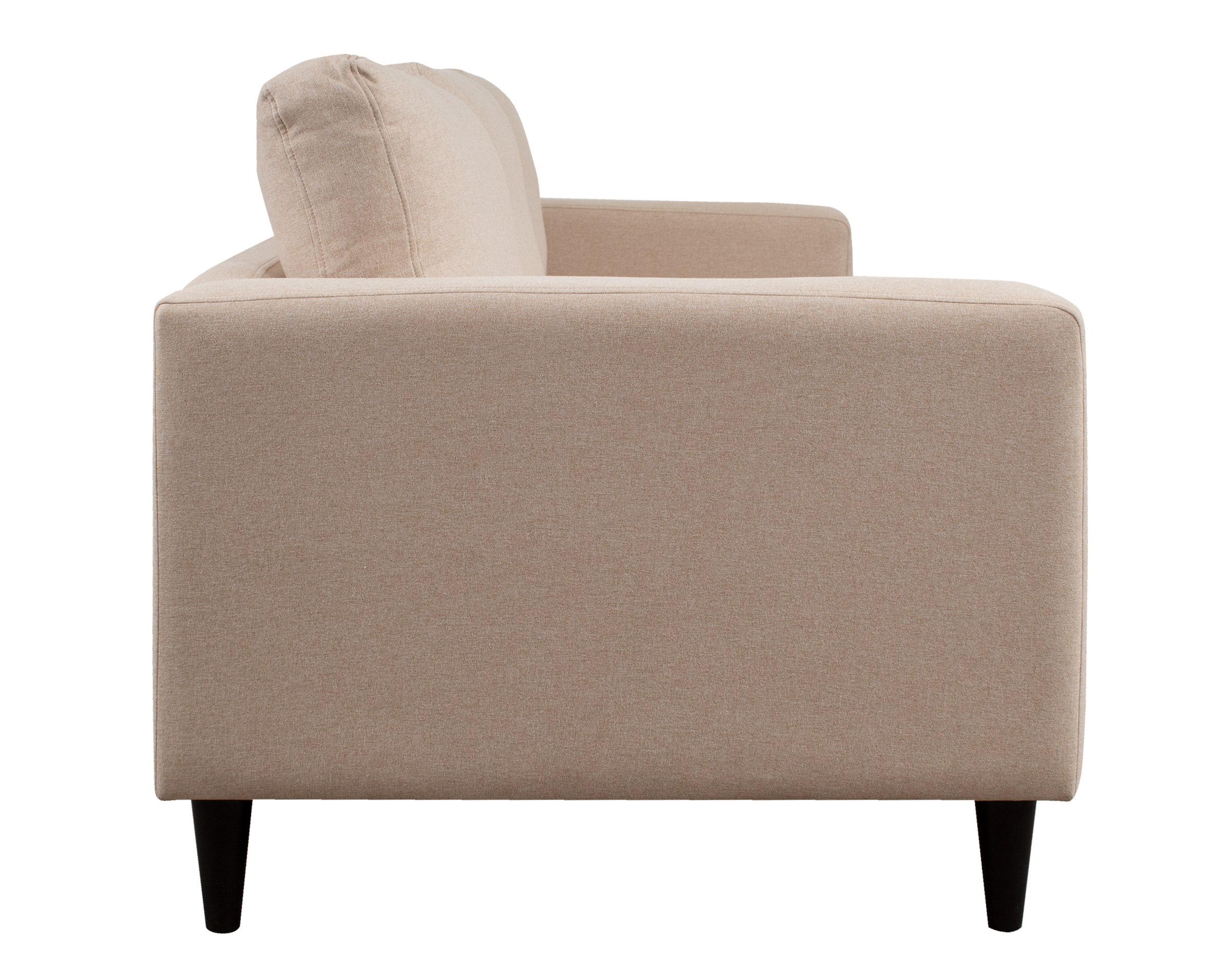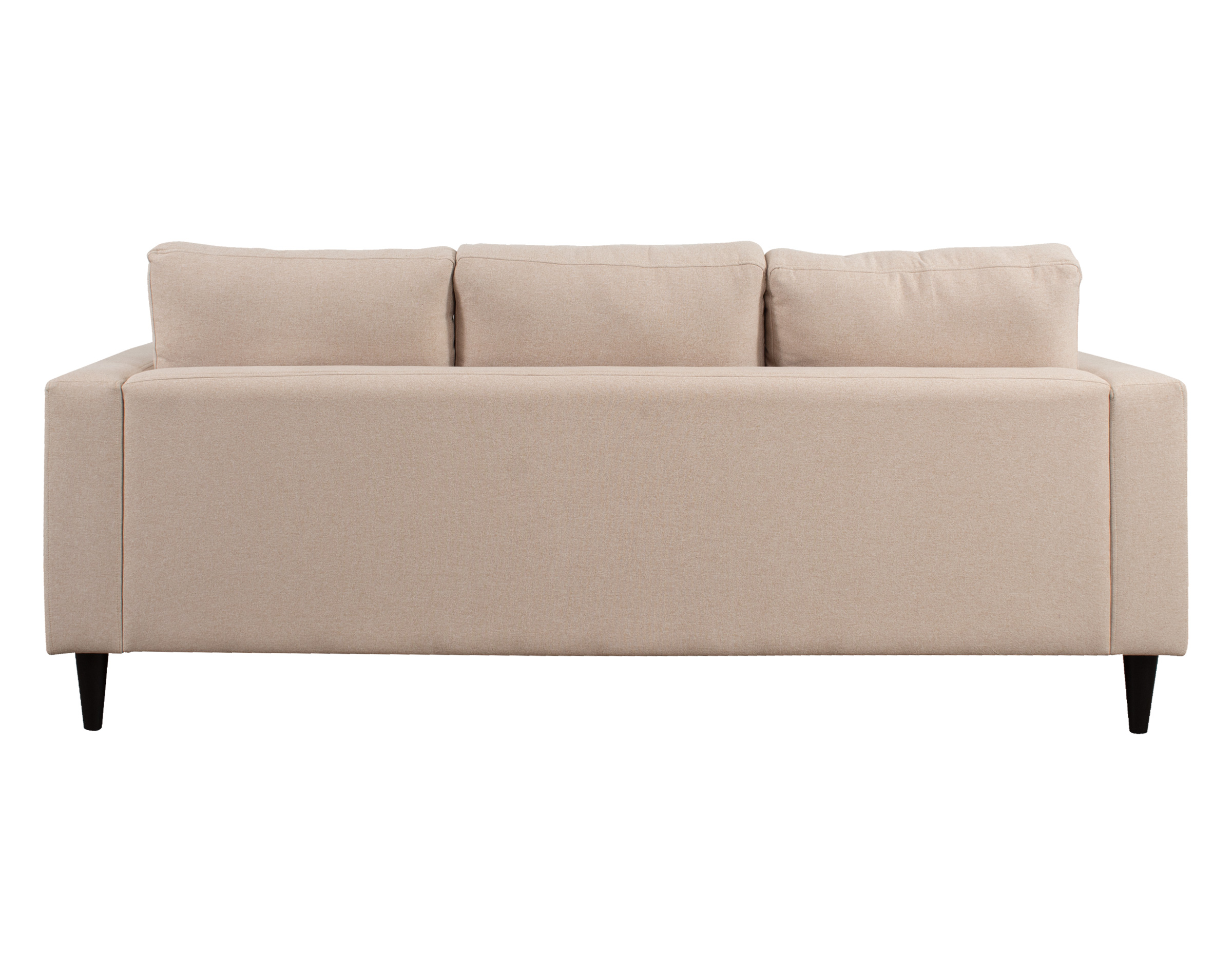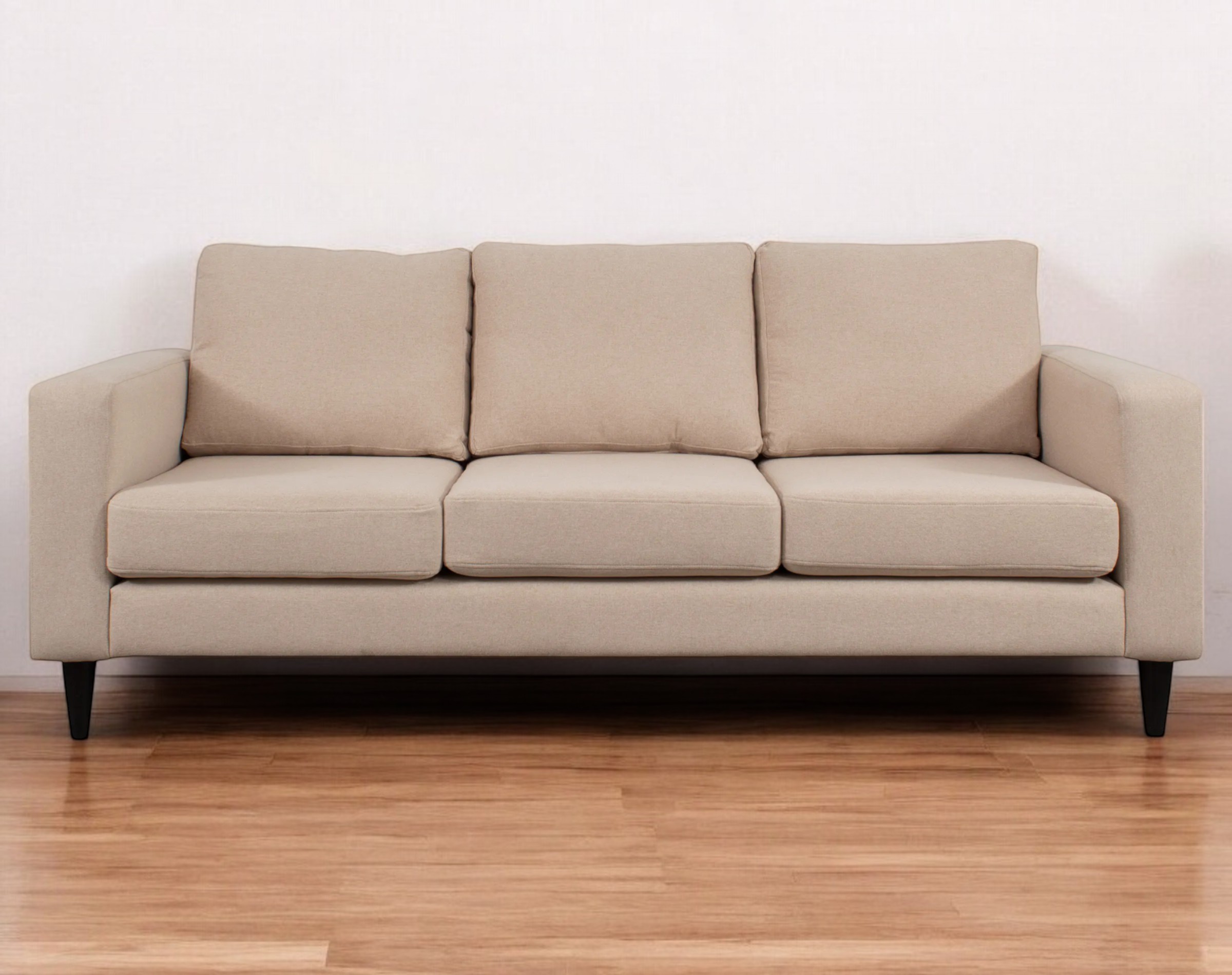 Imagen principal corresponde a Sofá Tai 3 Cuerpos Chenille Soft color beige pata madera ciprés cónica 15 cm.