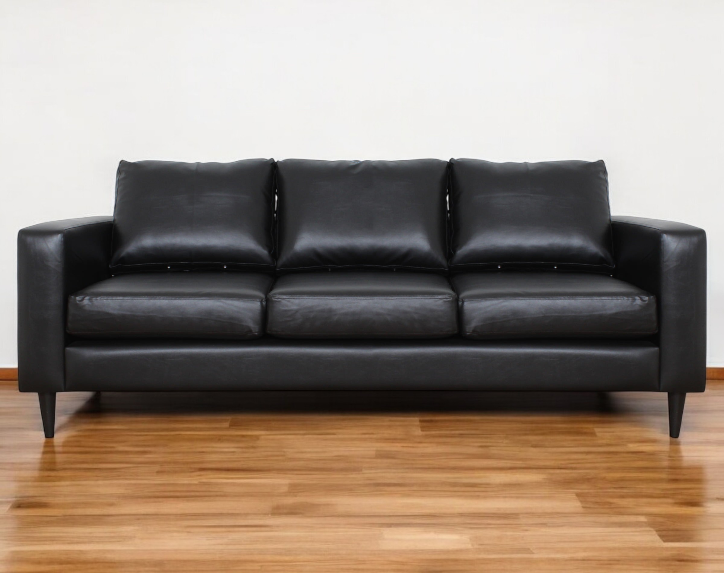 El Sofá Tai 3 cuerpos con tapiz de cuero sintético PU clean en color negro y patas cónicas de madera en color grafito es una elección ideal para quienes buscan un equilibrio entre diseño moderno y confort excepcional. Su construcción técnica y estética cuidadosa hacen de este sofá una adición impactante y funcional a cualquier espacio habitable.