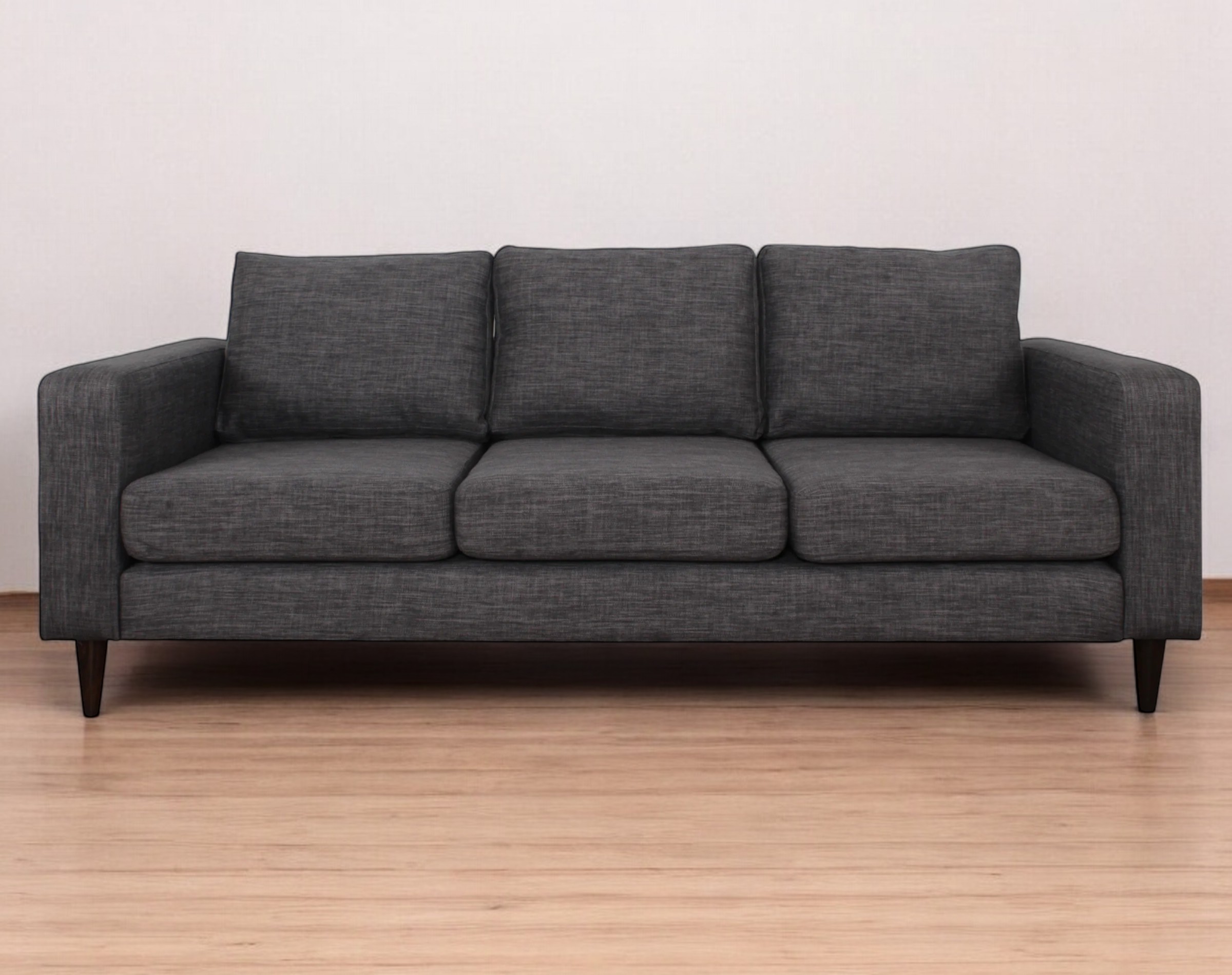 Sofá Tai 3 cuerpos tapiz Tucuman color Gris Oscuro con Patas de madera cónica 15 cm color ciprés.