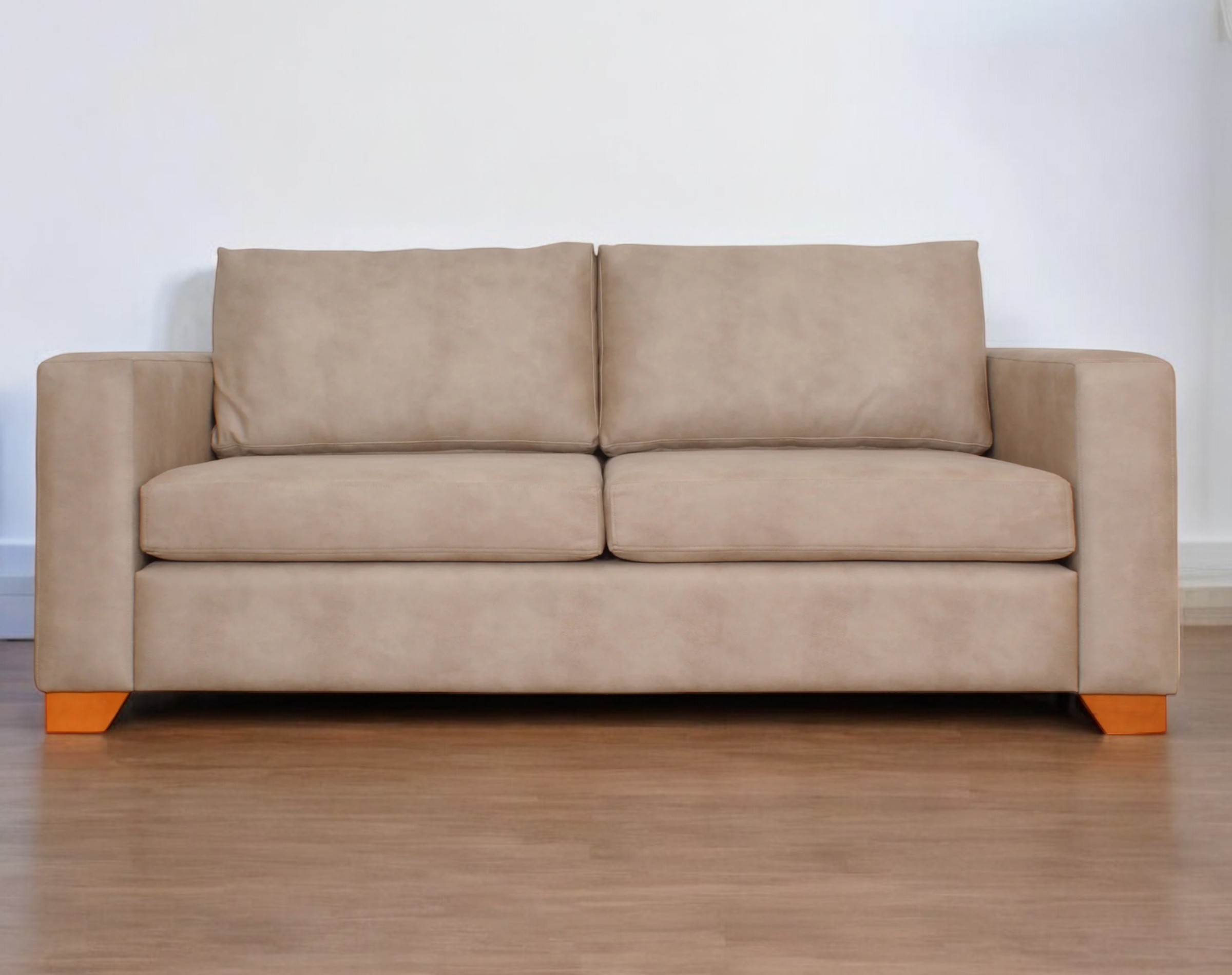 Sofá Thomas 2 divisiones con tapiz Cuero Bonded 30% y pata de madera 7 cm. Un sofá sobrio y compacto que combina estilo y comodidad en cualquier espacio.