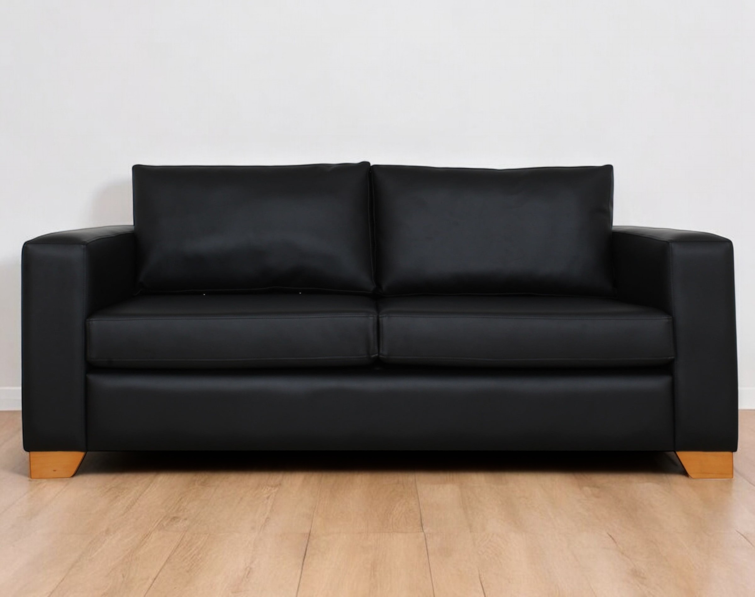 Sofá Thomas 2 metros tapiz cuero sintético Pana patas de madera 7 cm.