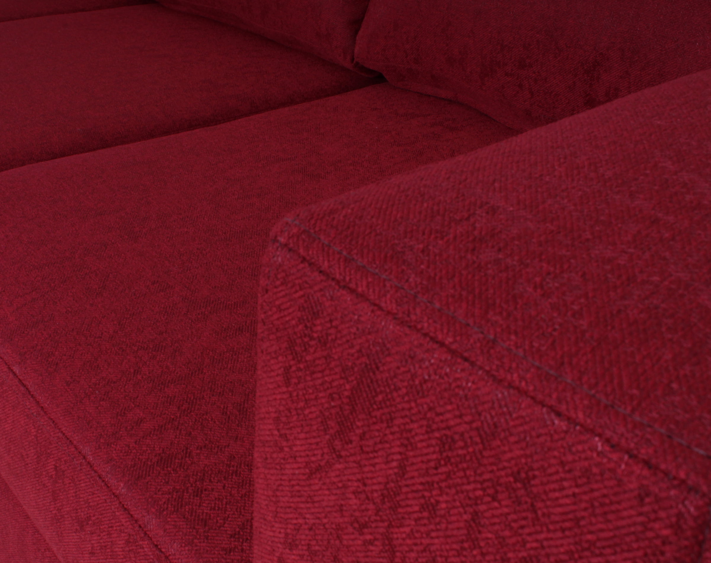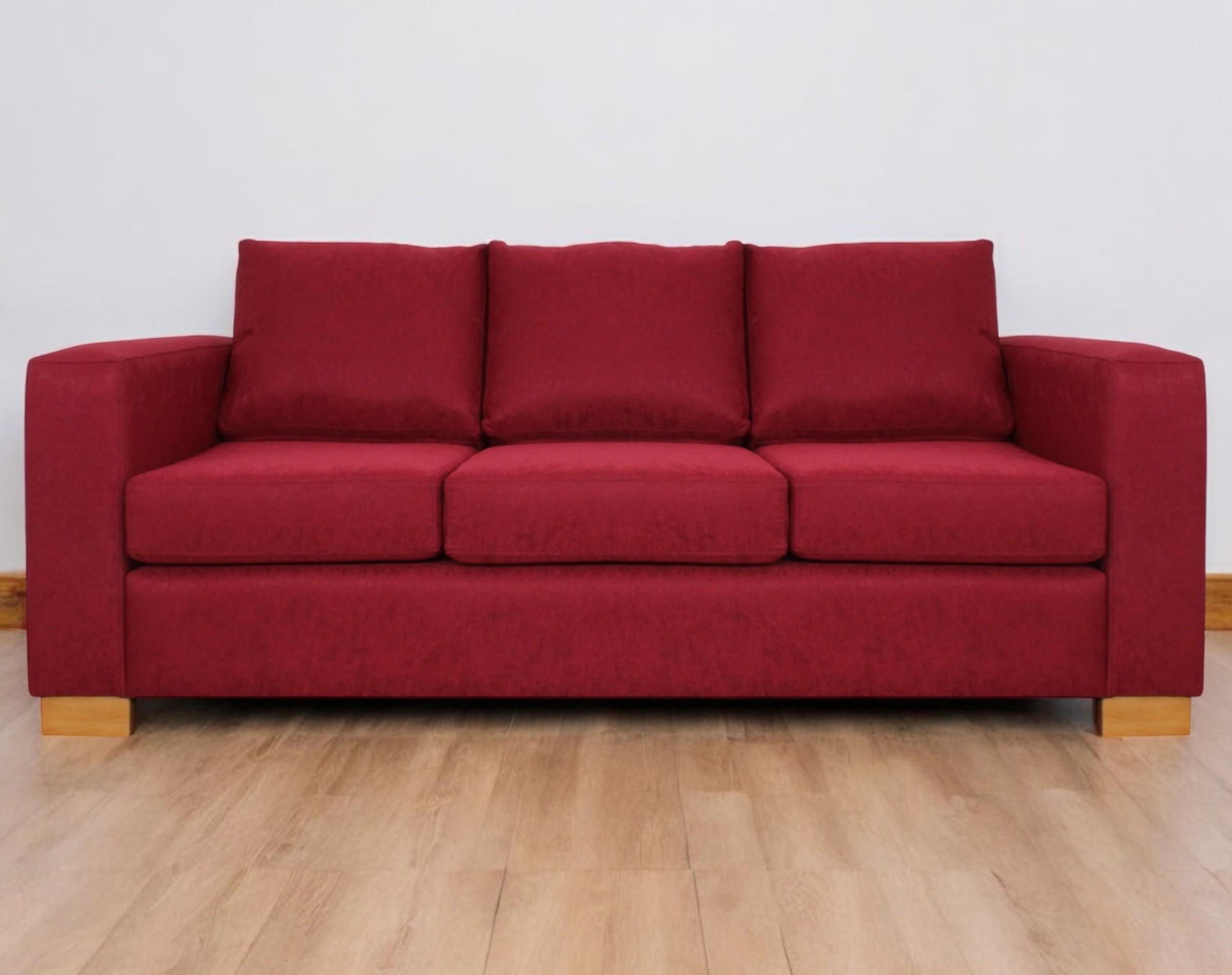 Sofá Thomas 3 cuerpos tapiz Sidelli color rojo con Pata madera 7 cm color miel corte recto.